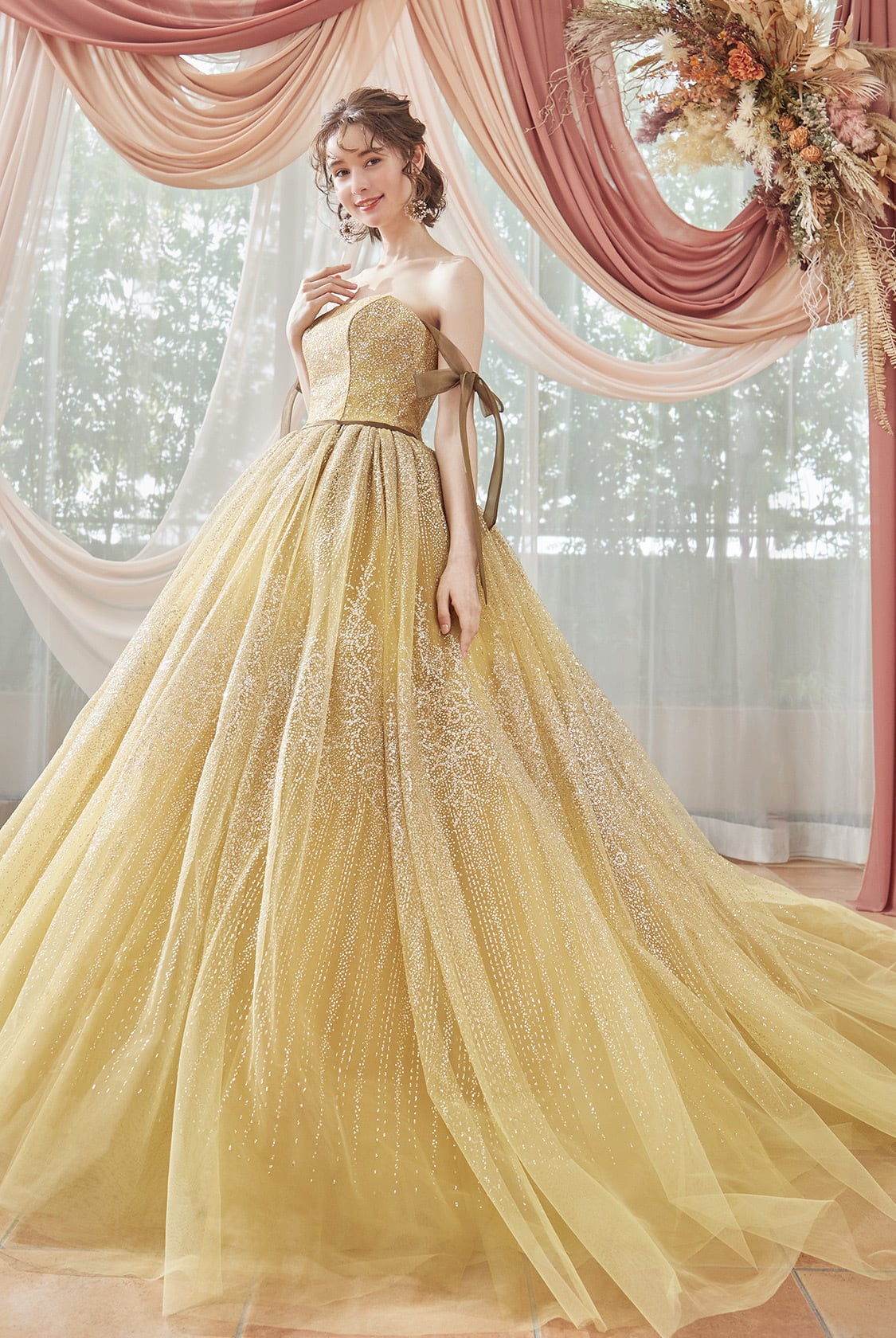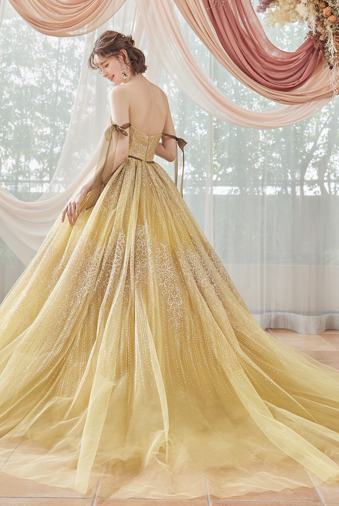 高品質!送料無料!カラードレス パステルイエロー リボン かわいい エレガント 優雅 ハンドメイド トレーン ソフトチュール オーダードレス キラキラチュール プリンセスライン パーティードレス 花嫁 豪華 結婚式/前撮り | David1021k Dress(ダヴィドレス)