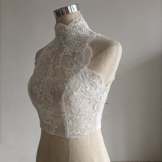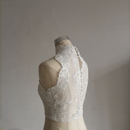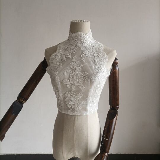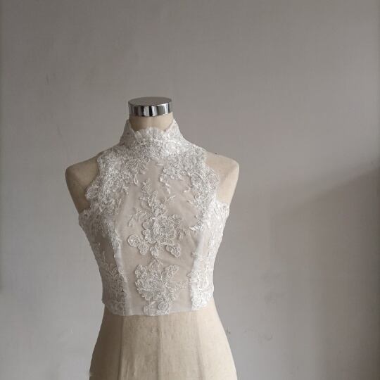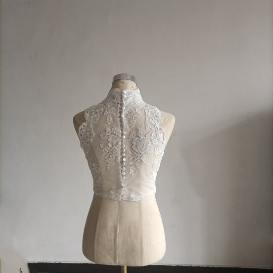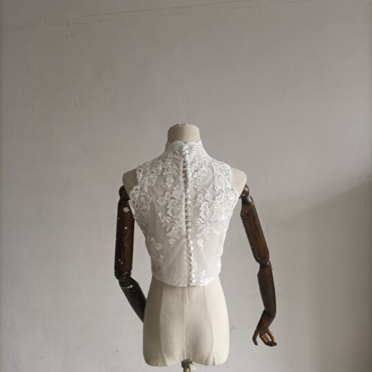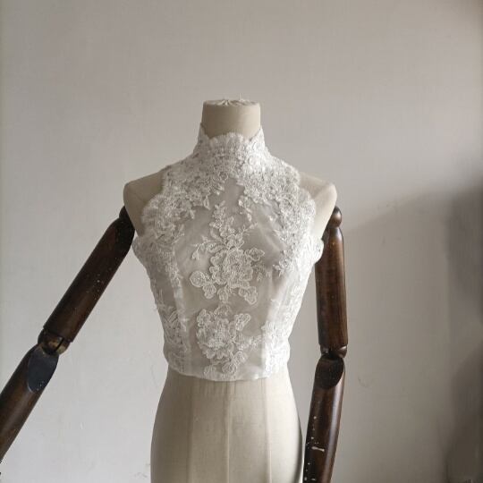 送料無料!美品!上品レース なくるみボタン ハイネック レースボレロ トップス ウエディングドレス