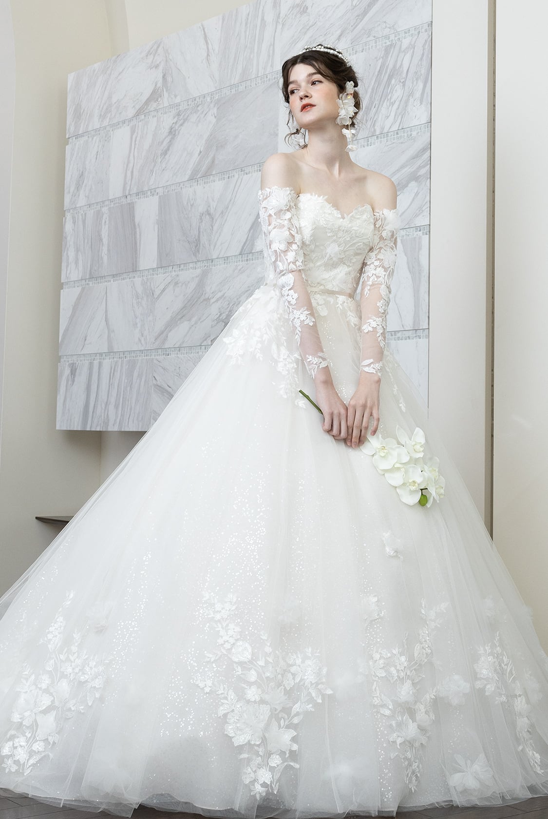 高品質!送料無料!ウエディングドレス ベアトップ 付け袖 かわいい 上品レース 花柄のモチーフ刺繍が美しく エレガント ハンドメイド プリンセスライン 抜群のおしゃれ見え トレーン オーダードレス オーダーメイド 花嫁 豪華 結婚式/前撮り | David1021k Dress(ダヴィドレス)