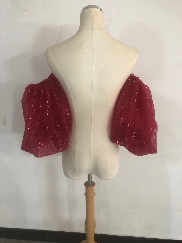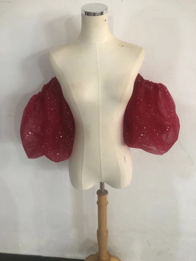 大人気上昇ワインレッド ボブスリーブ 取り外し袖 ショルダーの付け袖 パフスリーブ オーダー可能 二の腕を隠せるお袖