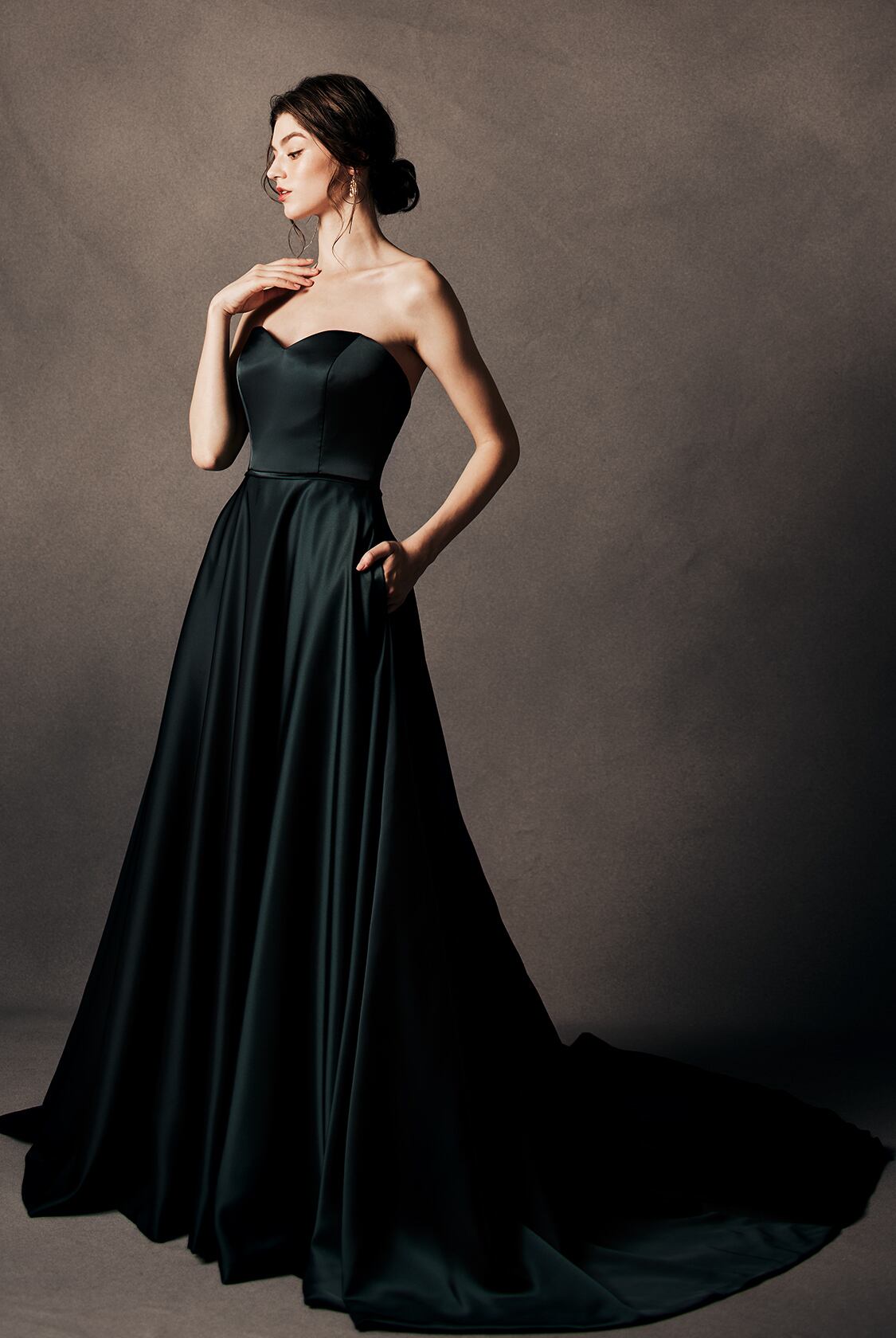 高品質!送料無料!カラードレス グリーン ベアトップ かわいい 豪華 高級サテン エレガント 深緑 ハンドメイド 華やかなトレーン オーダードレス パーティードレス 花嫁 豪華 結婚式/前撮り | David1021k Dress(ダヴィドレス)