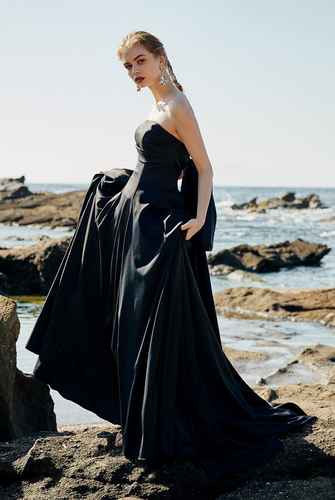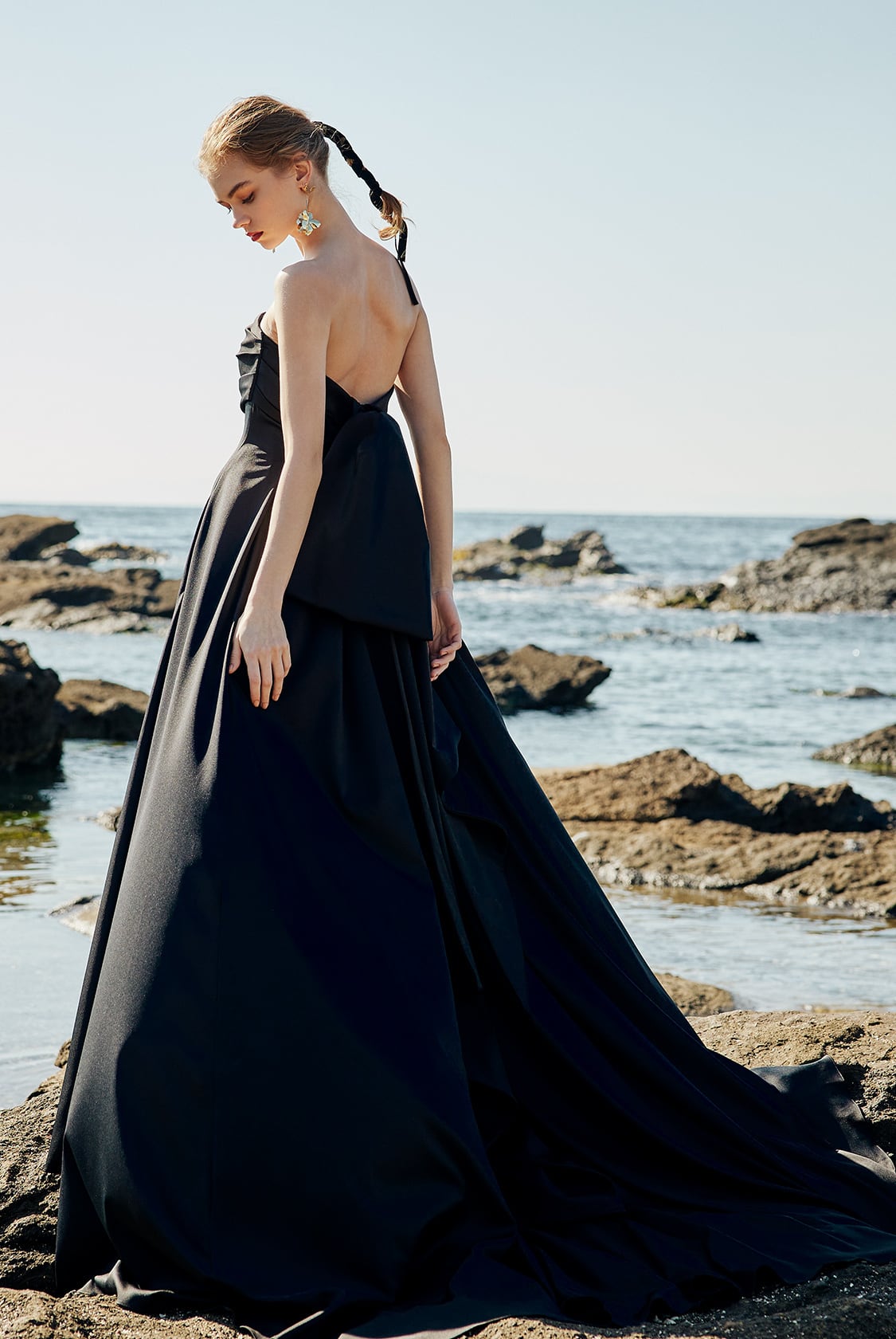 高品質!送料無料!カラードレス ブラック/黒 ベアトップ バックリボン かわいい 豪華 エレガント ハンドメイド 優雅なシルエット トレーン オーダードレス パーティードレス 花嫁 結婚式/前撮り | David1021k Dress(ダヴィドレス)