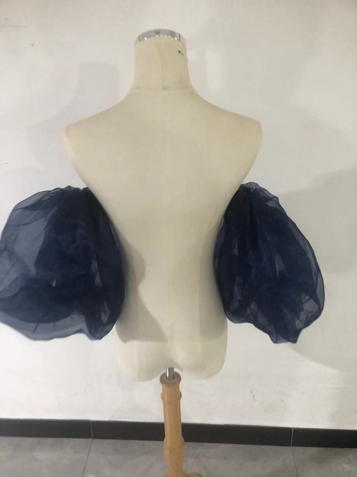 送料無料!大人気上昇 取り外し袖 ネイビー ショルダーの付け袖 パフスリーブ オーダー可能