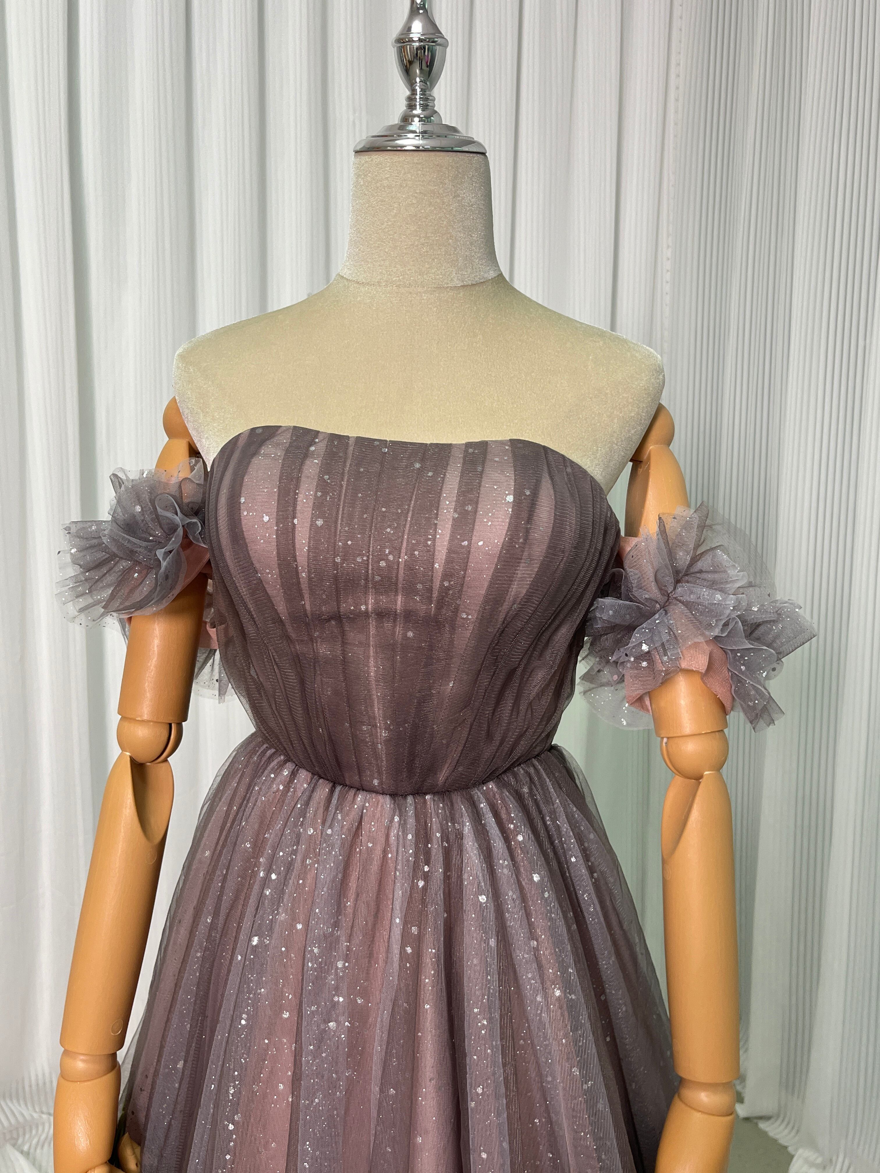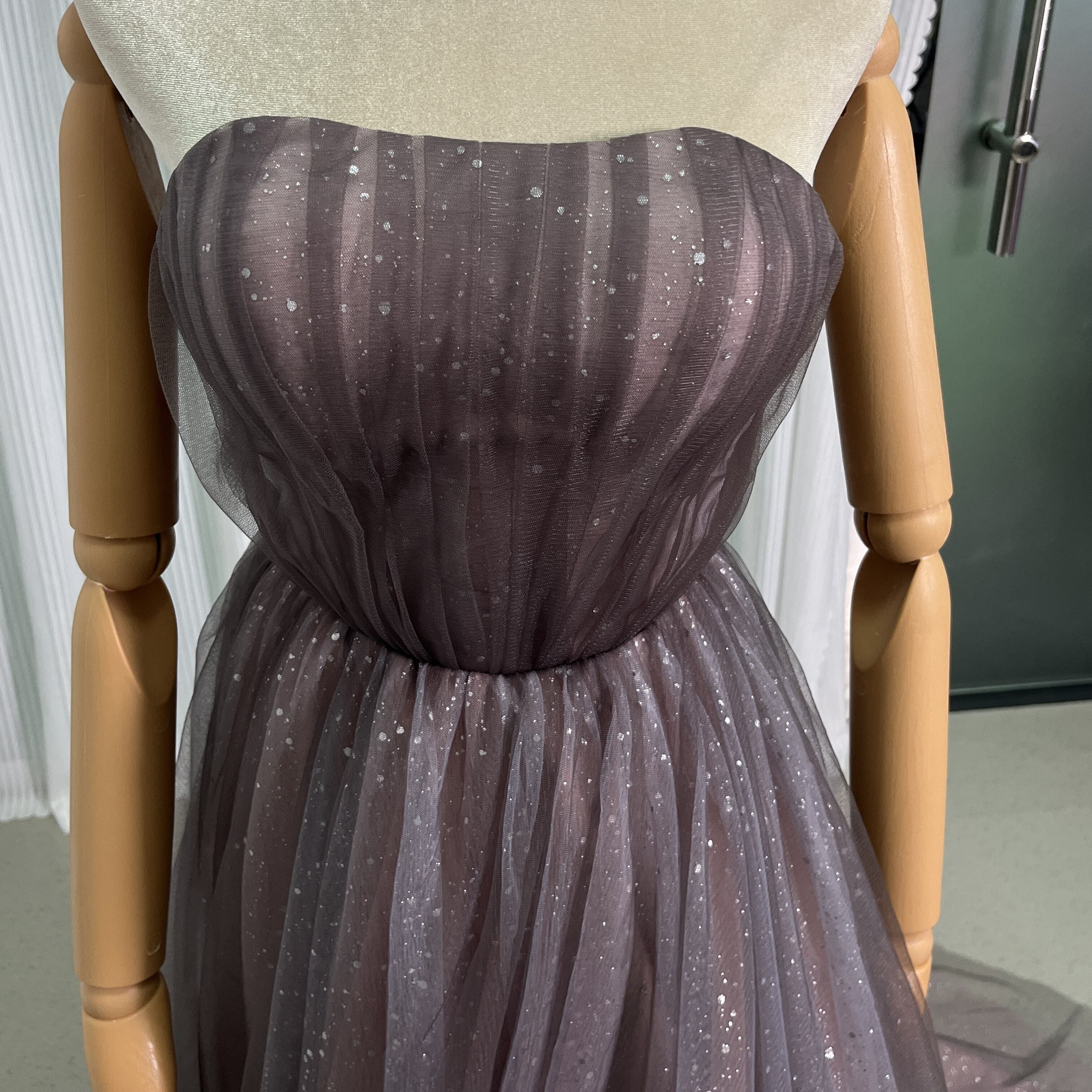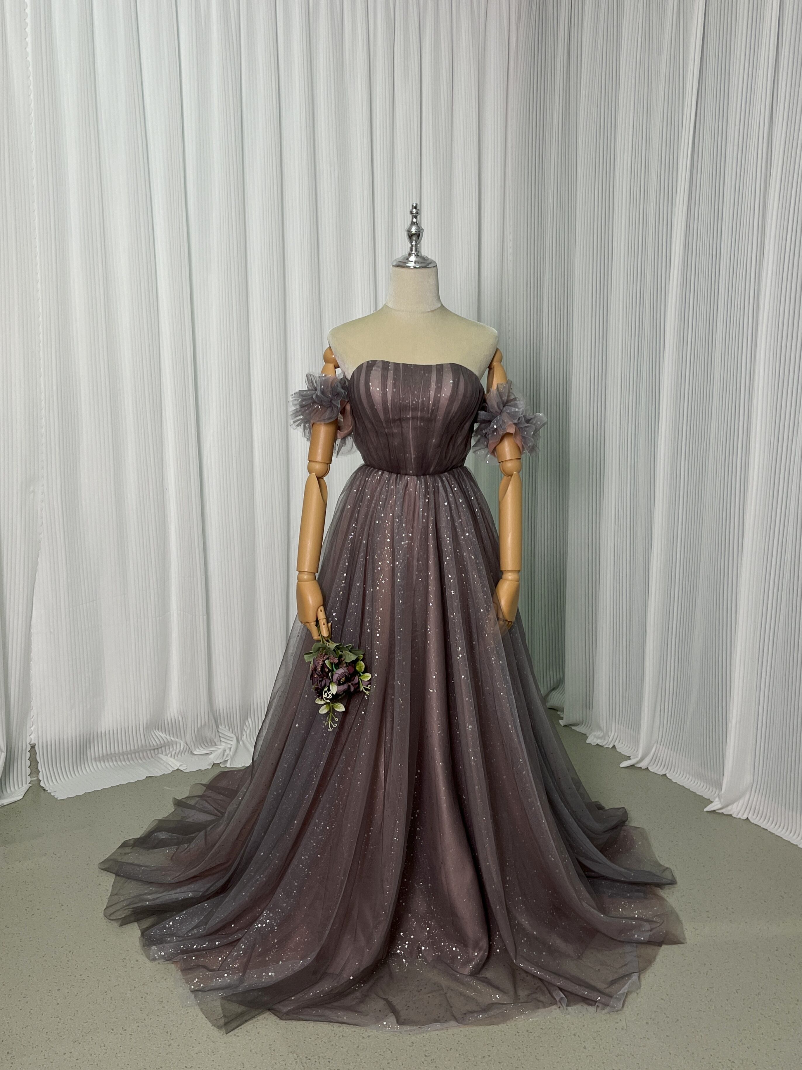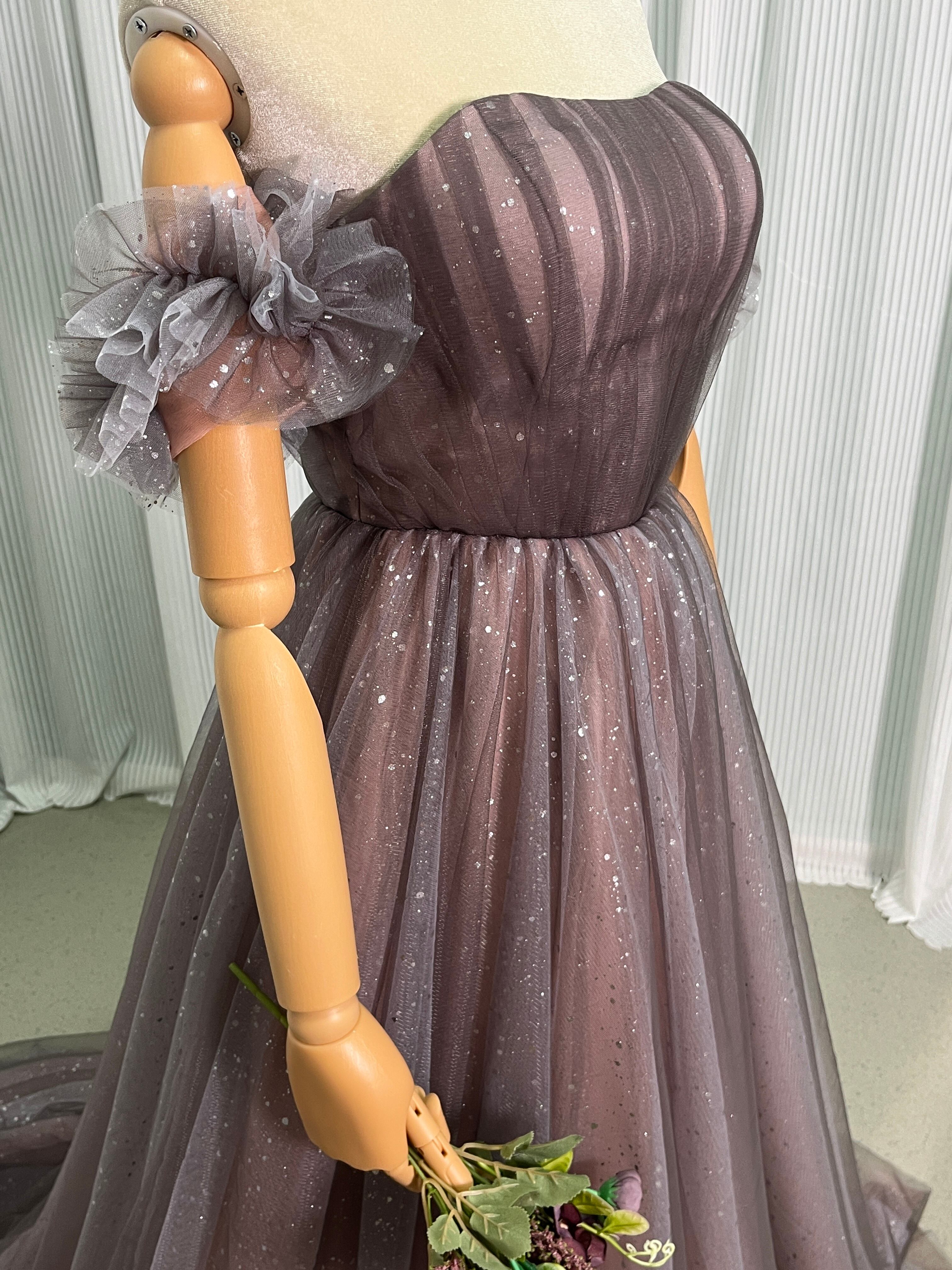 人気上昇!紫 色 カラードレス キラキラチュール ソフトチュール 華やかなトレーン 結婚式/披露宴/前撮り