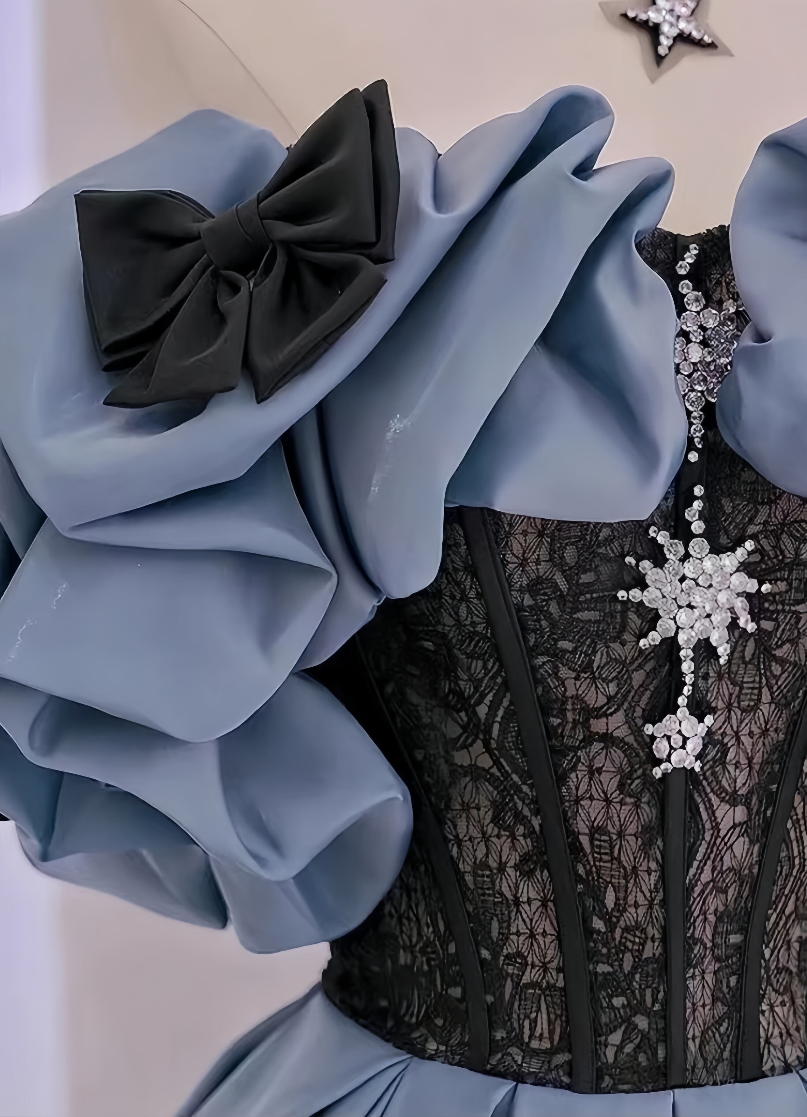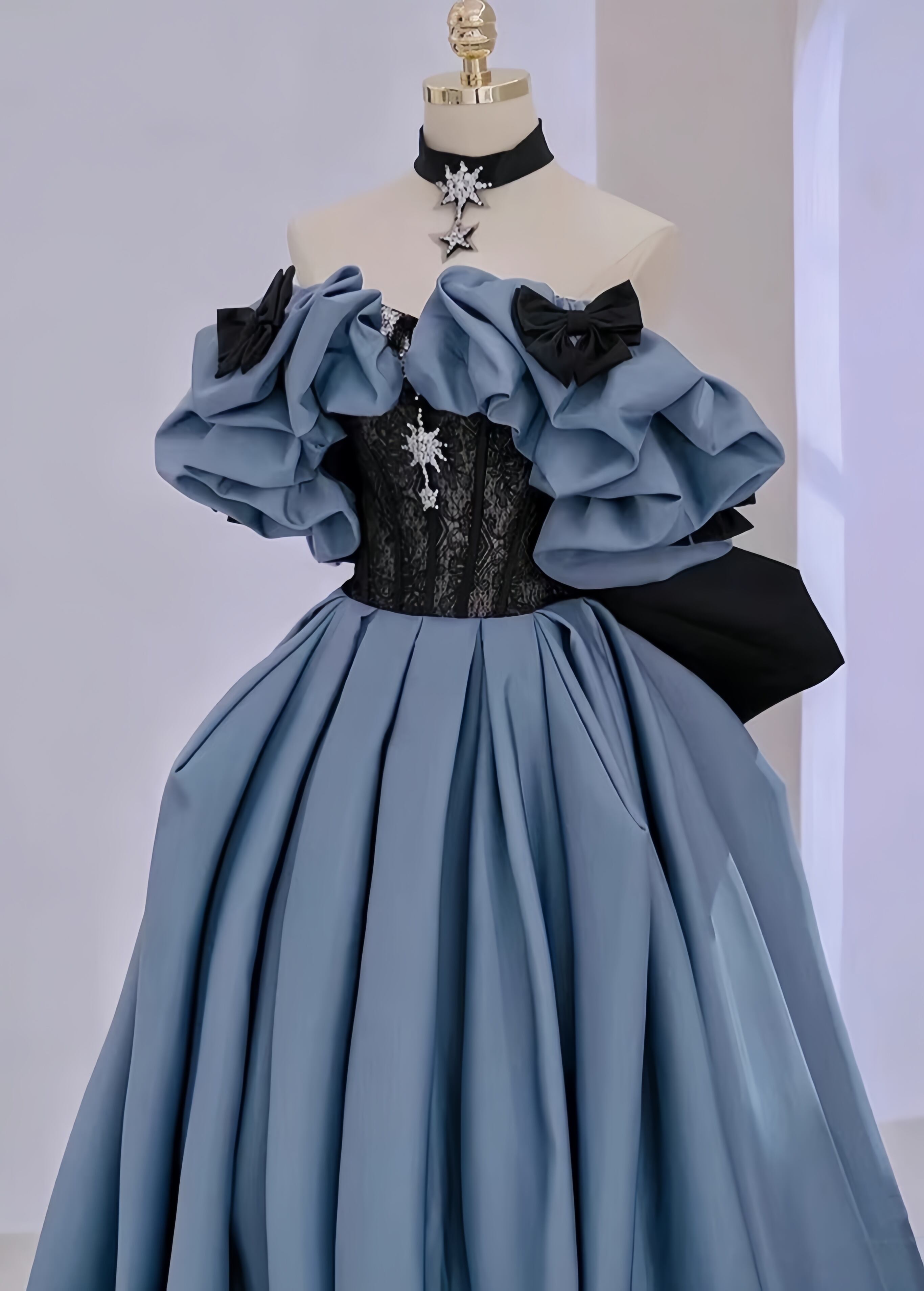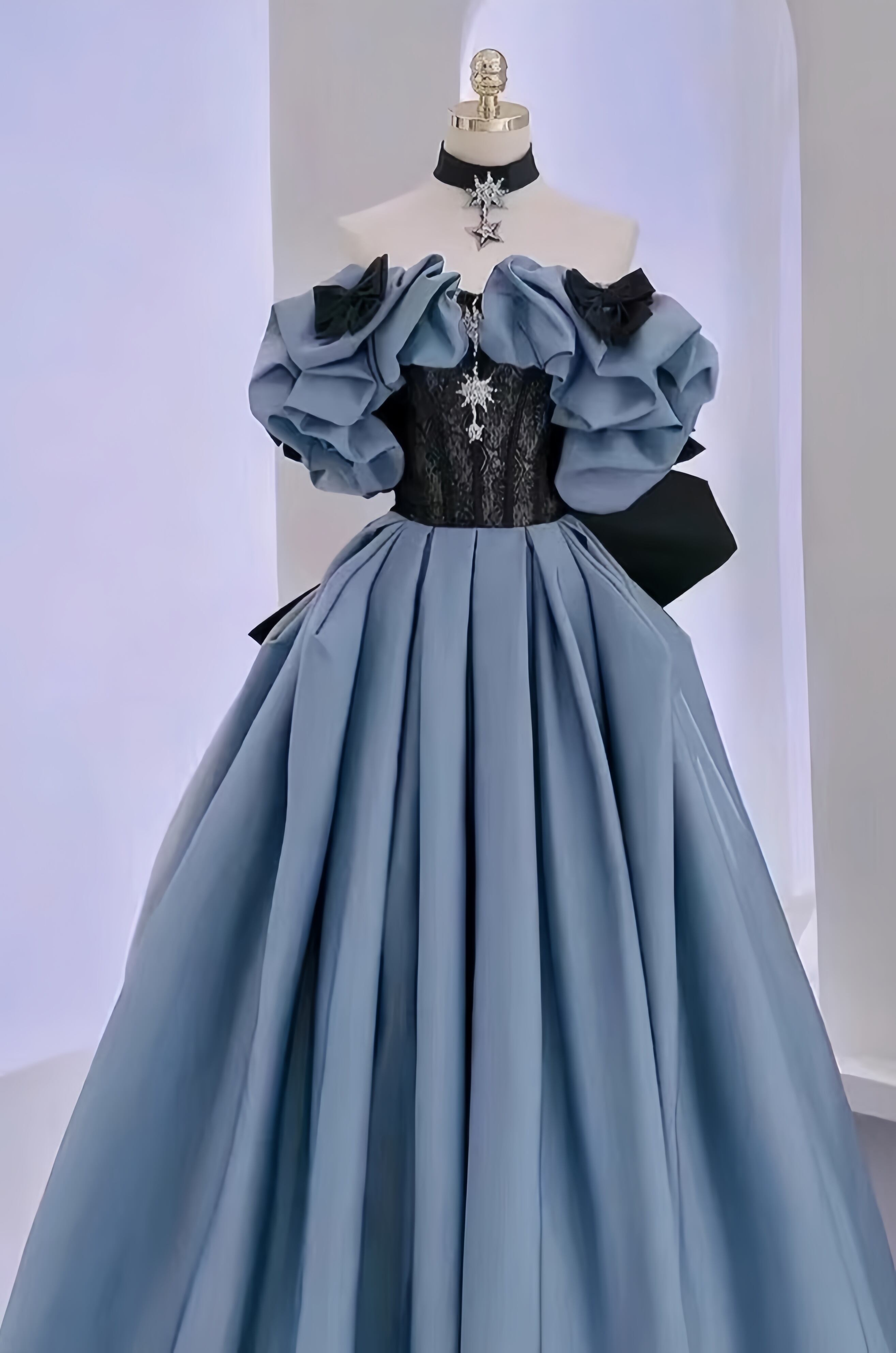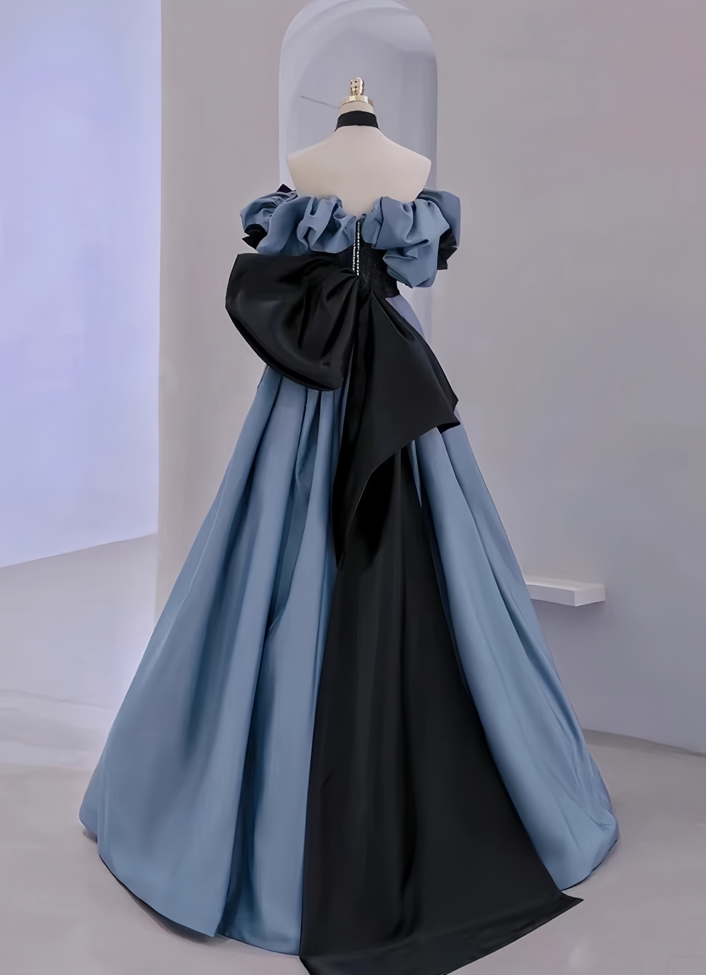高品質!送料無料!パーティードレス カラードレス ブルー ブラック/黒 チョーカー オフショルダー かわいい バックリボン エレガント ピアノ ステージ 演奏ドレス ミディアムドレス セレモニー イブニングドレス 合コン 誕生日プレゼント | David1021k Dress(ダヴィドレス)
