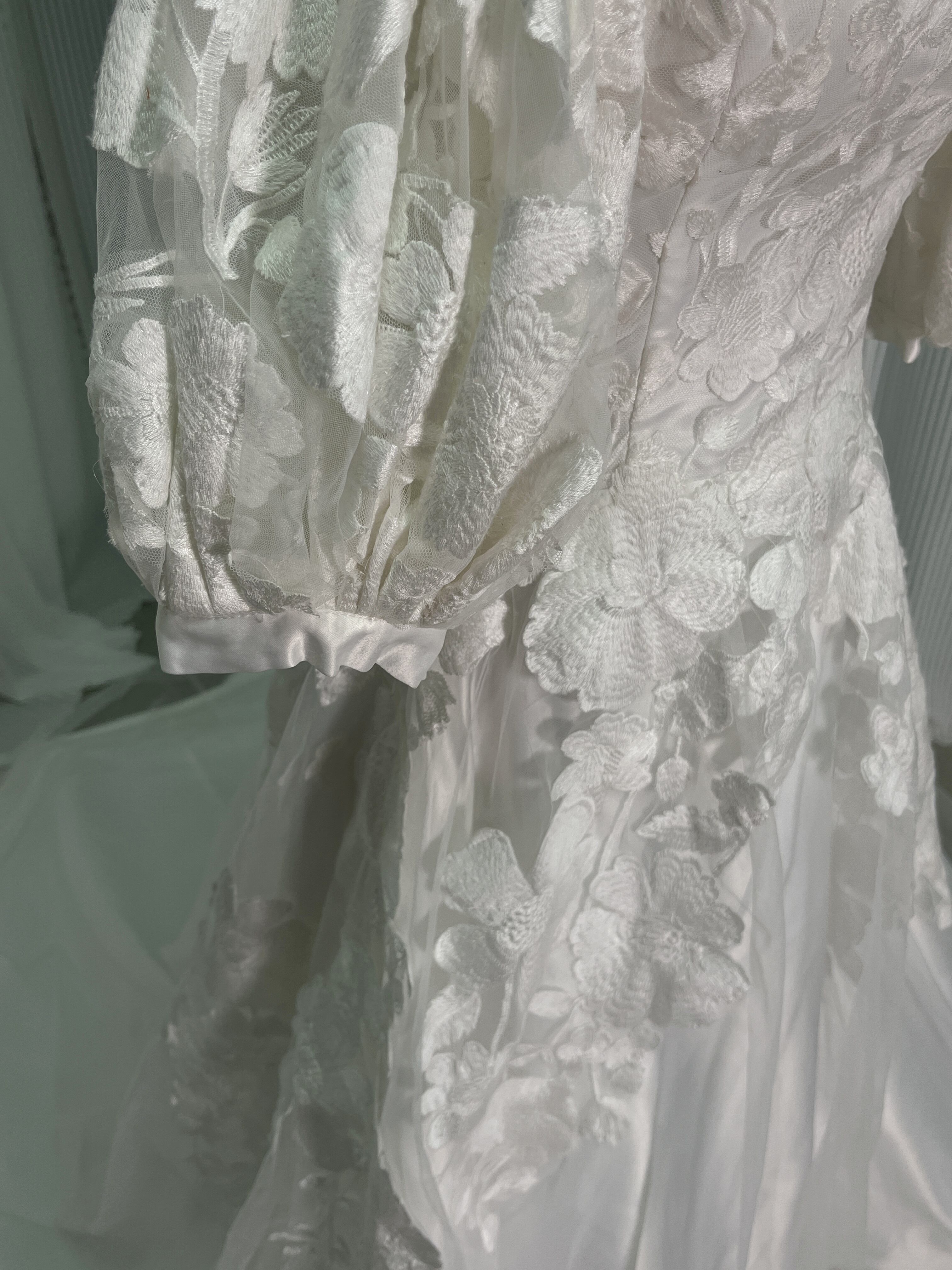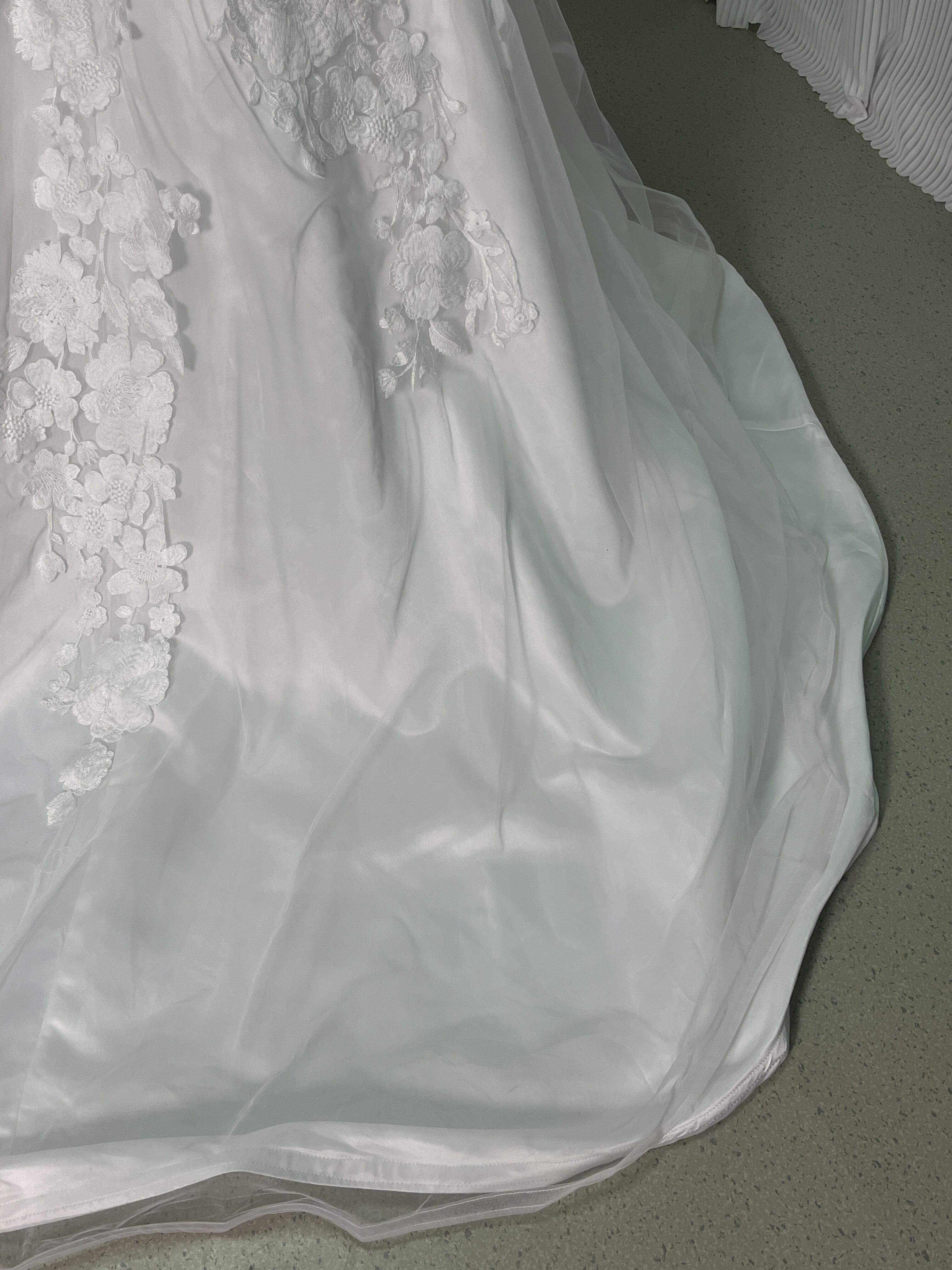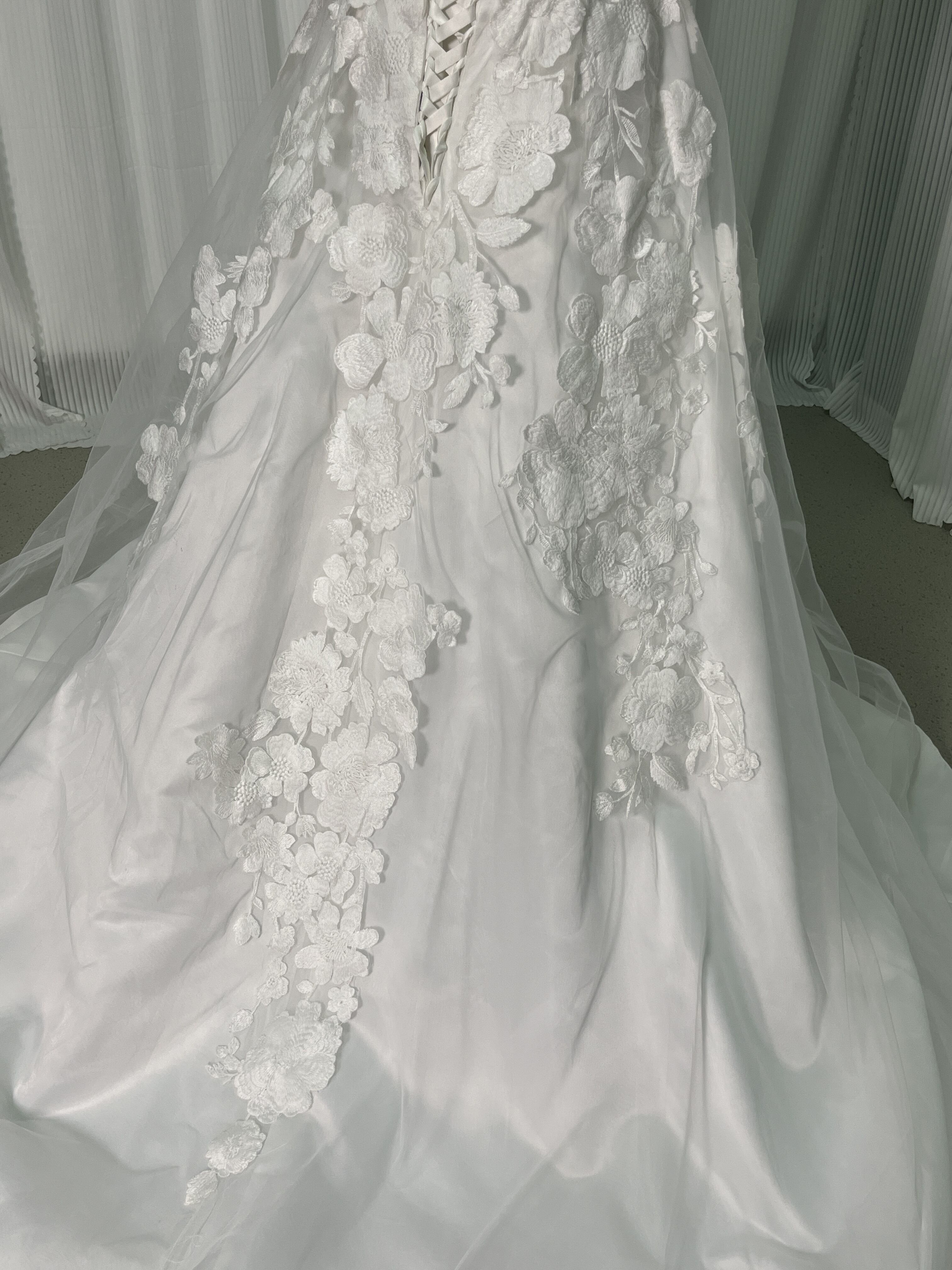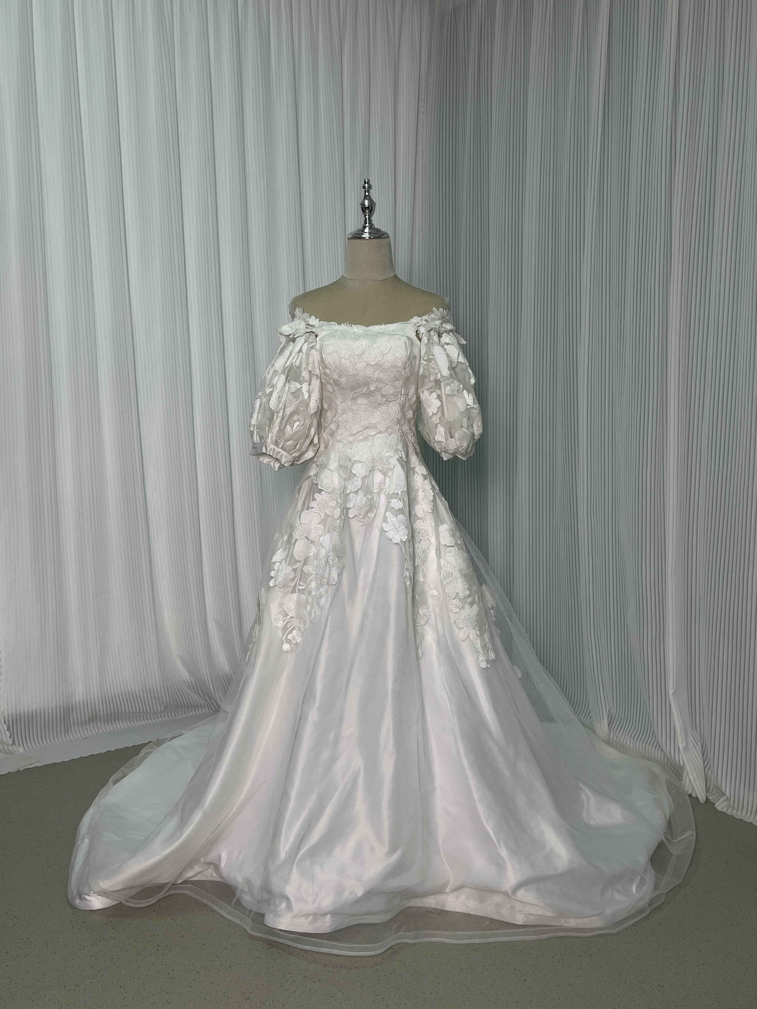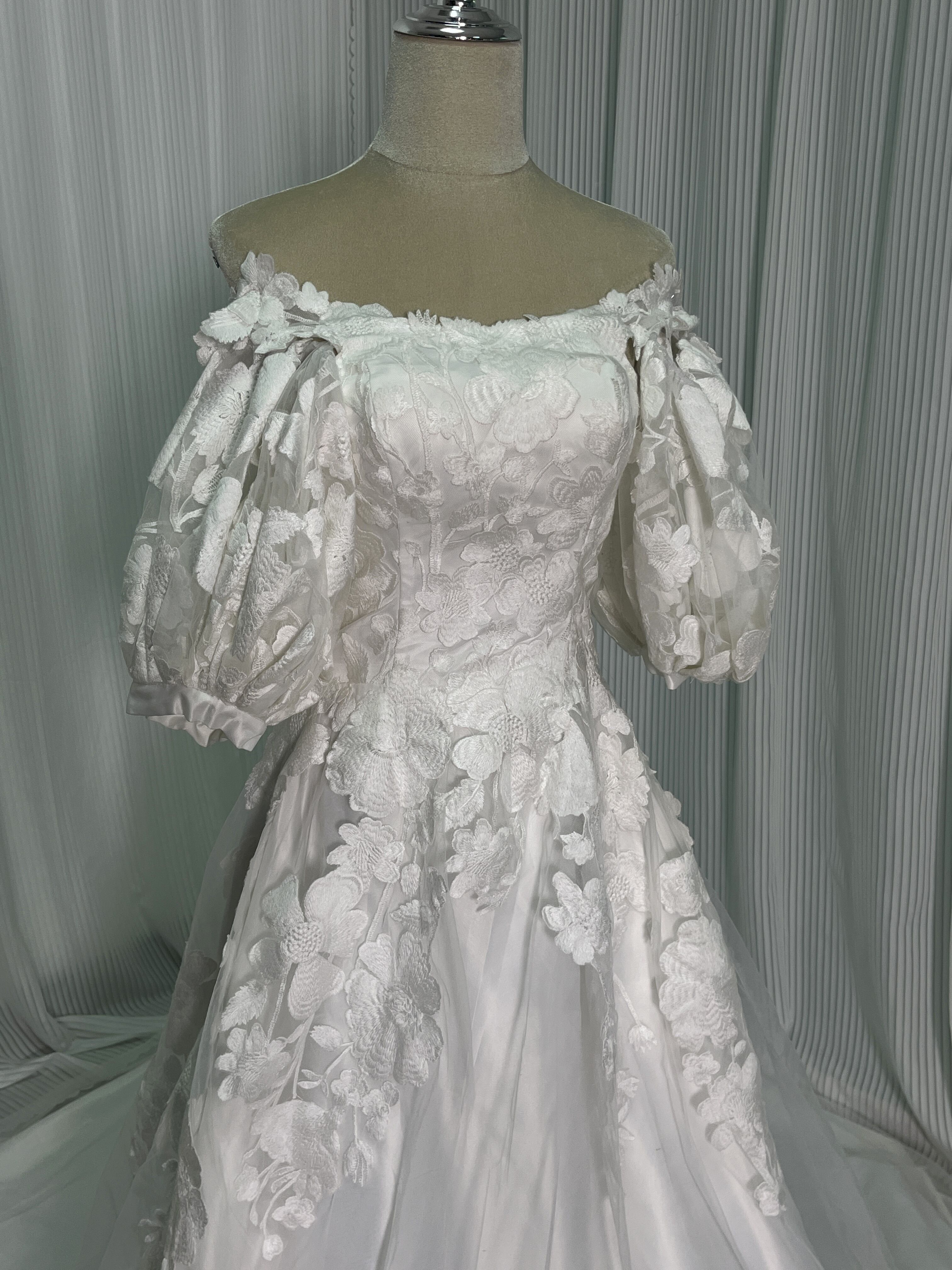 送料無料!ウエディングドレス オフショルダー 3D立体レース刺繍華やかなトレーン 花嫁 結婚式/前撮り