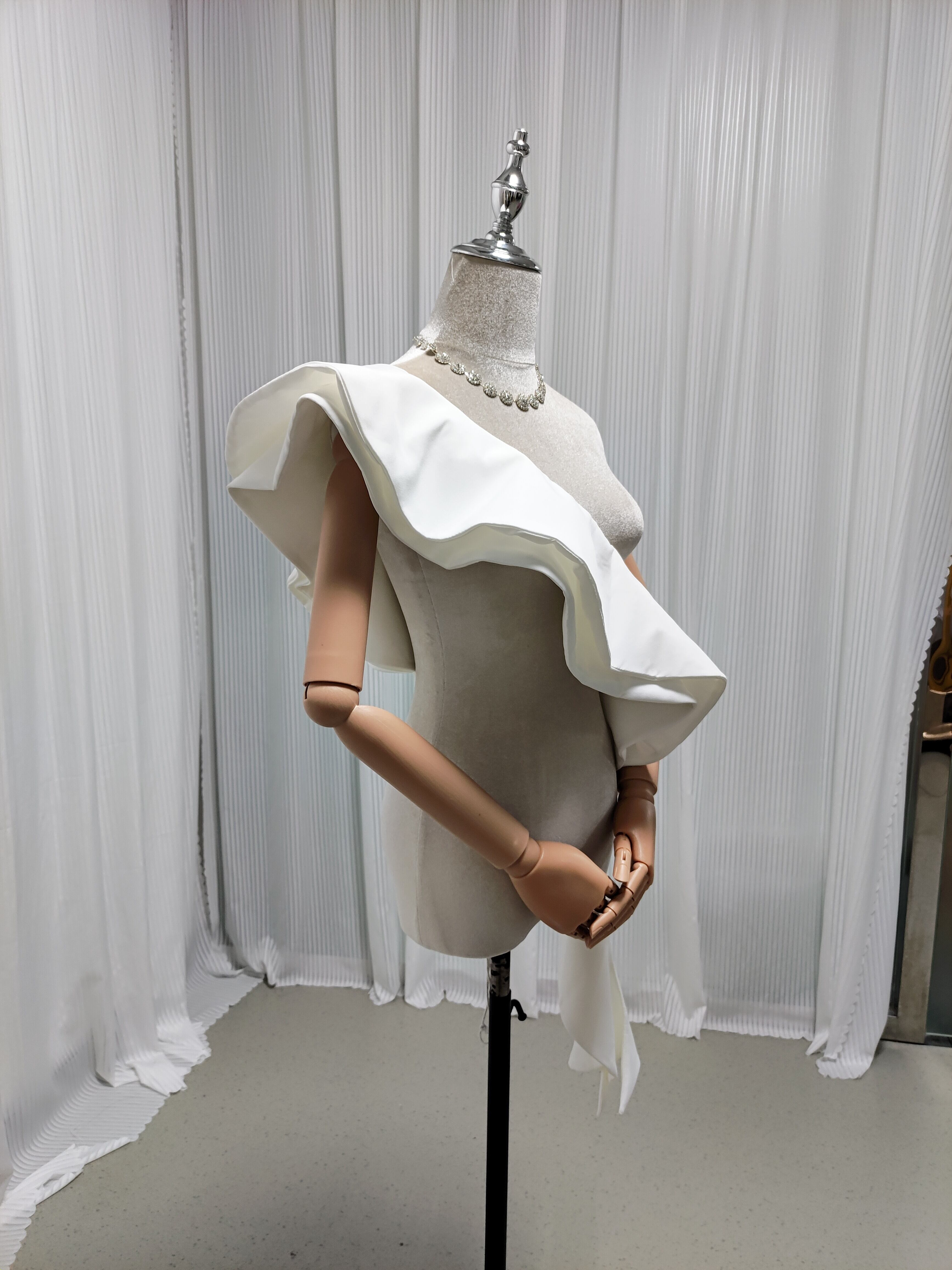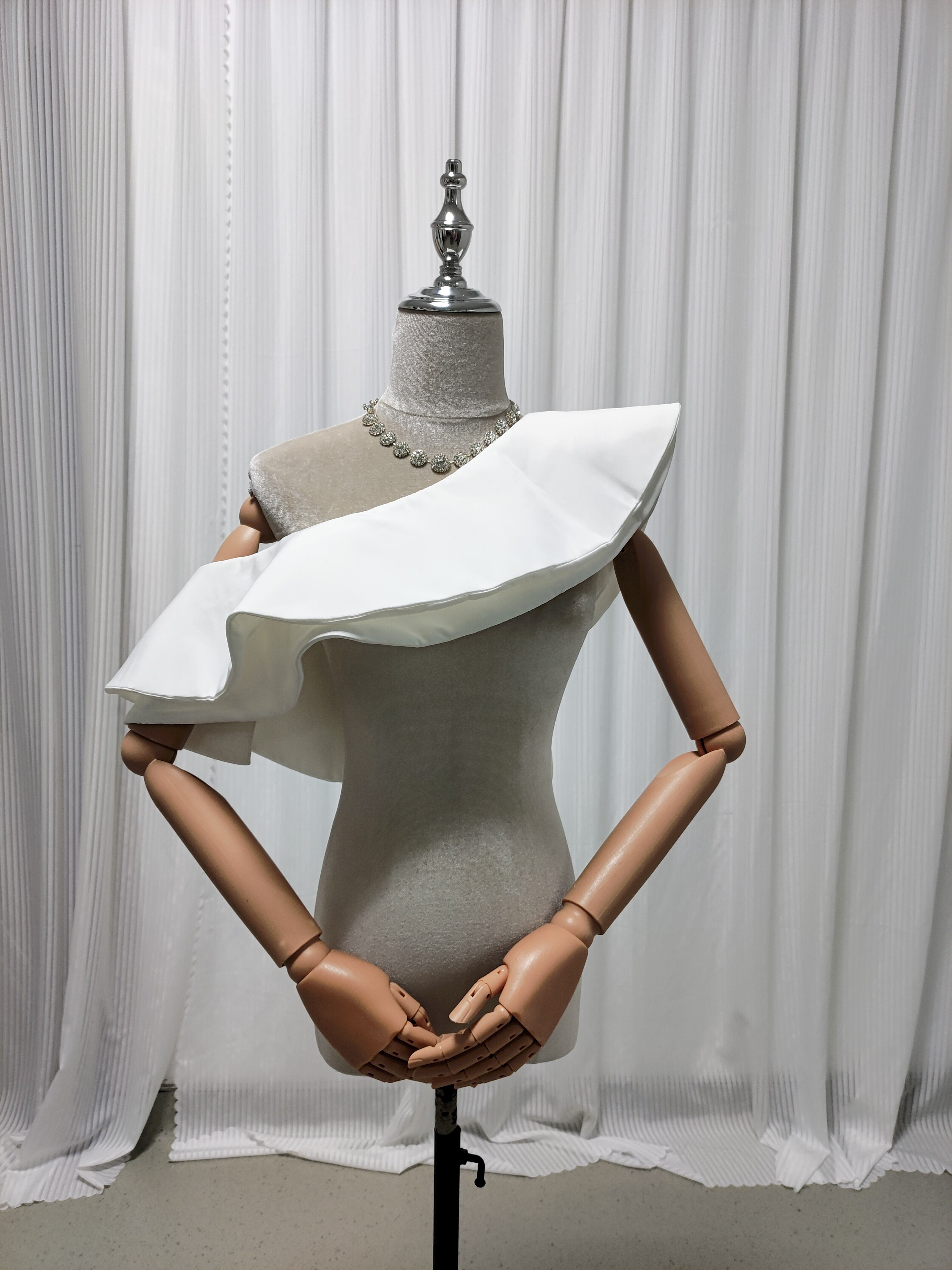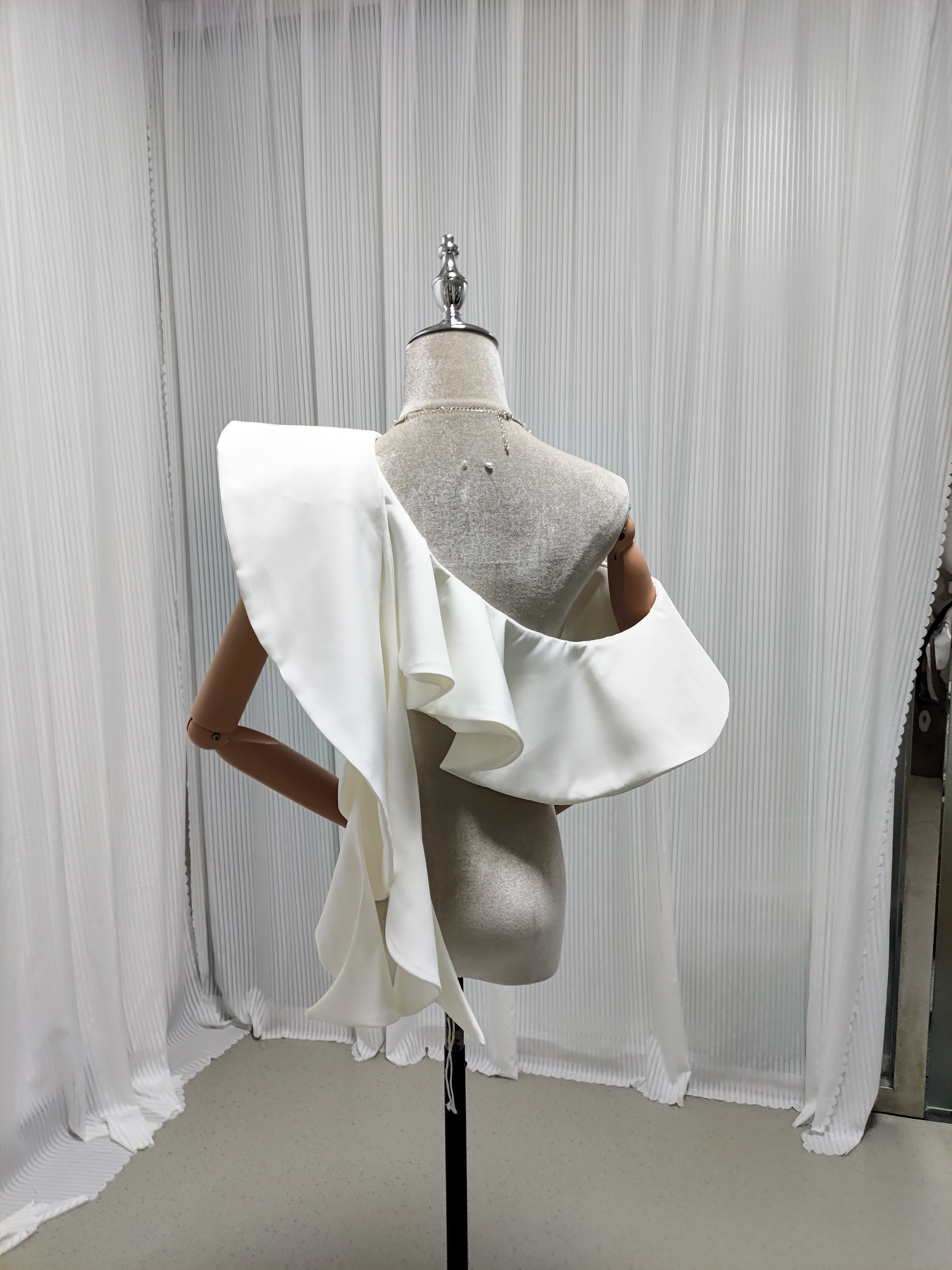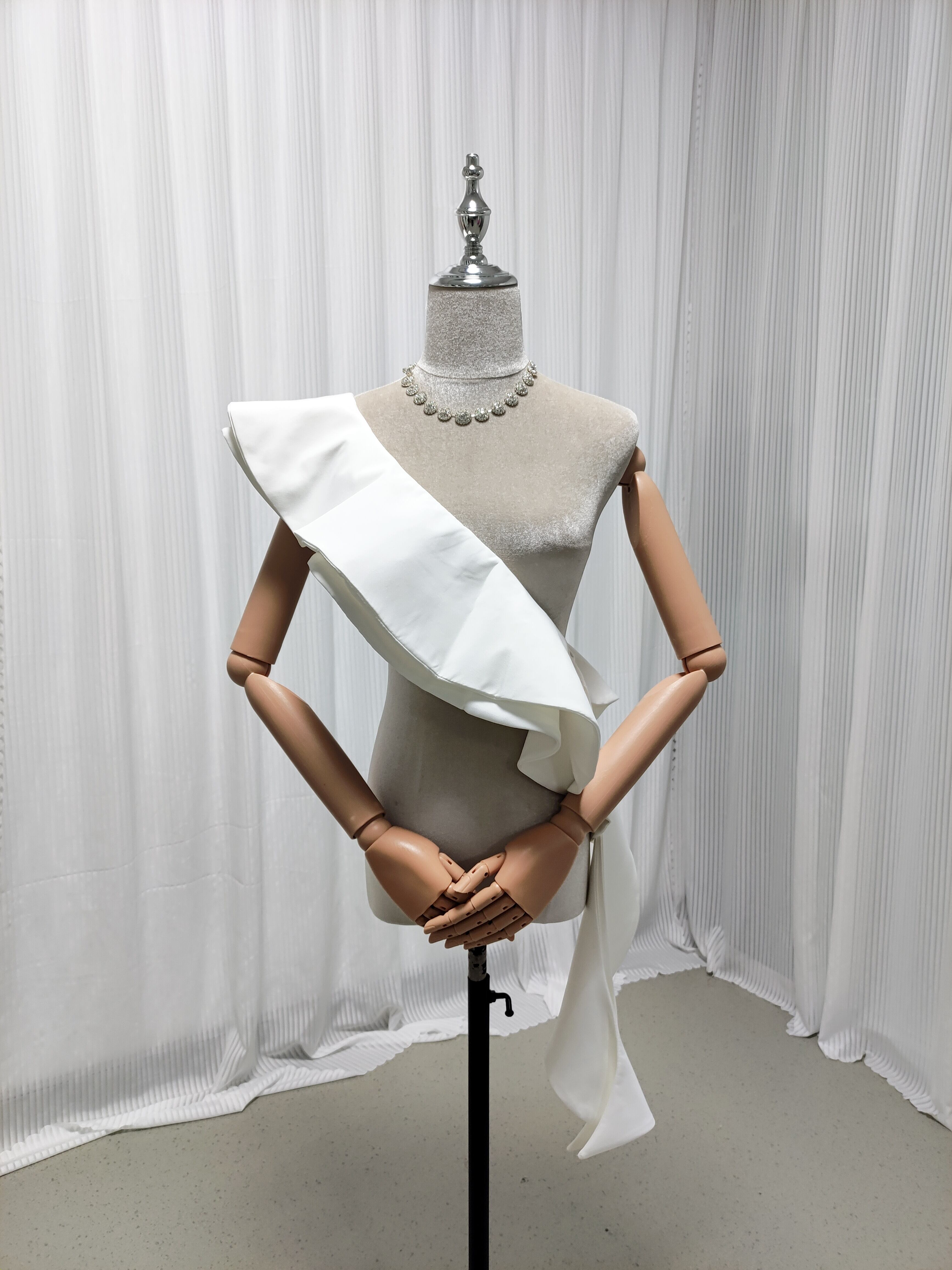送料無料!ウエディングドレス ラッフルスカーフ 色直し クレープ生地 サイズ調整可能ドレスアレンジ お色直し ロールカラー
