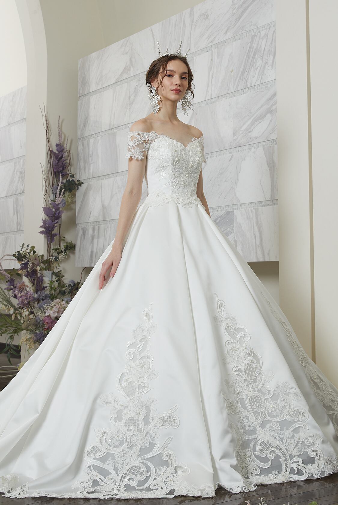 送料無料!ウエディングドレス オフショルダー 上品レース 華やかなトレーン 優雅 オーダードレス パーティードレス 花嫁 結婚式/前撮り
