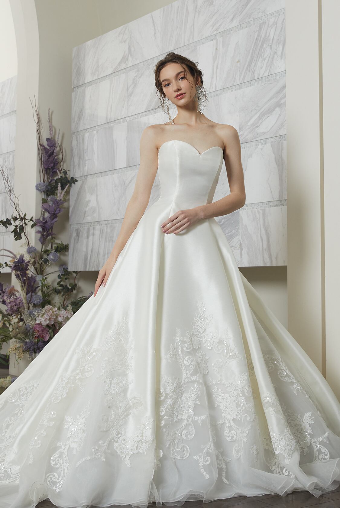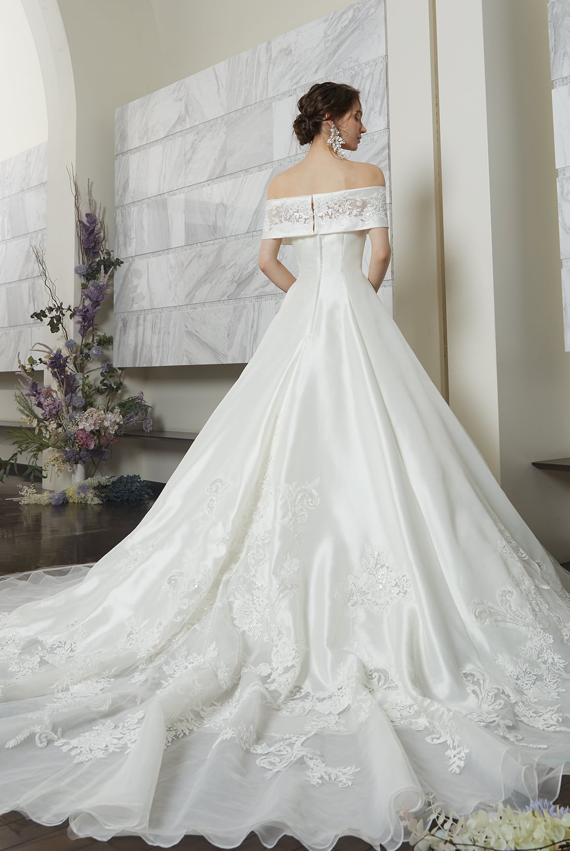 送料無料!ウエディングドレス オフショルダー 上品レース 花柄のモチーフ刺繍が美しく 華やかなトレーン 優雅 オーダードレス パーティードレス 花嫁 結婚式/前撮り | David1021k Dress(ダヴィドレス)
