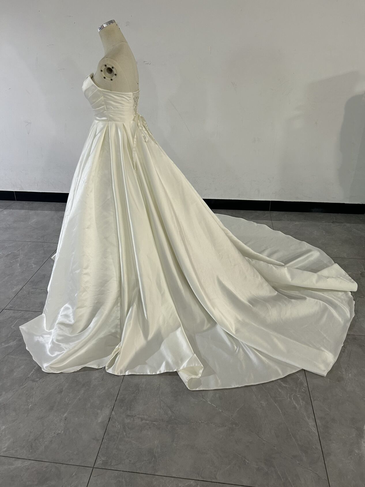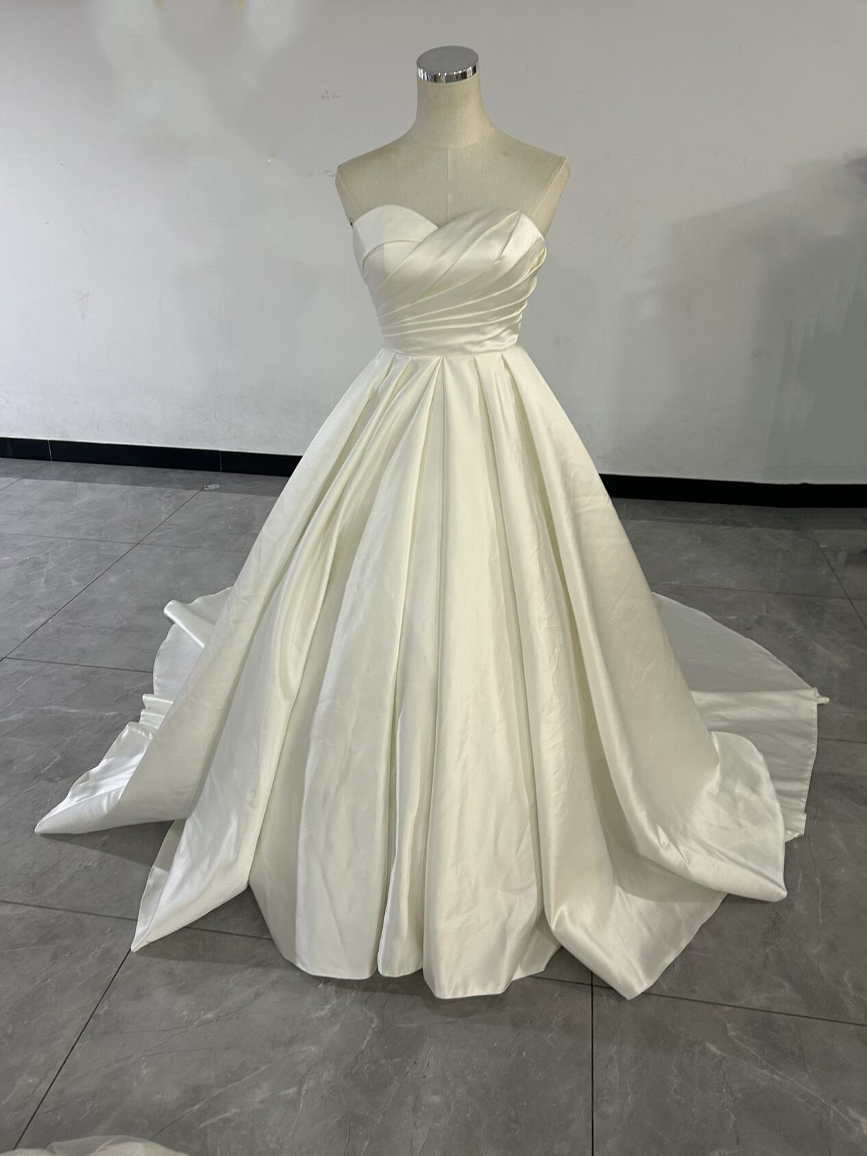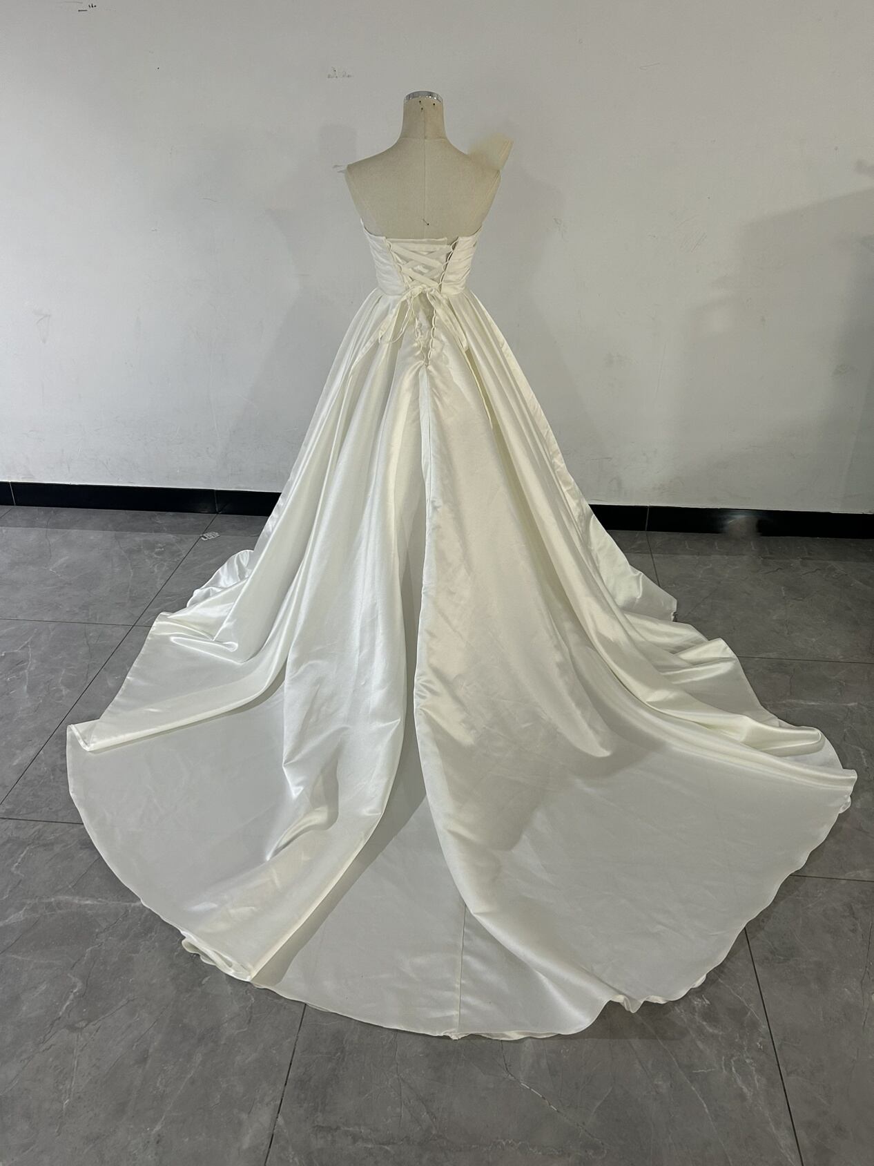 人気上昇!ウエディングドレス ホワイト エンパイア ベアトップ 華やかなトレーン/結婚式/披露宴