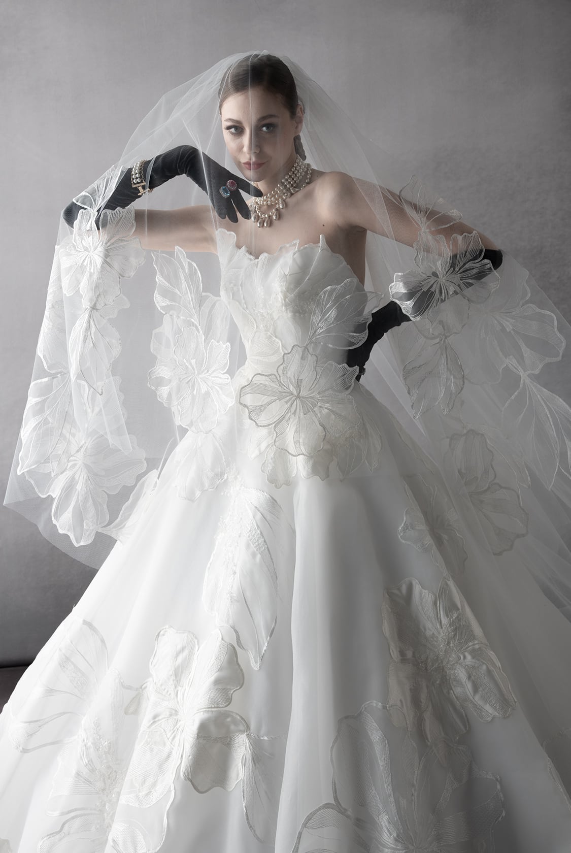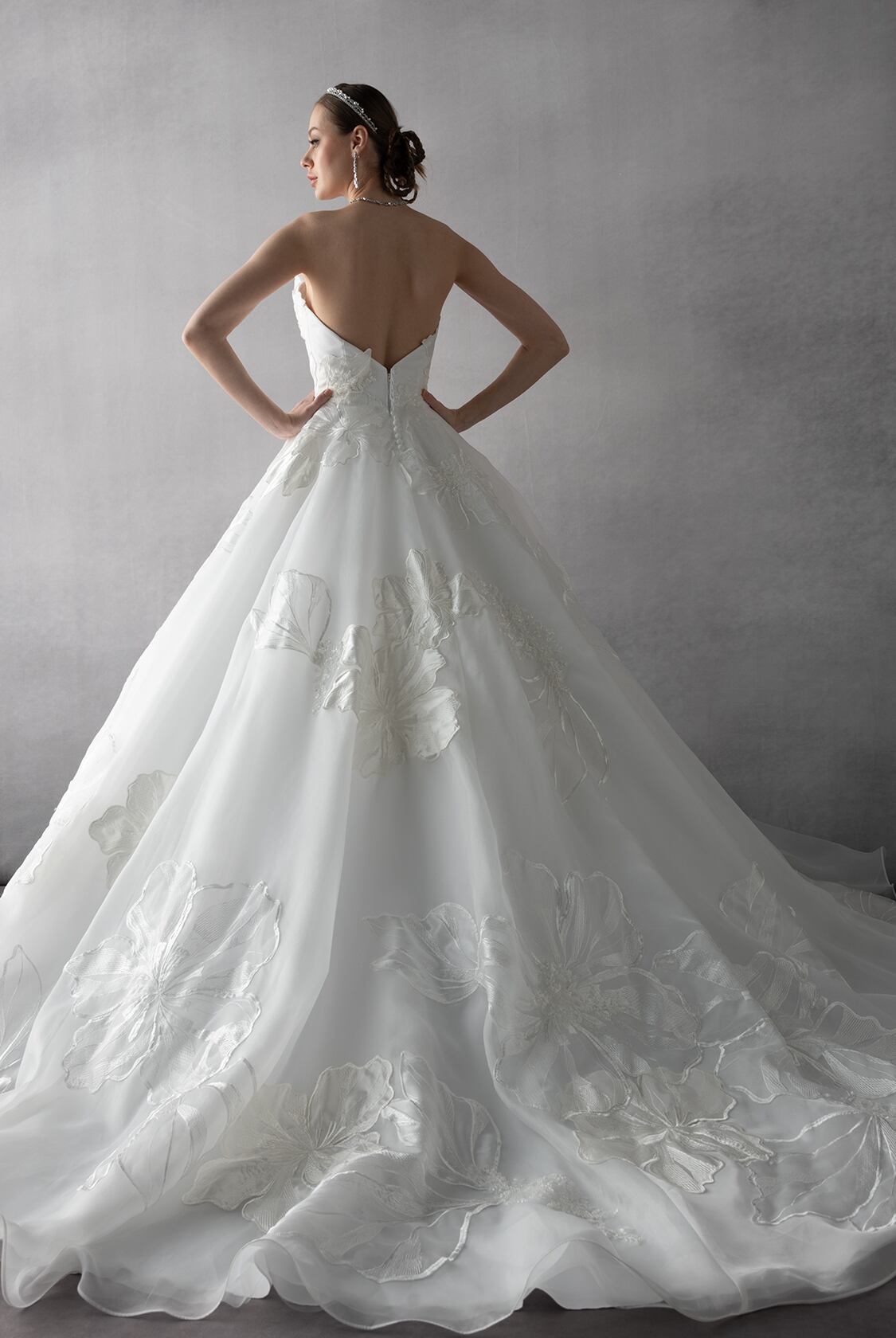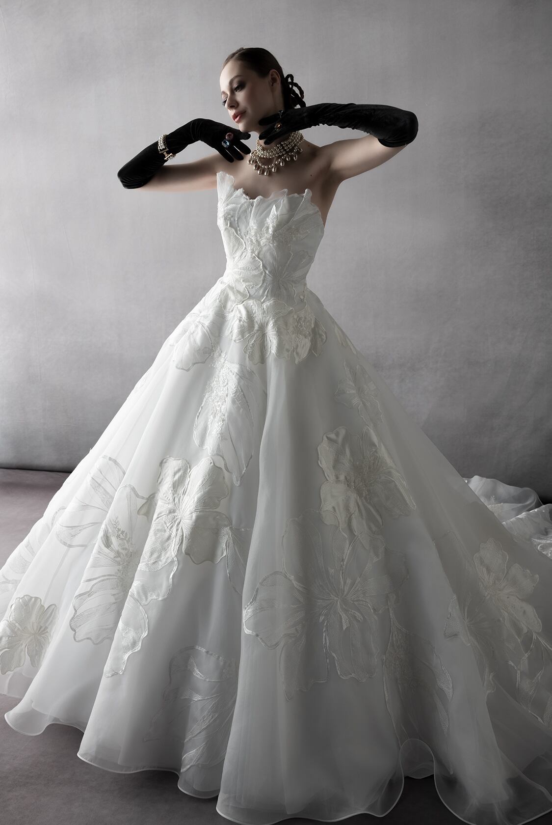 送料無料!ウエディングドレス ベアトップ 上品レース 優雅なシルエット 花柄のモチーフ刺繍が美しく 華やかなトレーン 優雅 オーダードレス 憧れのドレス パーティードレス クラシカル 花嫁 結婚式/前撮り