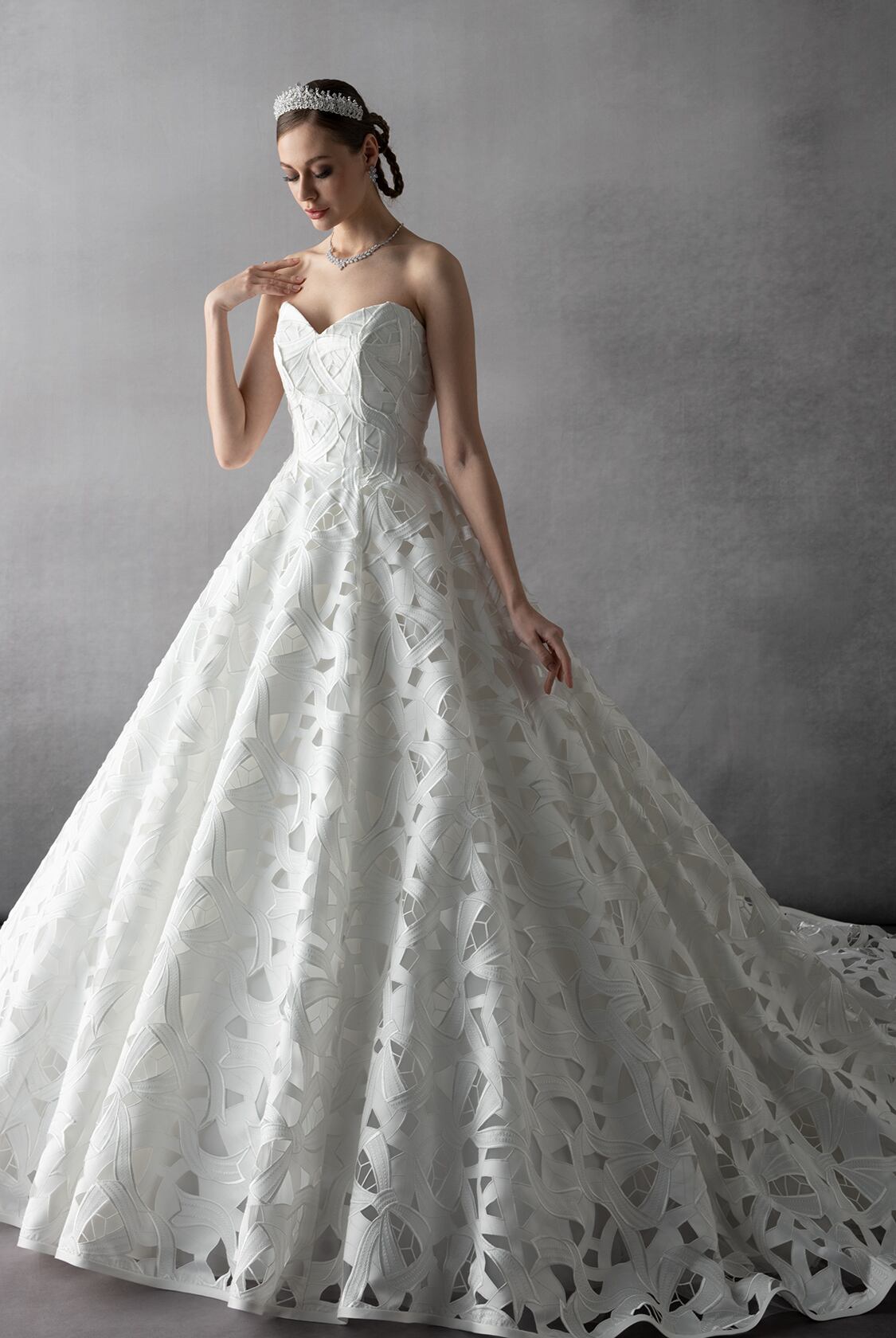 送料無料!ウエディングドレス ベアトップ 上品レース 優雅なシルエット プリンセスライン トレーン 優雅 オーダードレス 憧れのドレス パーティードレス クラシカル 花嫁 結婚式/前撮り | David1021k Dress(ダヴィドレス)