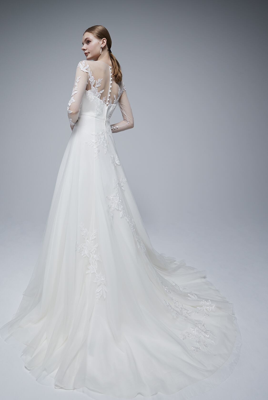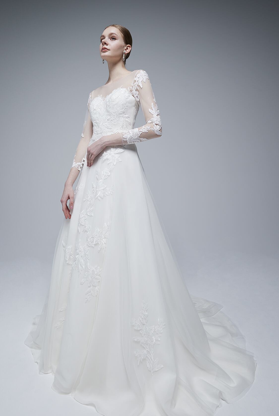 送料無料!ウエディングドレス 上品レース Aライン 背中見せ/バックレス ハートカット 優雅なシルエット トレーン オーダードレス 憧れのドレス パーティードレス クラシカル 花嫁 結婚式/前撮り | David1021k Dress(ダヴィドレス)
