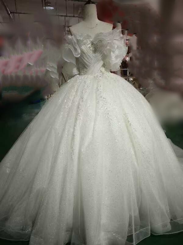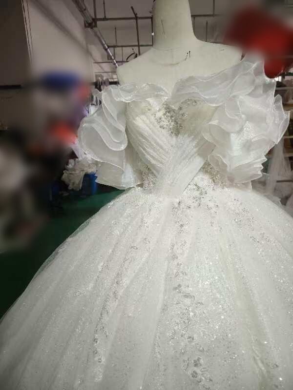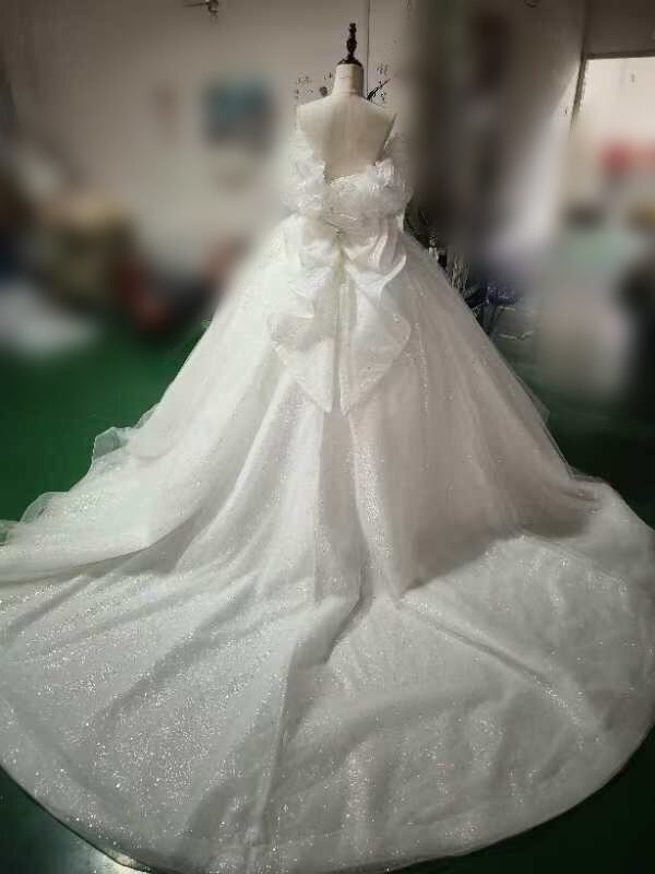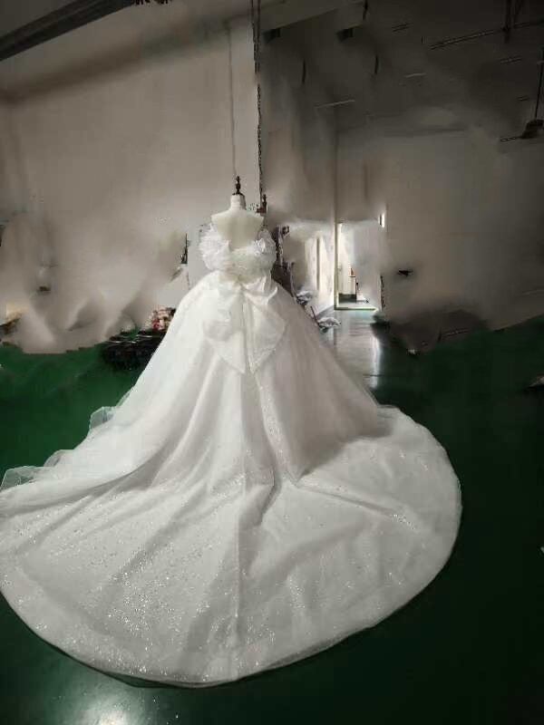 韓国風ビジュー 上品レース ウエディングドレス キラキラのハンドビーディング 豪華なトレーン プリンセスライン
