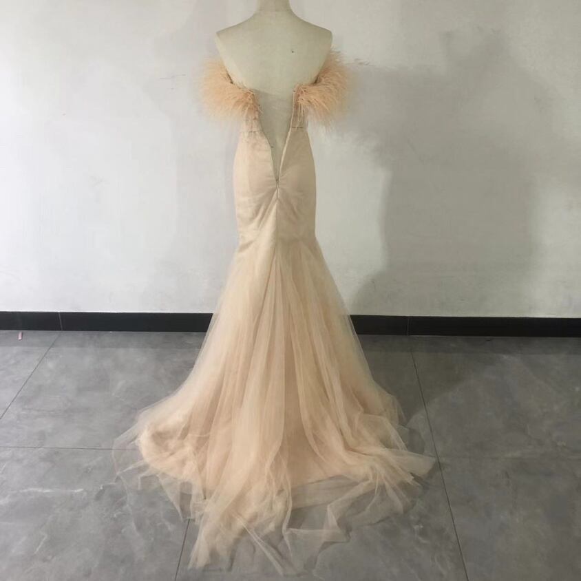 送料無料!人気上昇!カラードレス 羽フェザーマーメイド 玉ピンク パーティー/結婚式/披露宴