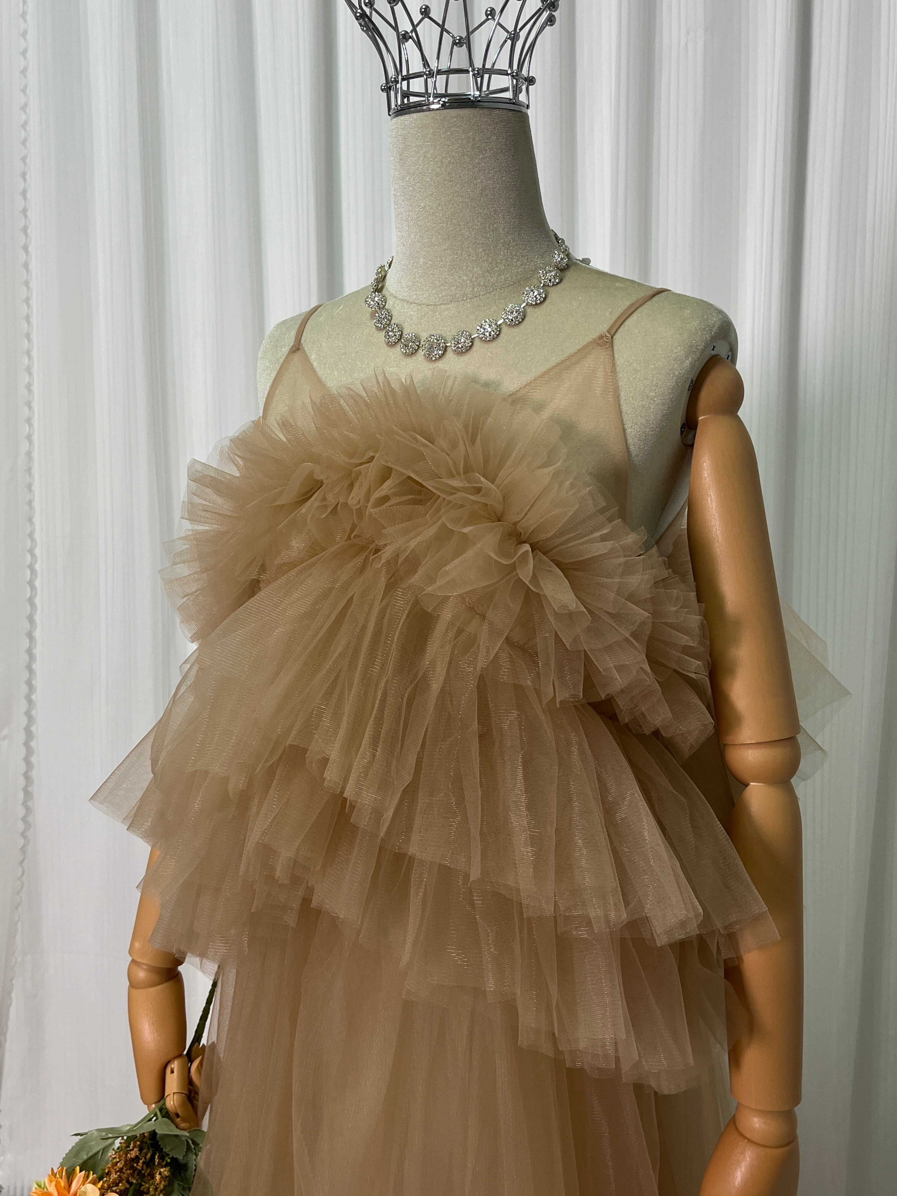 高品質! ドレス マタニティ 写真撮影 カーキ色 シースルー ワンピース ソフトチュール オーダーメイド