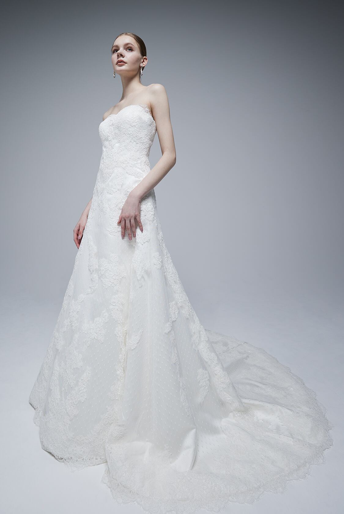 送料無料!ウエディングドレス ベアトップ 上品レース 背中見せ/バックレス 優雅なシルエット トレーン オーダードレス 憧れのドレス パーティードレス クラシカル 花嫁 結婚式/前撮り | David1021k Dress(ダヴィドレス)