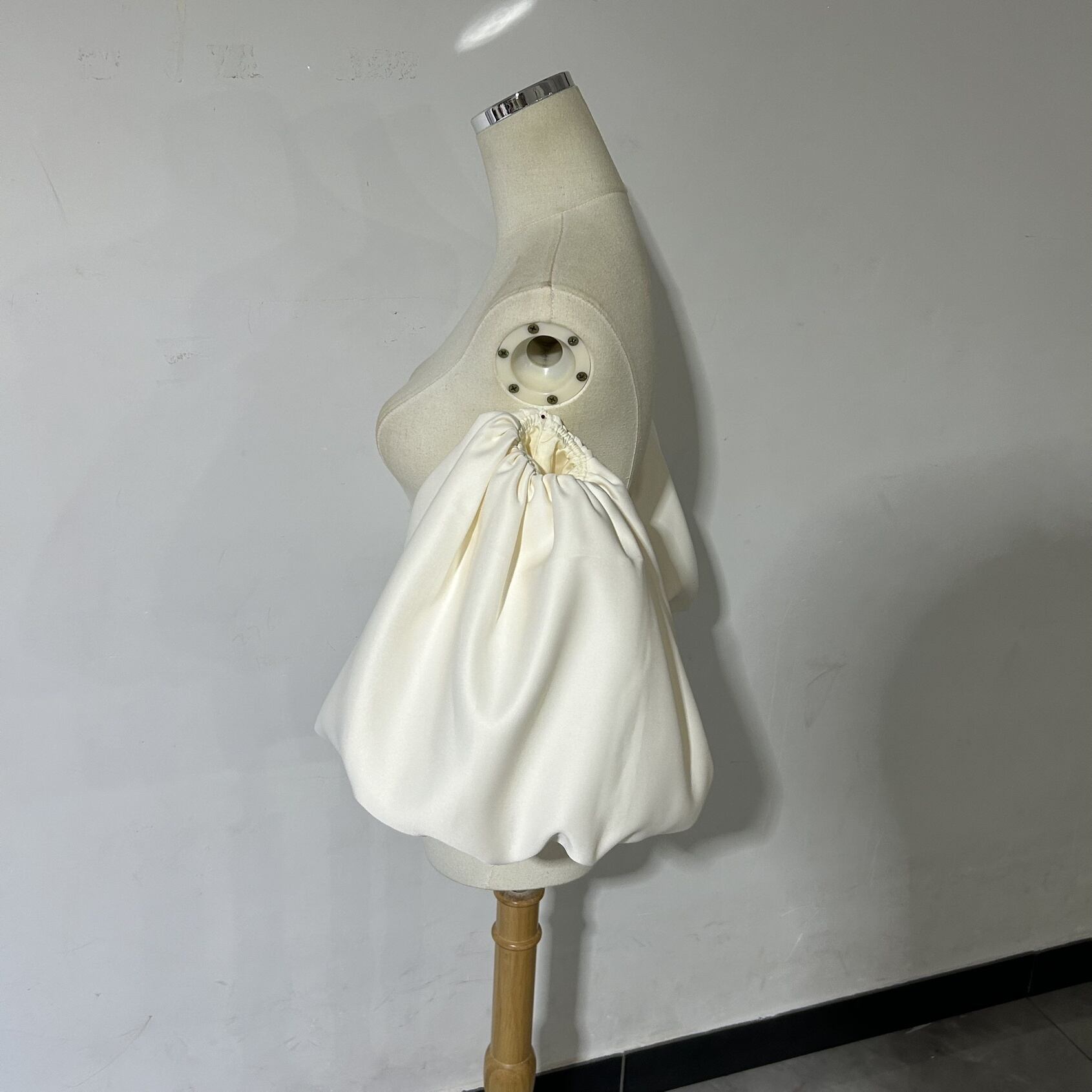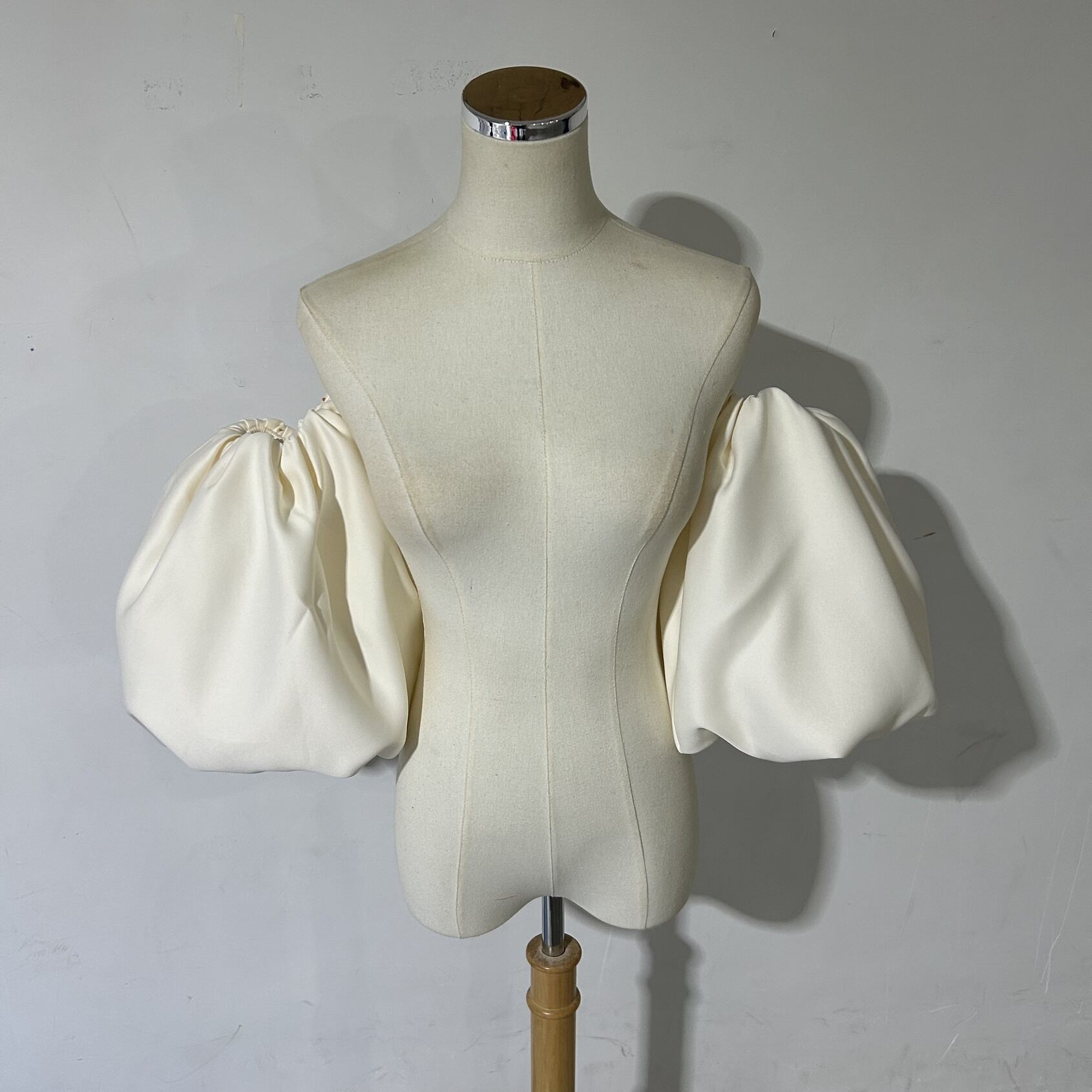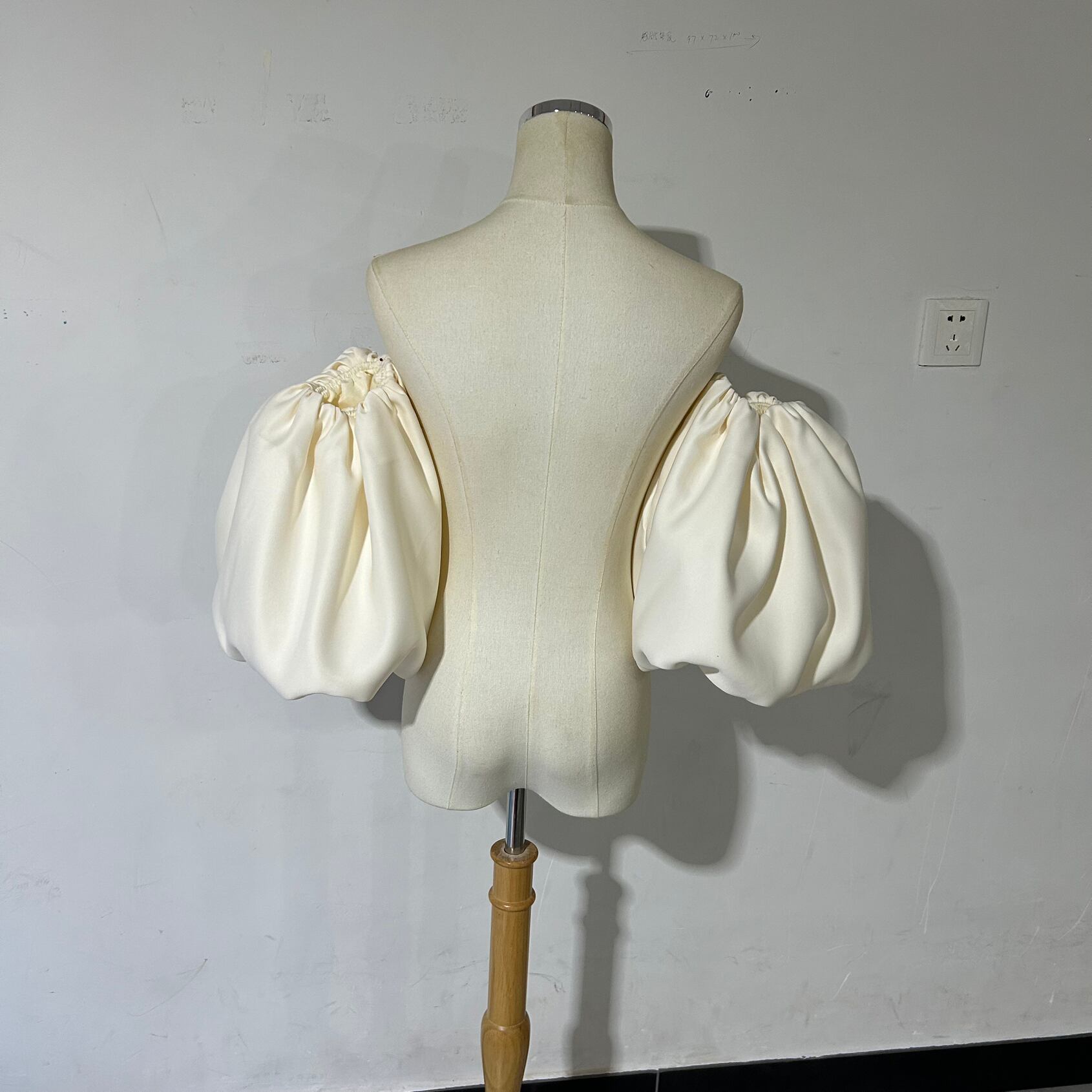 高級サテン アイボリー 取り外し袖 アイボリー ショルダーの付け袖 パフスリーブ オーダー可能 二の腕を隠せるお袖