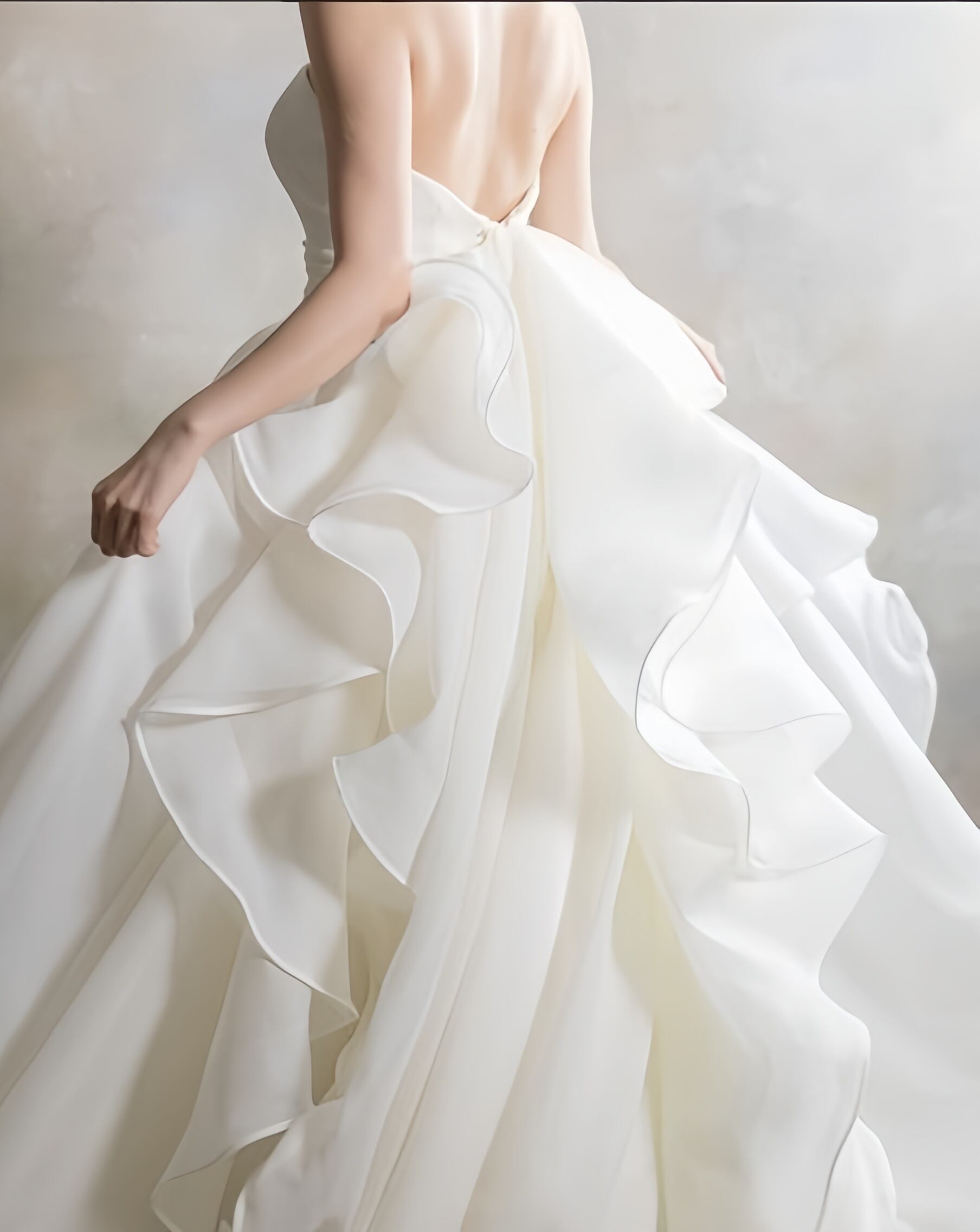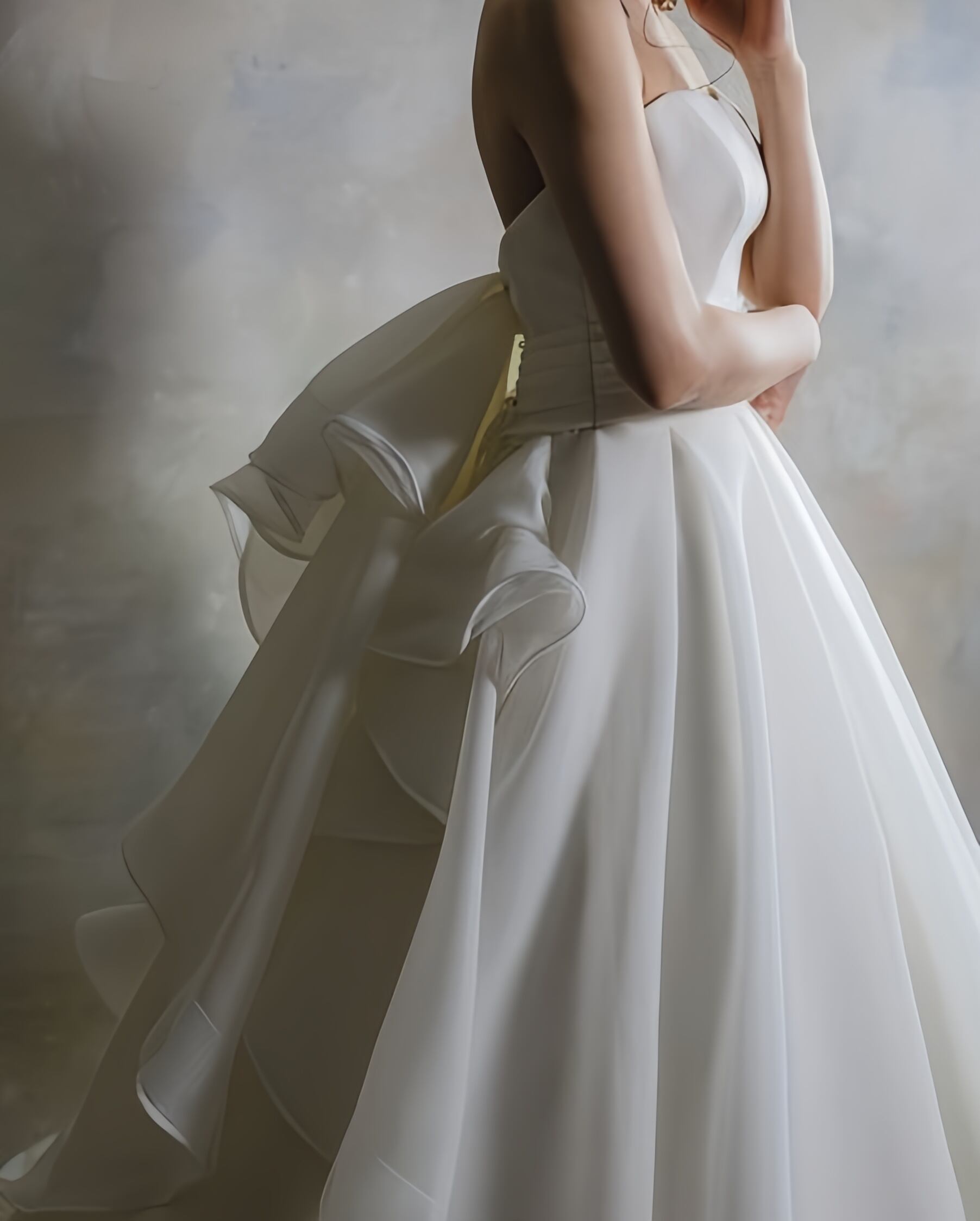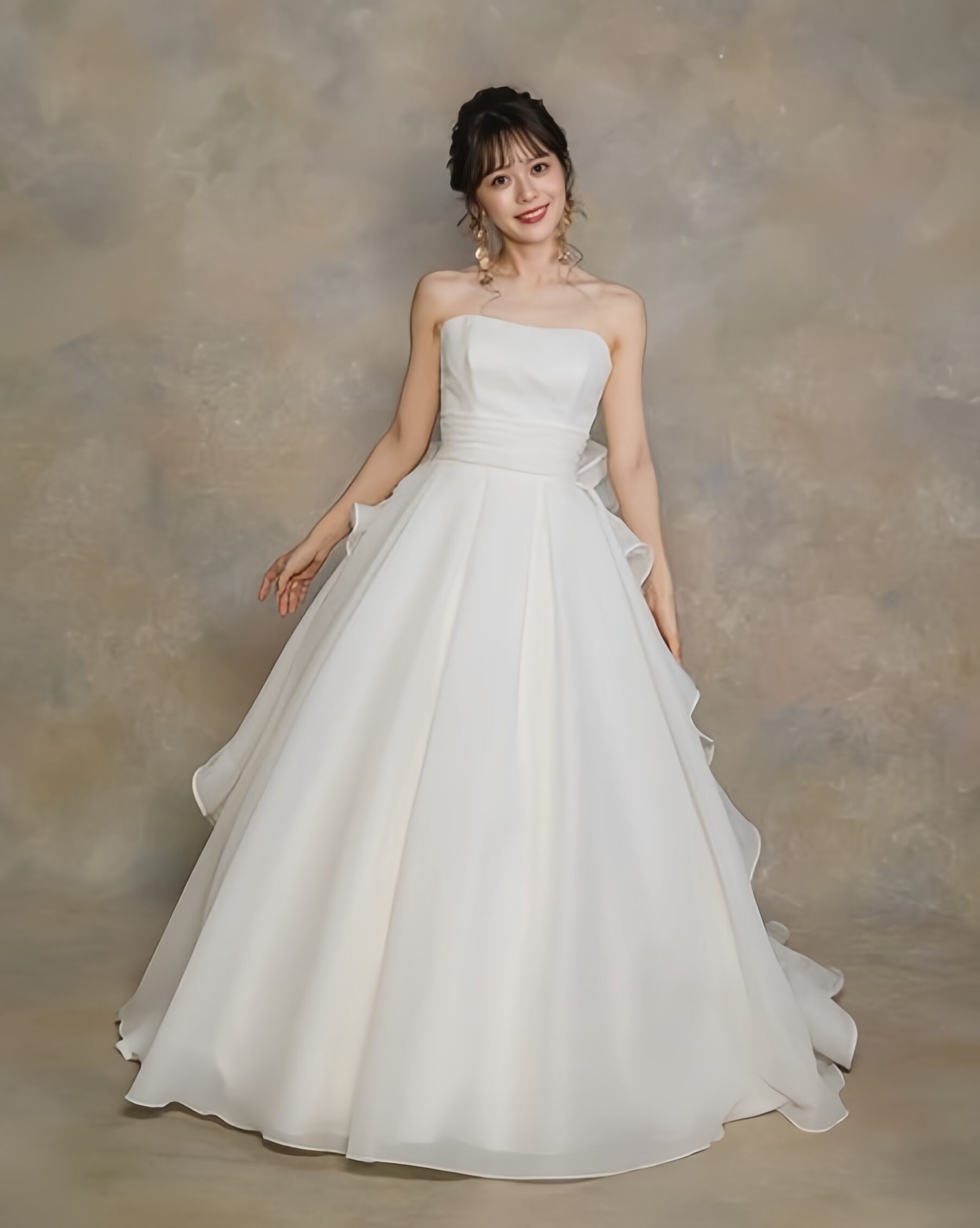 送料無料!ウエディングドレス ベアトップ バックリボン フリル Aライン 背中見せ/バックレス 優雅なシルエット 華やかなトレーン オーダードレス 憧れのドレス カジュアル クラシカル 花嫁 結婚式/前撮り | David1021k Dress(ダヴィドレス)