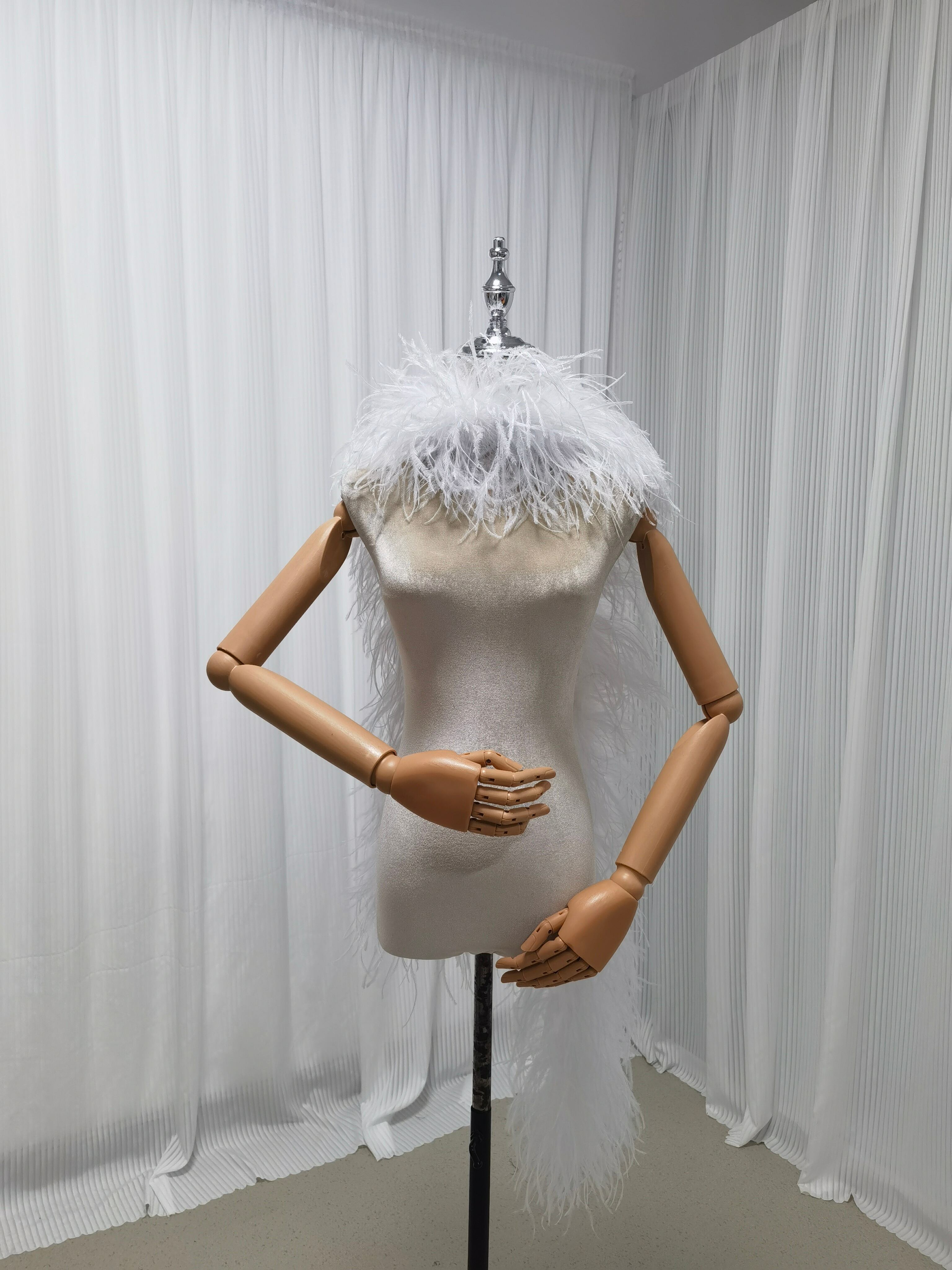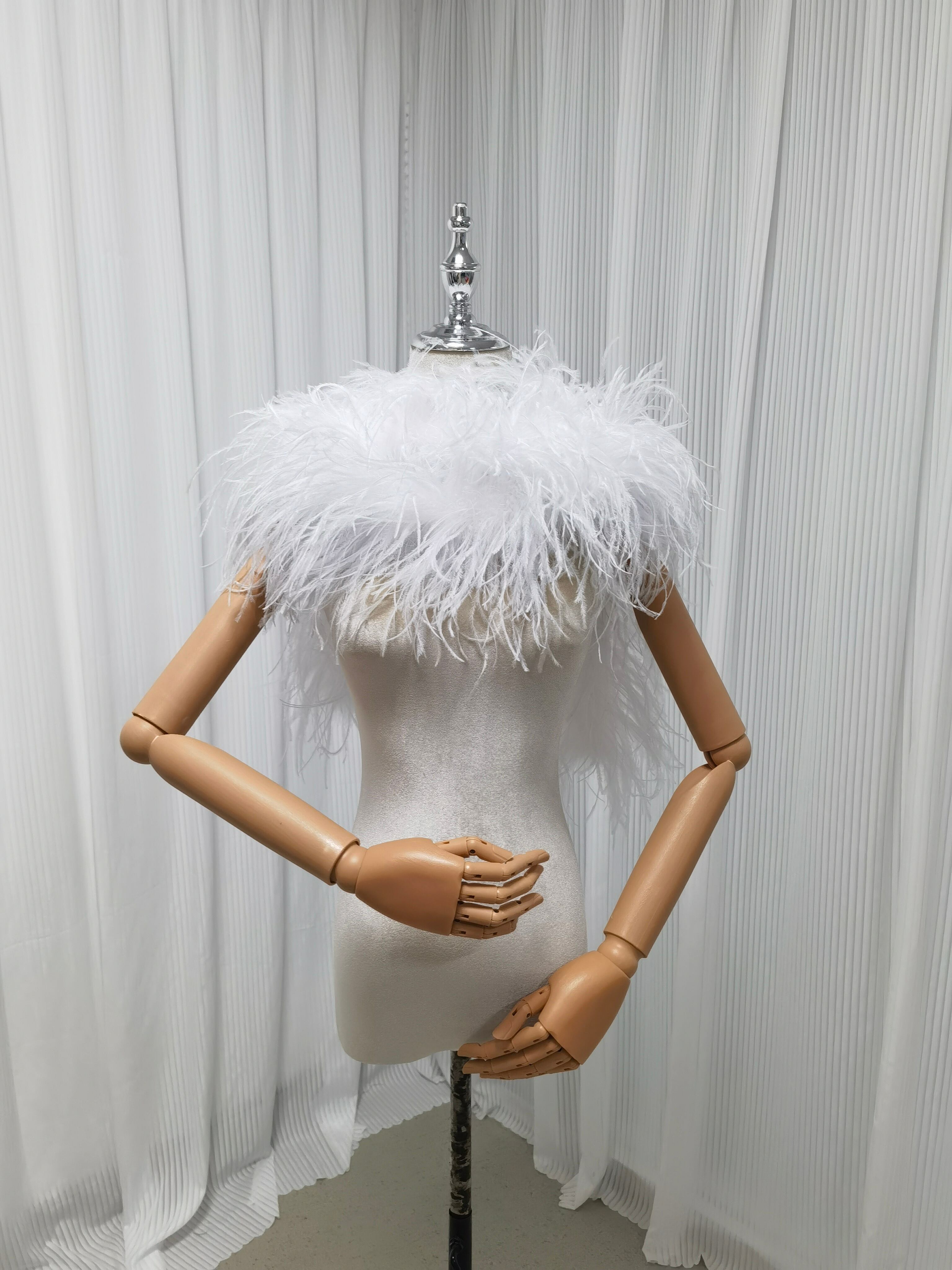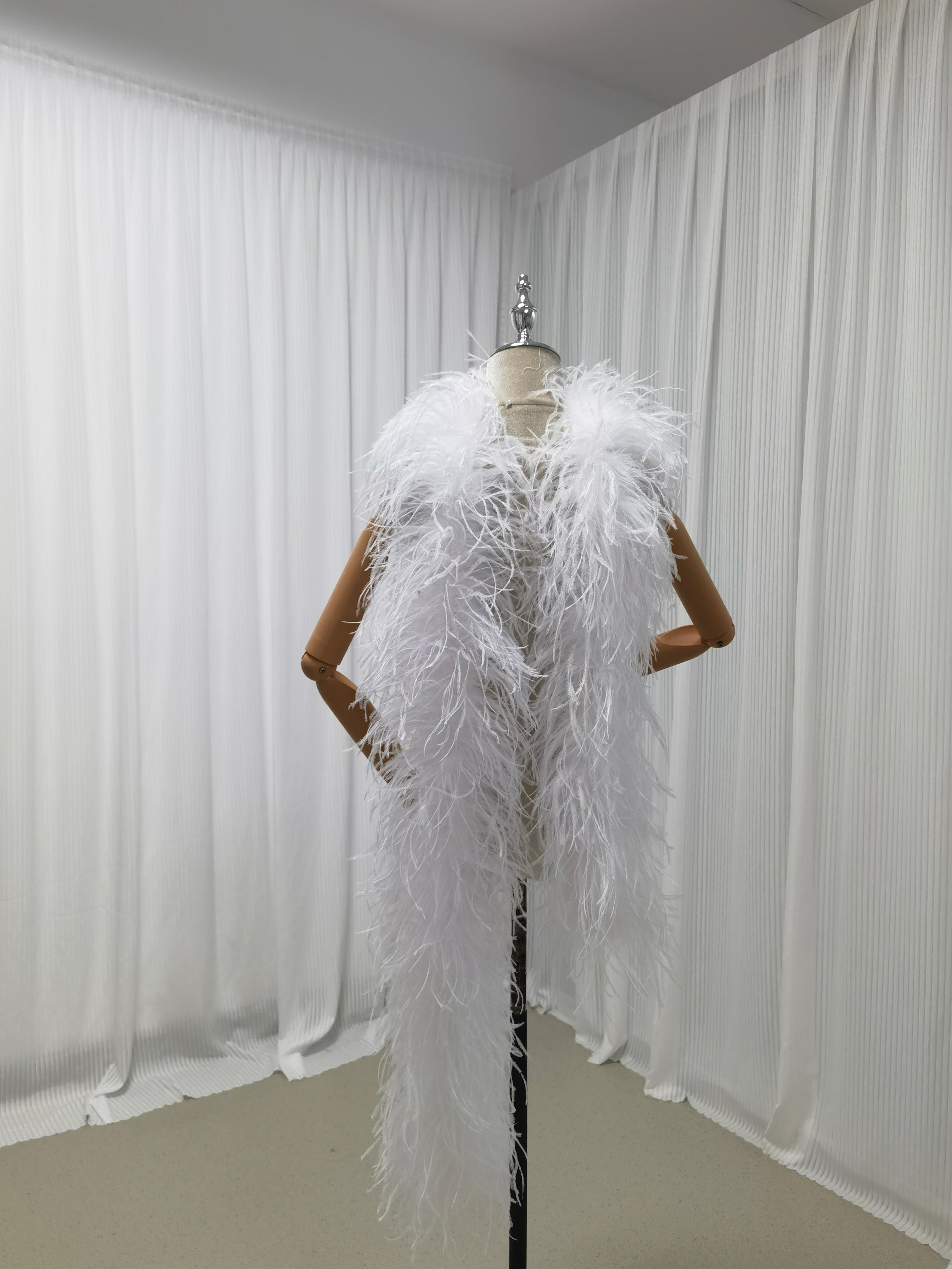本物のオーストリッチフェザーストール ケープ スカーフ ウエディングドレスアレンジ マフラー SIZE 190*20cm