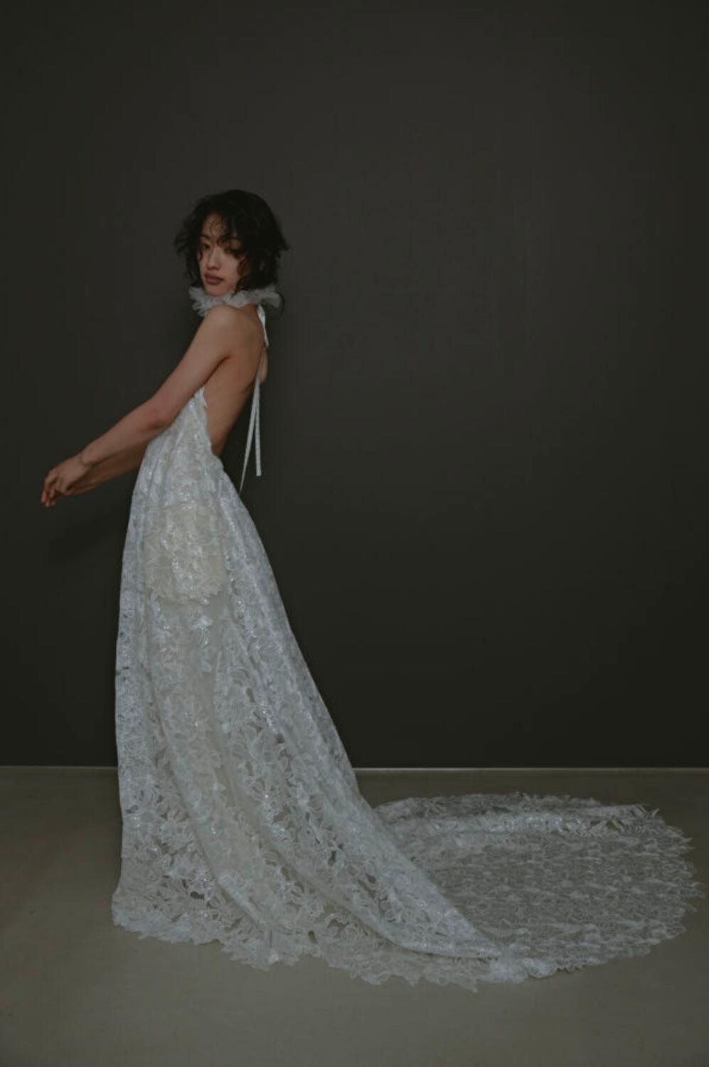 送料無料!ウエディングドレス ホルターネック ノースリーブ キラキラレース スパンコール 憧れのドレス カジュアル クラシカル ハンドメイド オーダードレス パーティードレス 花嫁/前撮り/結婚式/披露宴
