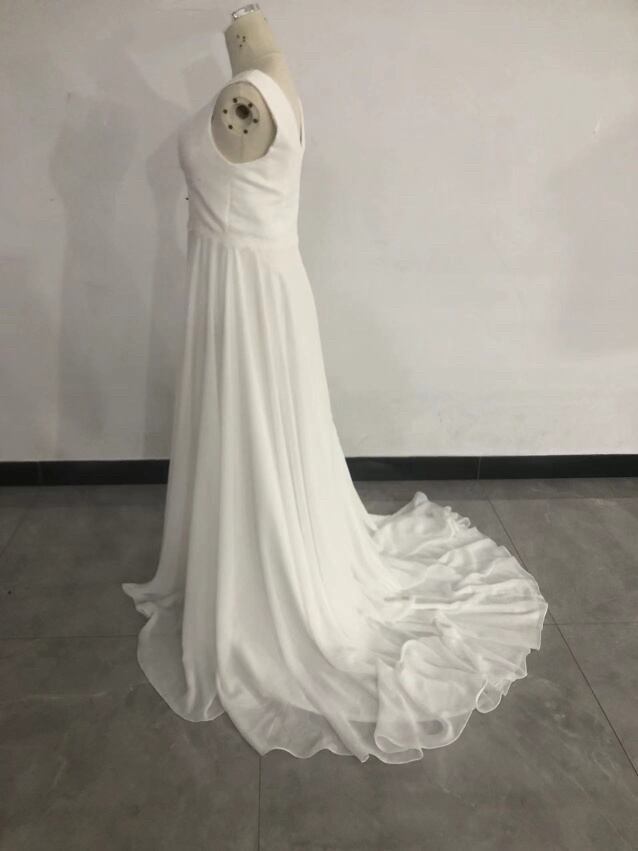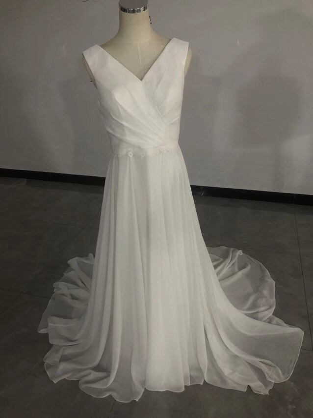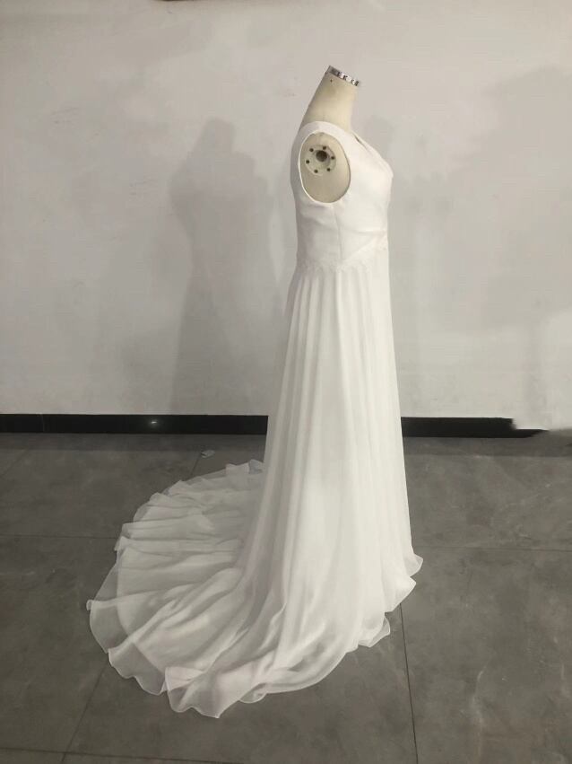 高品質!Vネック オフホワイト ふんわりシフォン カラードレス 編み上げ 華やかなトレーン プリンセス /結婚式披露