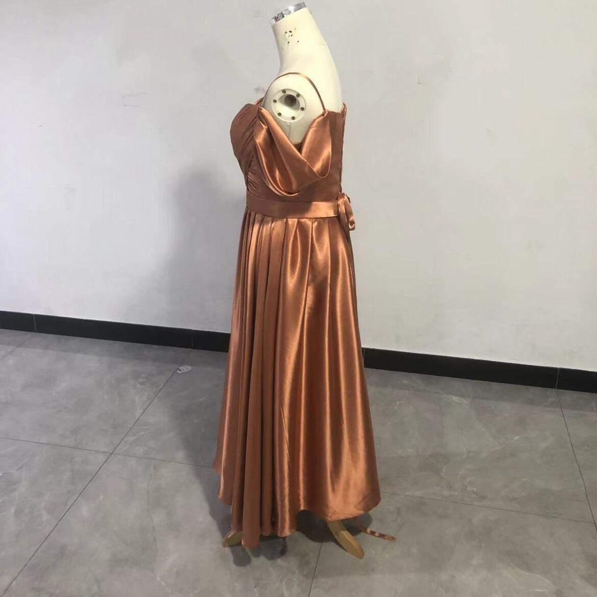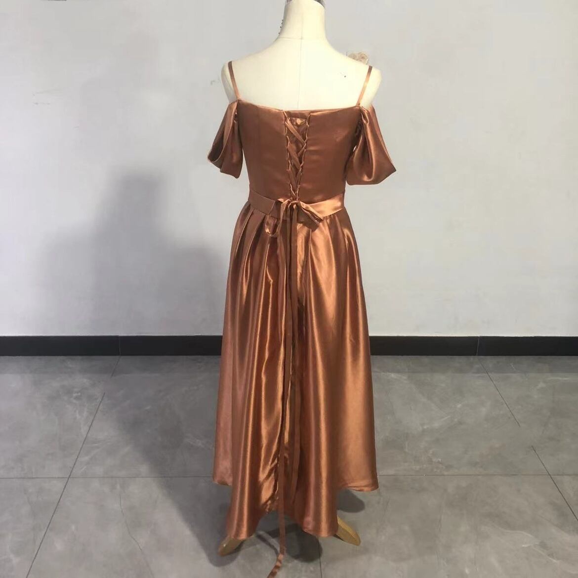 高品質!キャミソール オフショルダー パーティードレス テラコッタ色 二次会/結婚式披露
