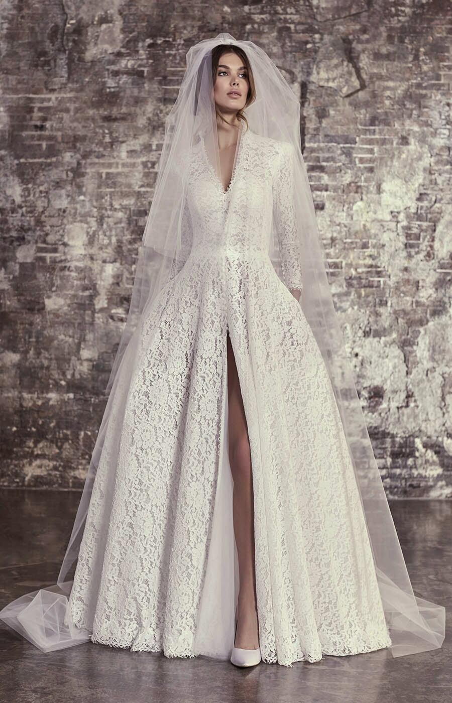 送料無料!ウエディングドレス vネック 七分袖丈 総レース 姫様 フロントスリット Aライン オーダードレス 憧れのドレス クラシカル パーティードレス ハンドメイド 花嫁/前撮り/結婚式/披露宴 | David1021k Dress(ダヴィドレス)