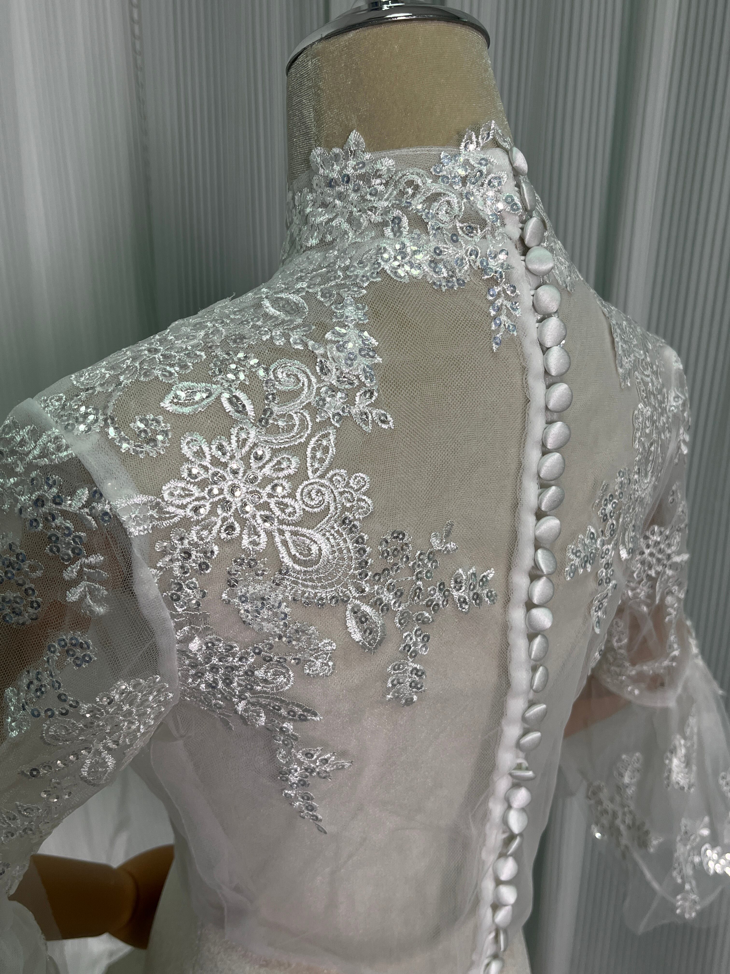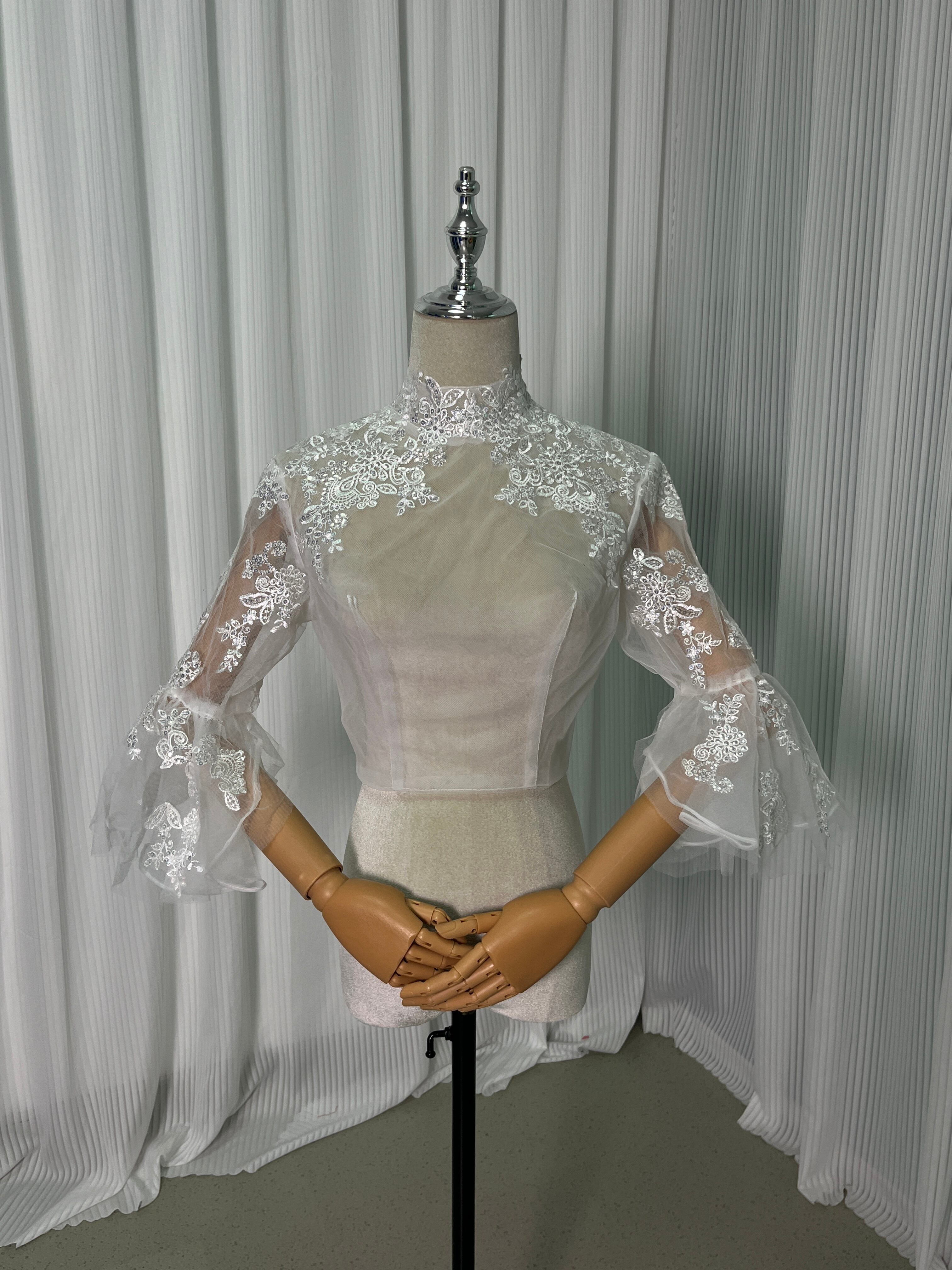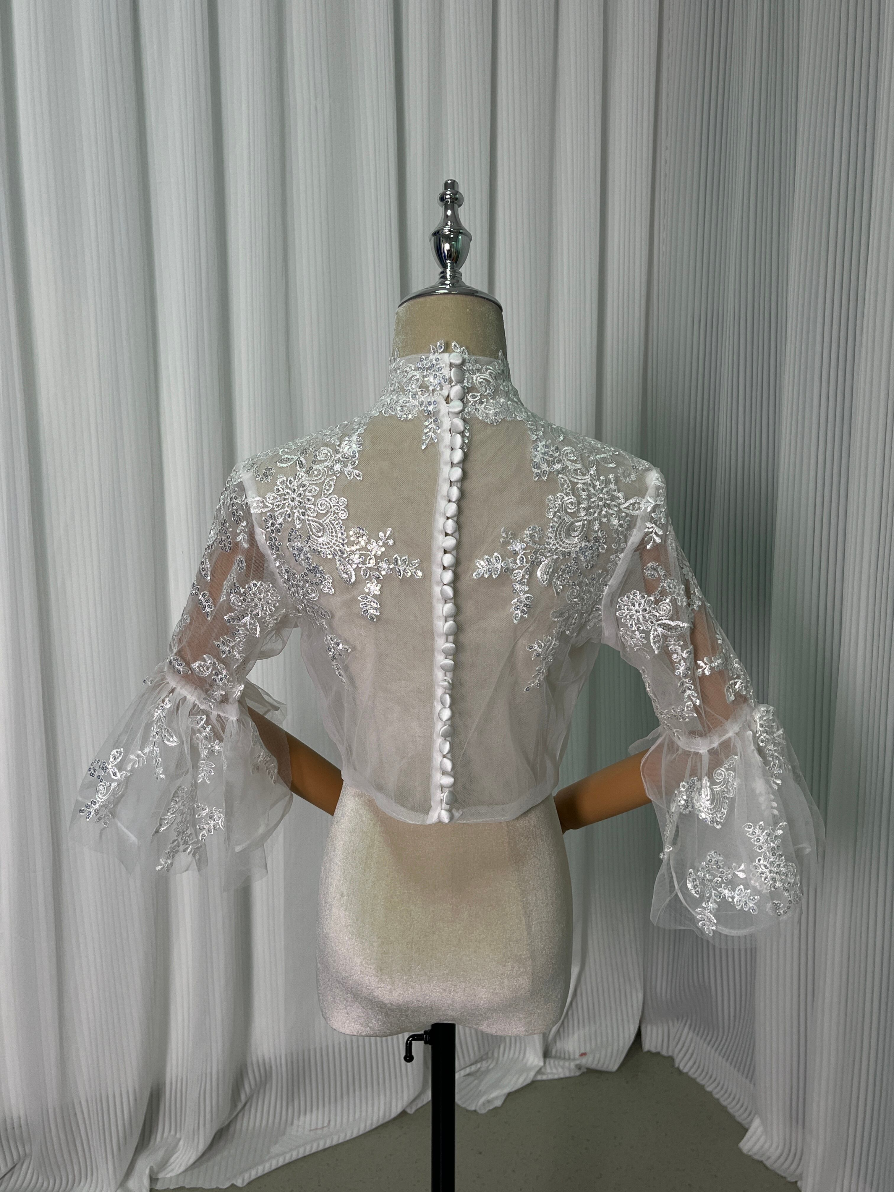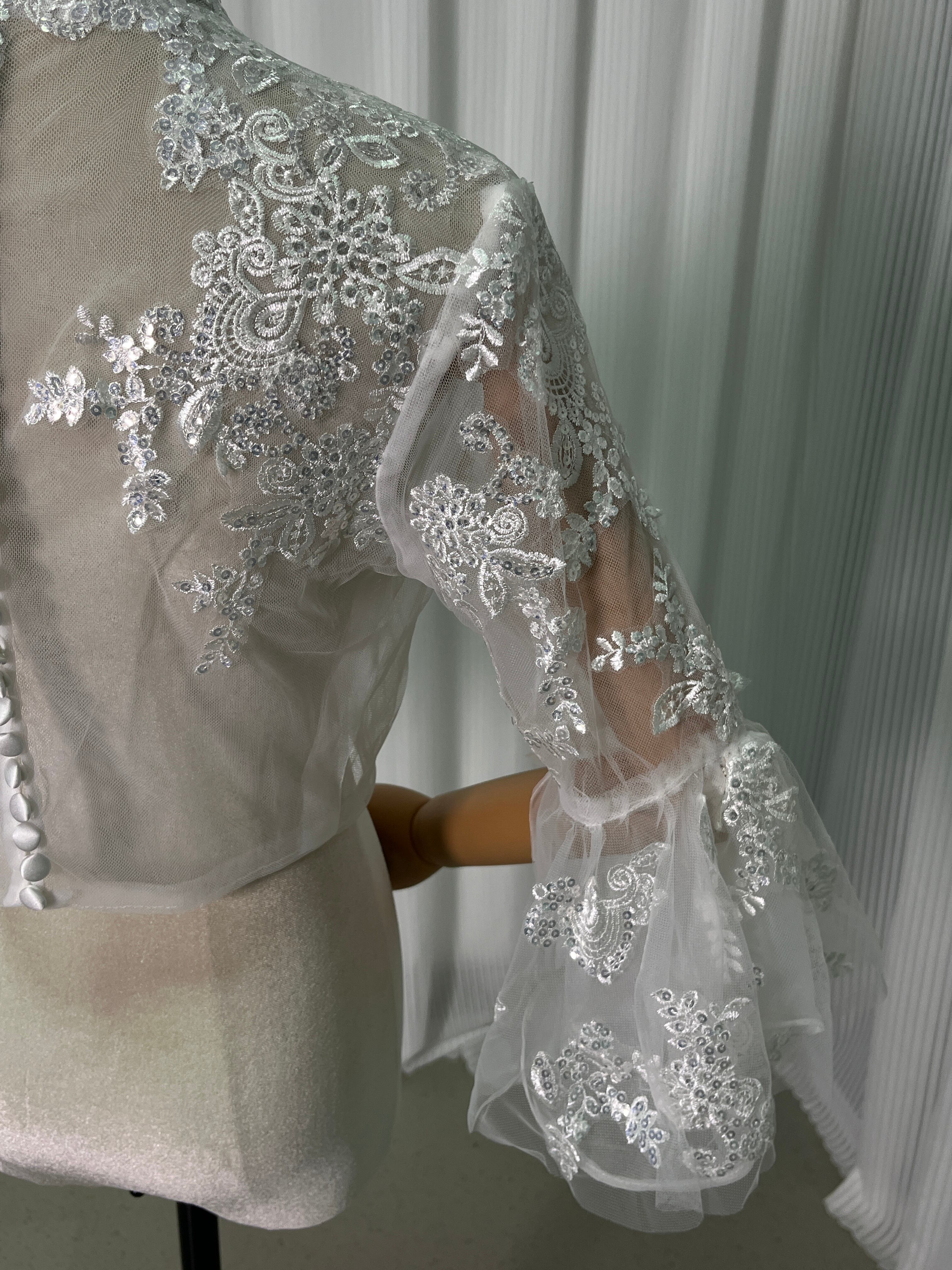 クルーネックボレロ3D立体レース刺繍 キラキラスパンコール トップス インナーブラウスラッパ袖 披露宴/演奏会/音楽会