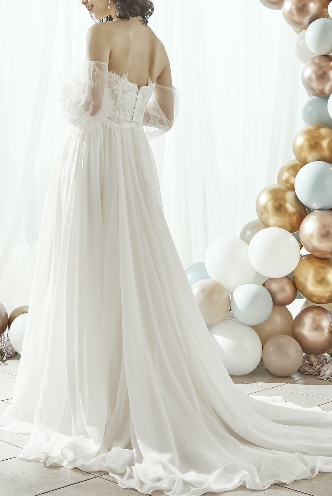 高品質!送料無料!ウエディングドレス ツーピース 大きいサイズ/妊婦 マタニティ シンプル 取り外し袖 カジュアル 上品レース 可憐な花刺繍 トレーン オーダードレス ハンドメイド パーティードレス 花嫁/挙式/前撮り/結婚式/披露宴 | David1021k Dress(ダヴィドレス)