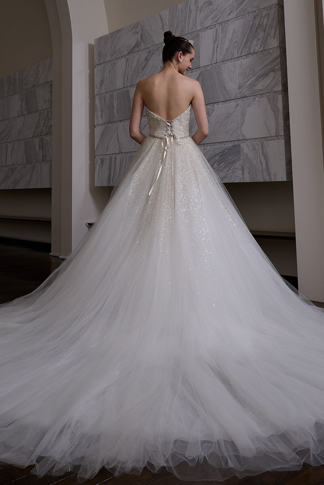 高品質!送料無料!ウエディングドレス キラキラチュール ベアトップ ソフトチュール スパンコール トレーン オーダードレス ハンドメイド 花嫁/挙式/前撮り/結婚式/披露宴