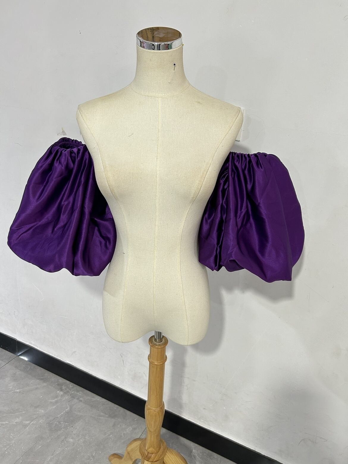 高級サテン 紫 取り外し袖 ショルダーの付け袖 パフスリーブ オーダー可能 二の腕を隠せるお袖