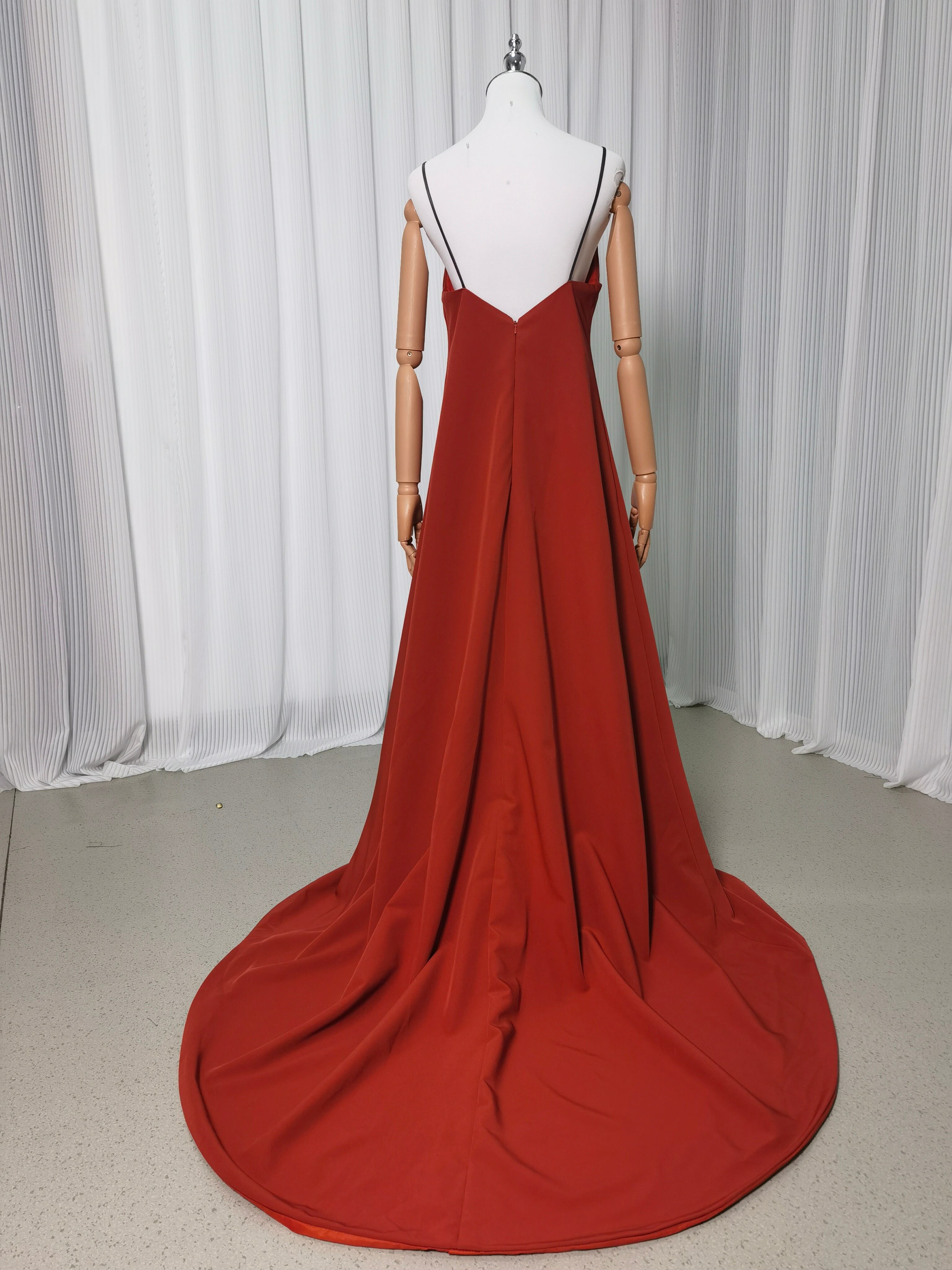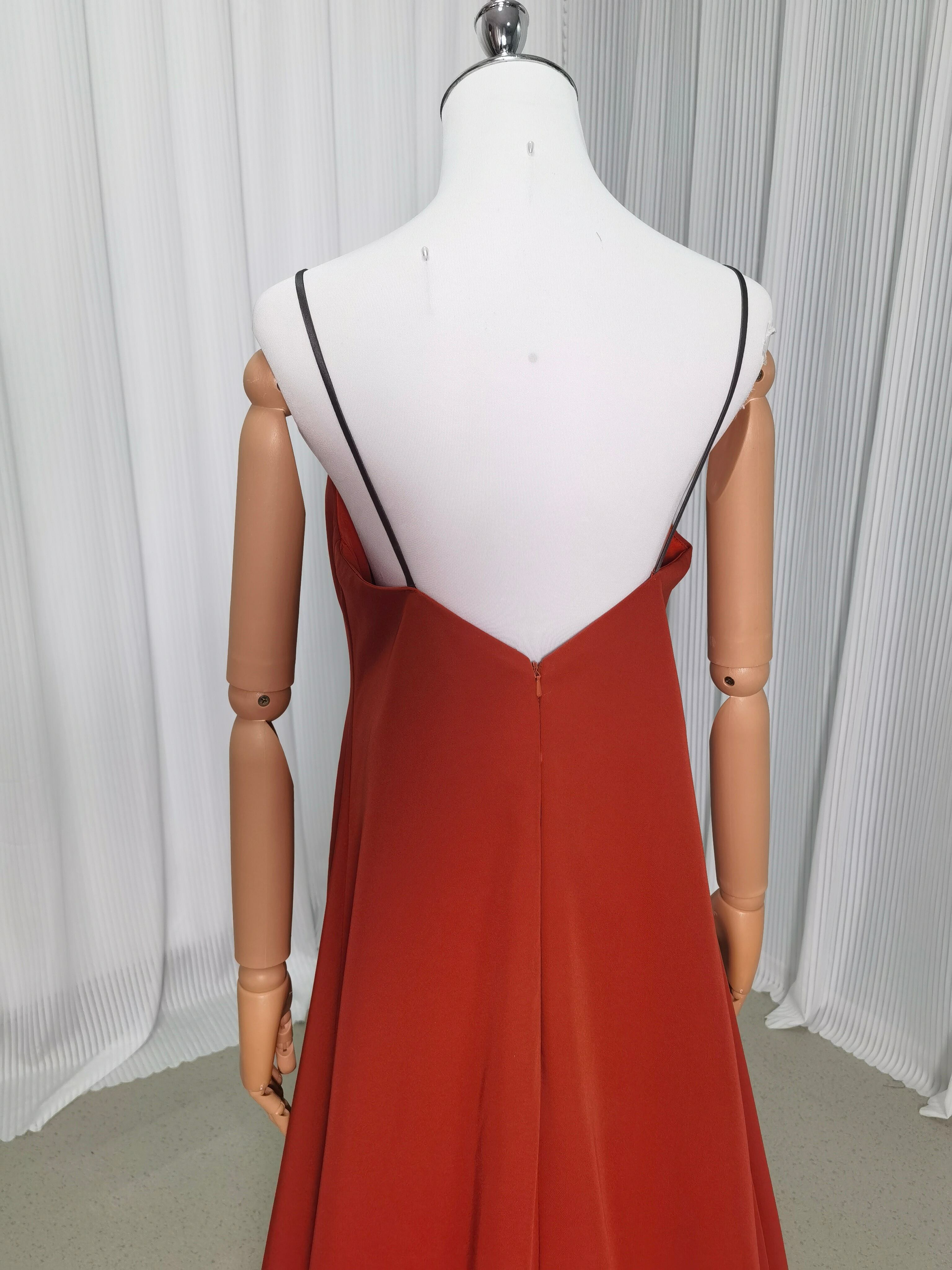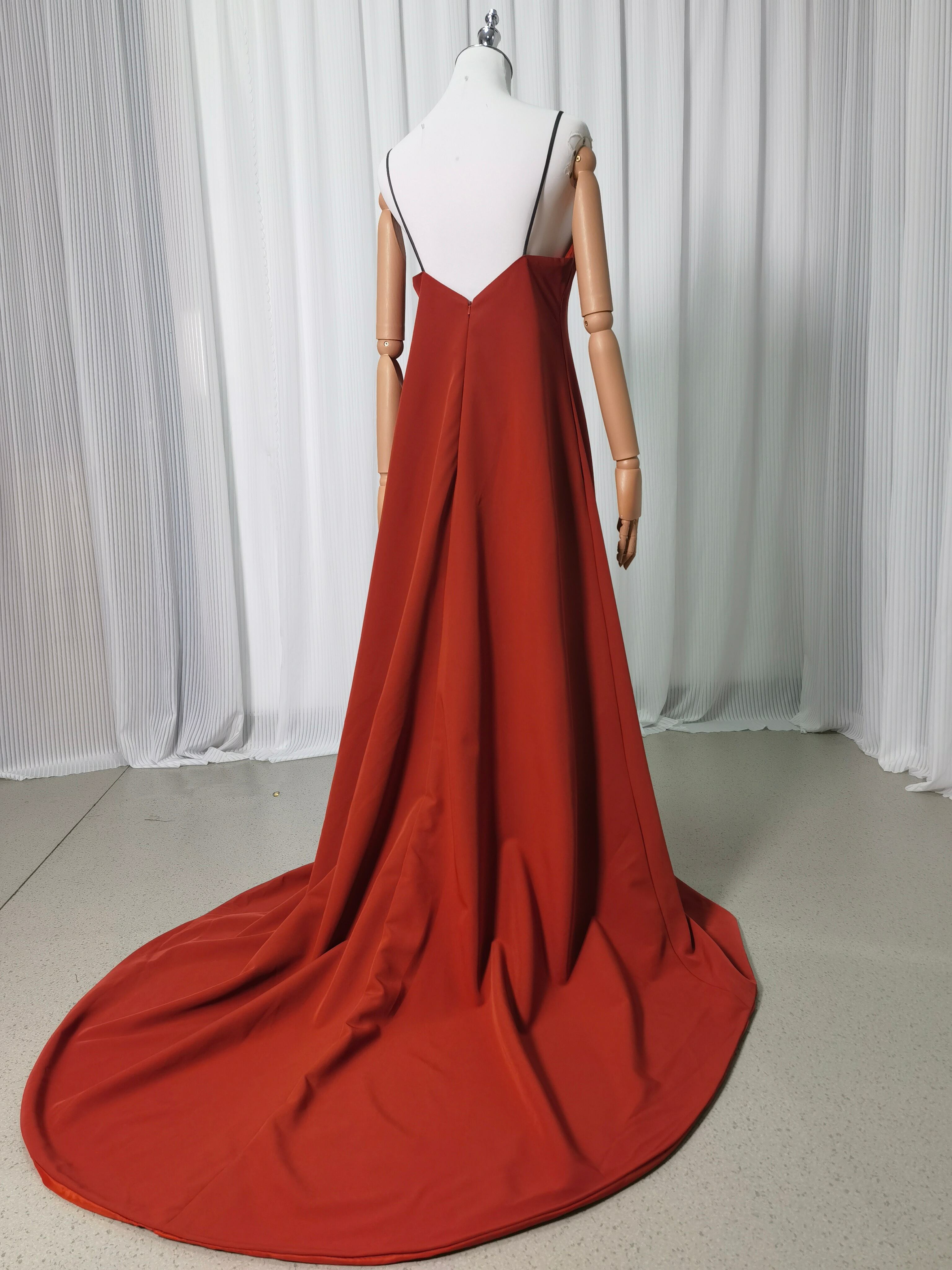 送料無料!テラコッタ色 キャミソール カラードレス クレープ生地 ソフトチュール 二次会/挙式/前撮り/結婚式