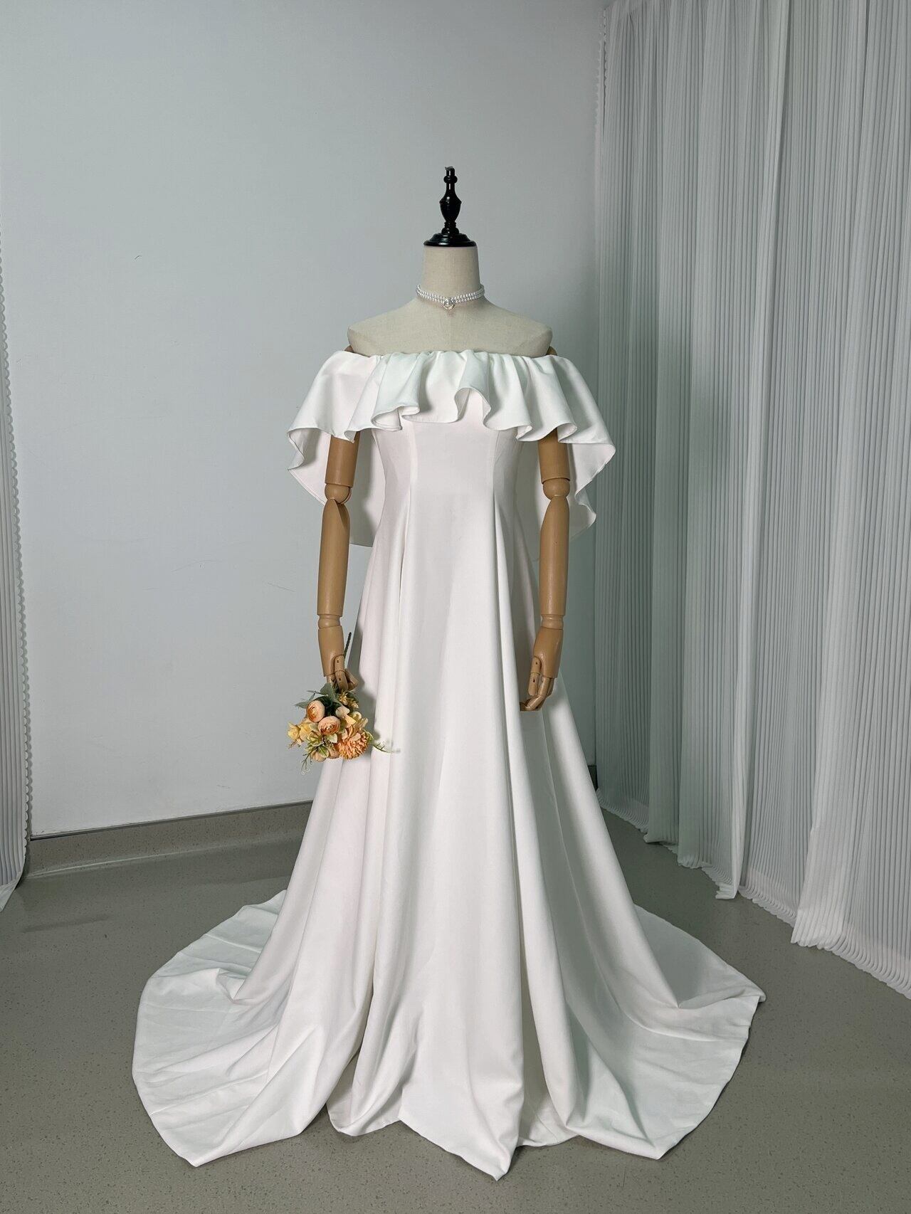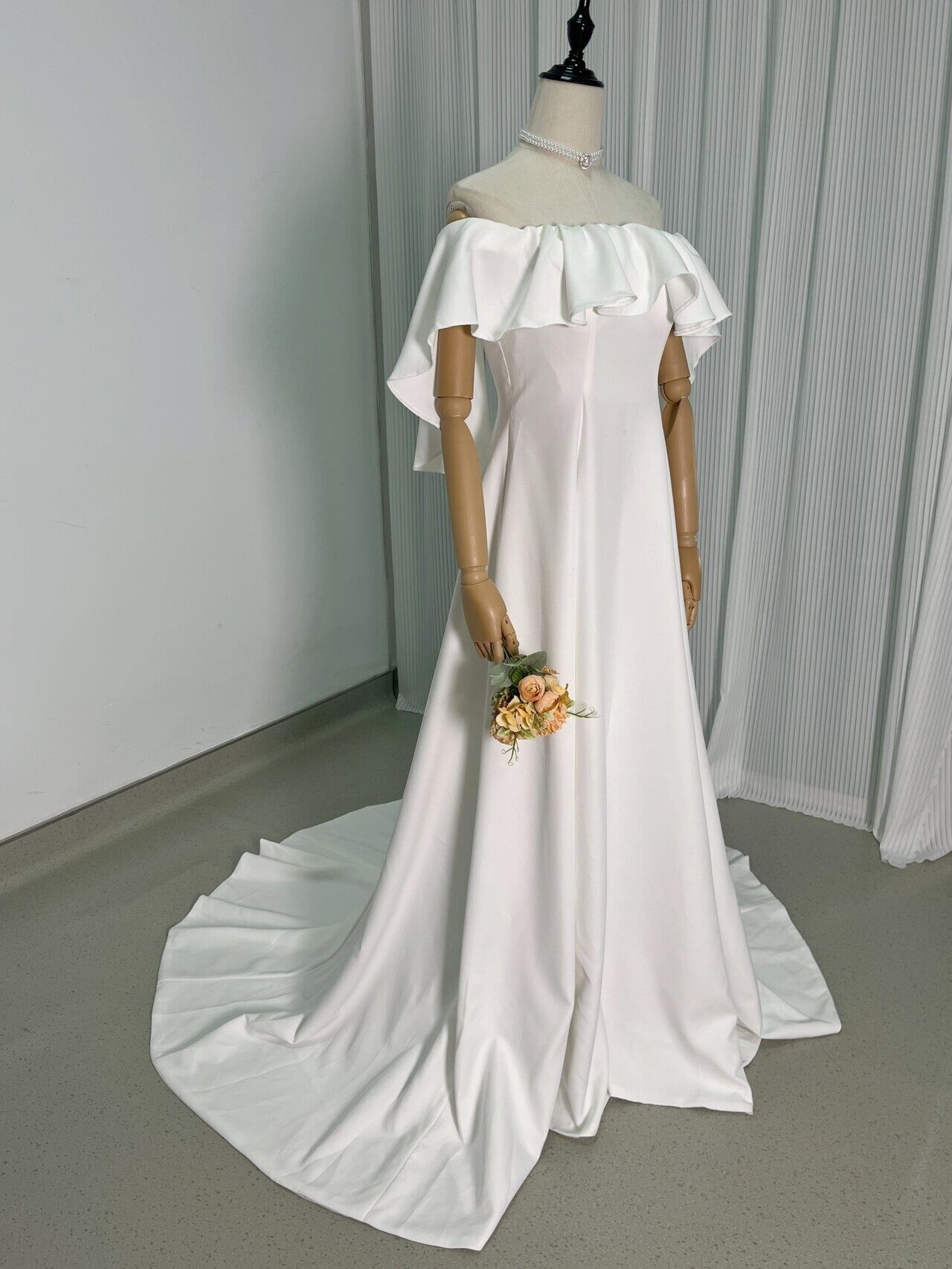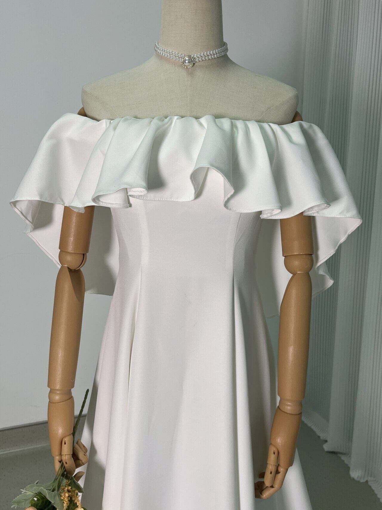 実例写真!送料無料!オフショルダー ウエディングドレス 優雅なシ 花嫁 結婚式/前撮り/二次会 イブニン