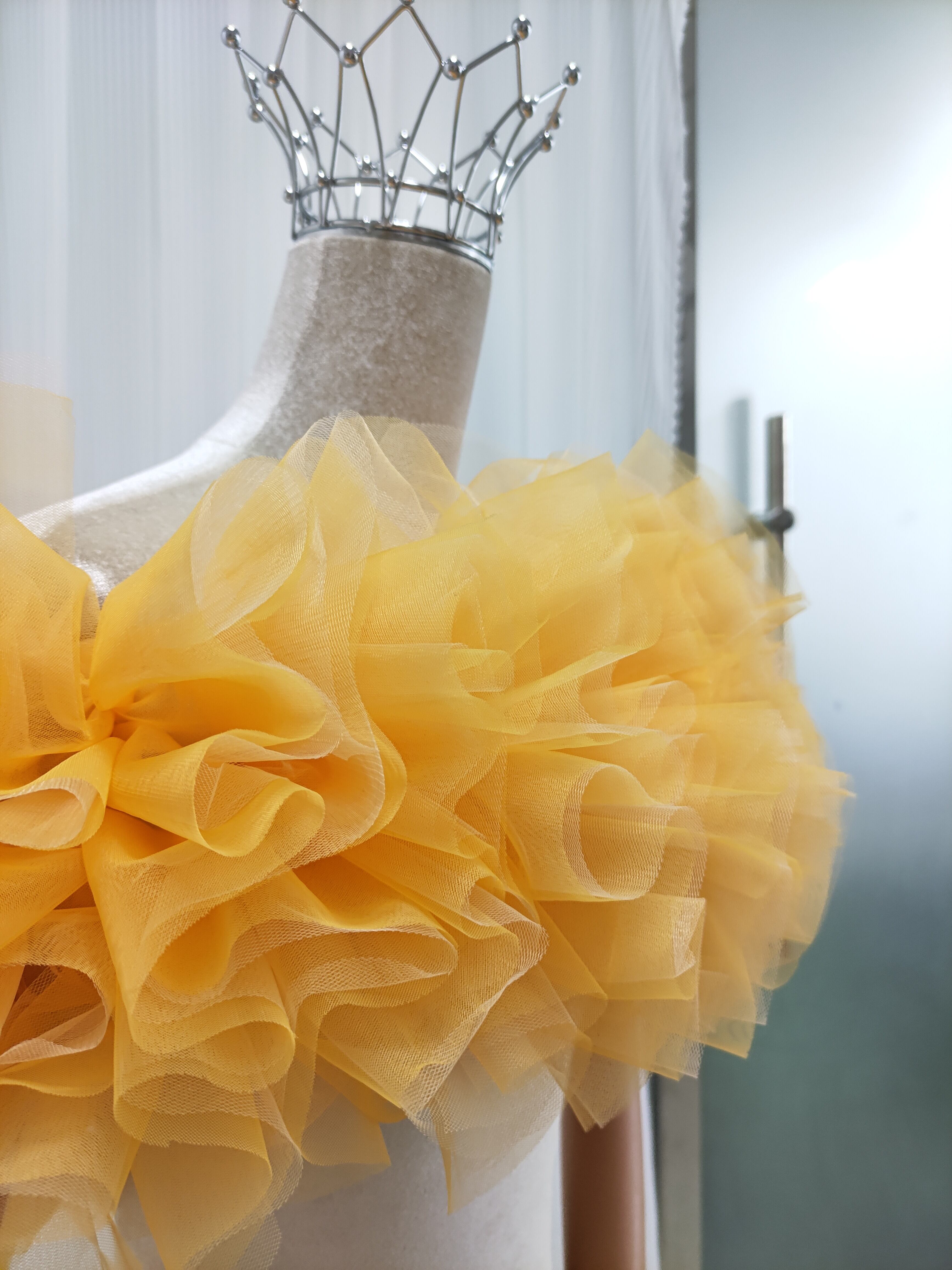 イエロー ウエディングドレス オフショルダー カラードレス サイズ調整可能 ドレスアレンジ お色直し