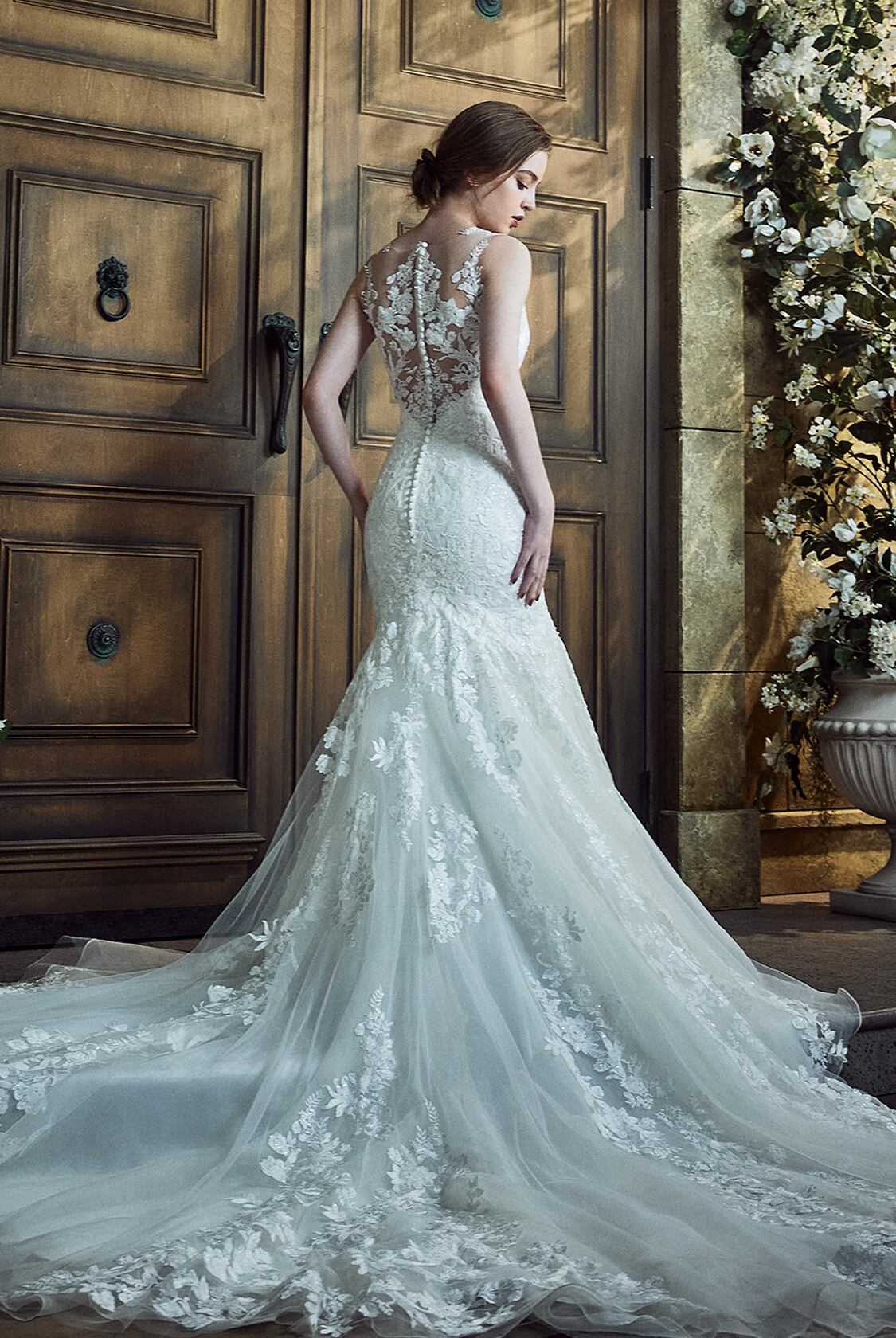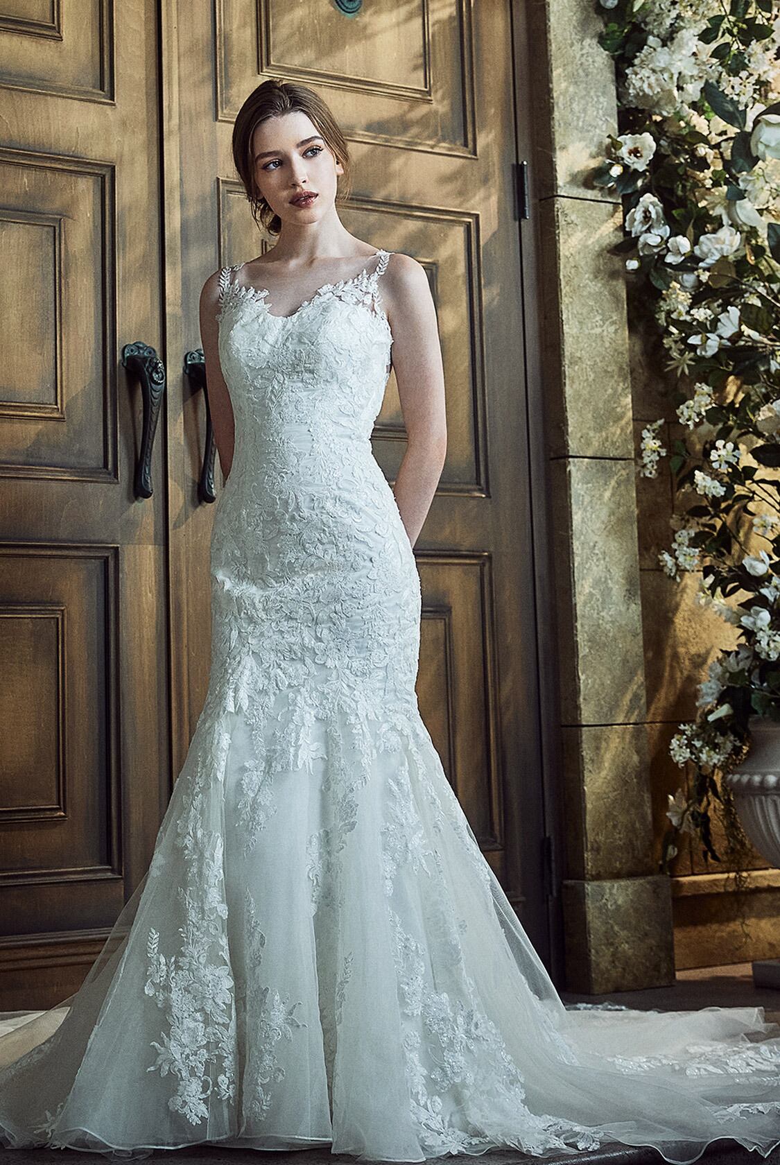 高品質!送料無料!ウエディングドレス マーメイドライン ソフトチュール ノースリーブ 総レース 花柄のモチーフ刺繍が美しく 華やかなトレーン オーダードレス ハンドメイド 花嫁/挙式/前撮り/結婚式/披露宴