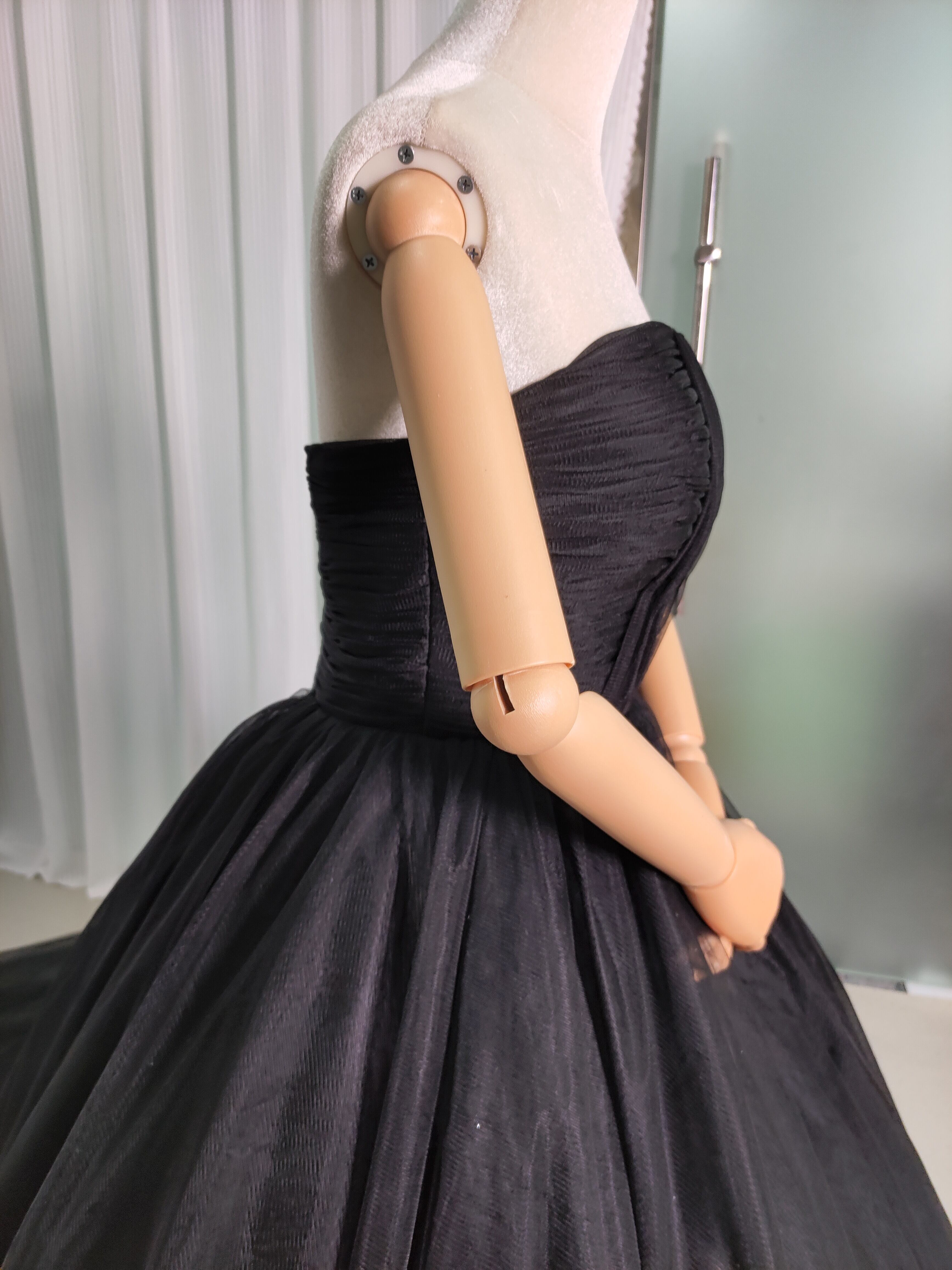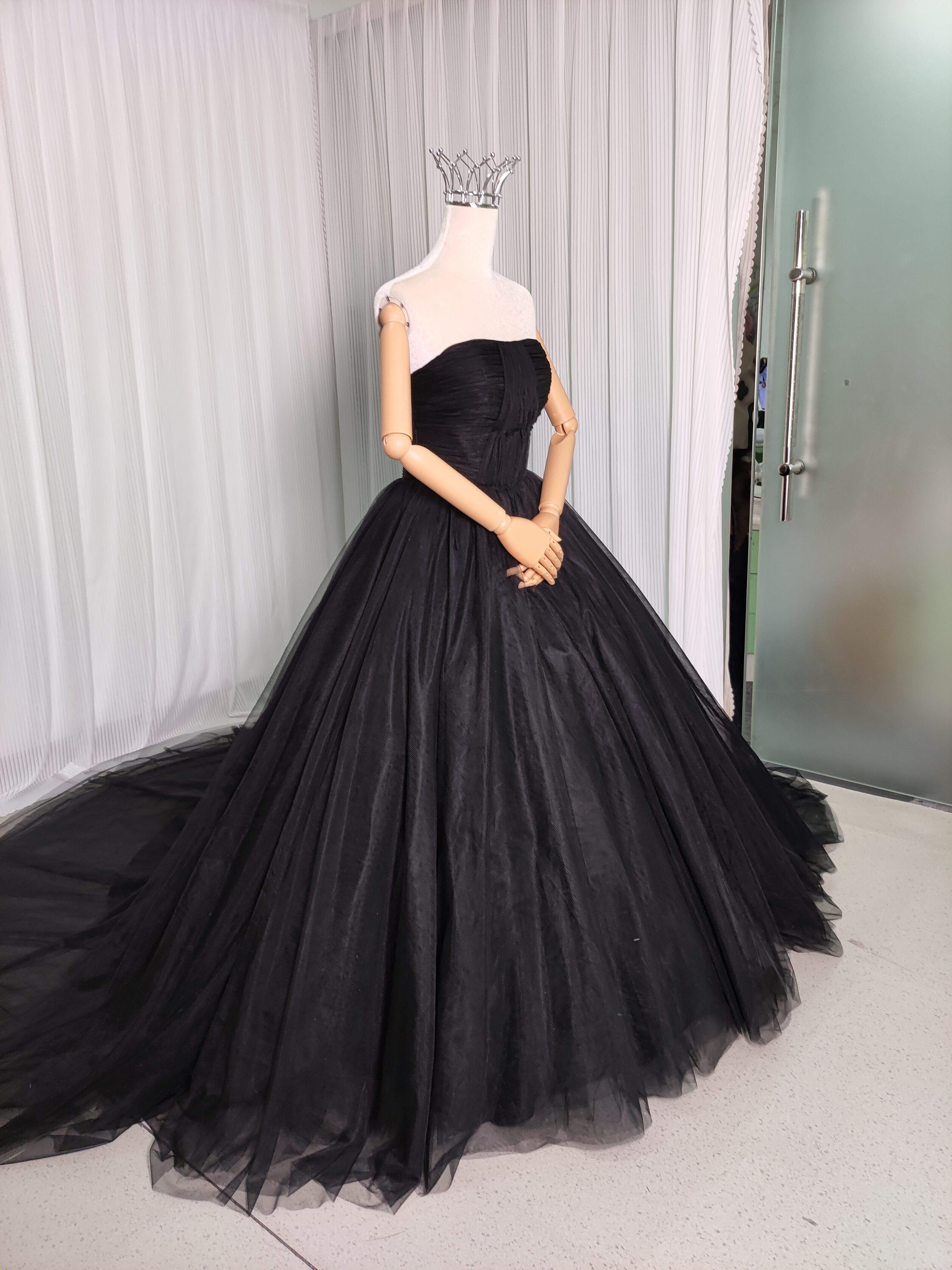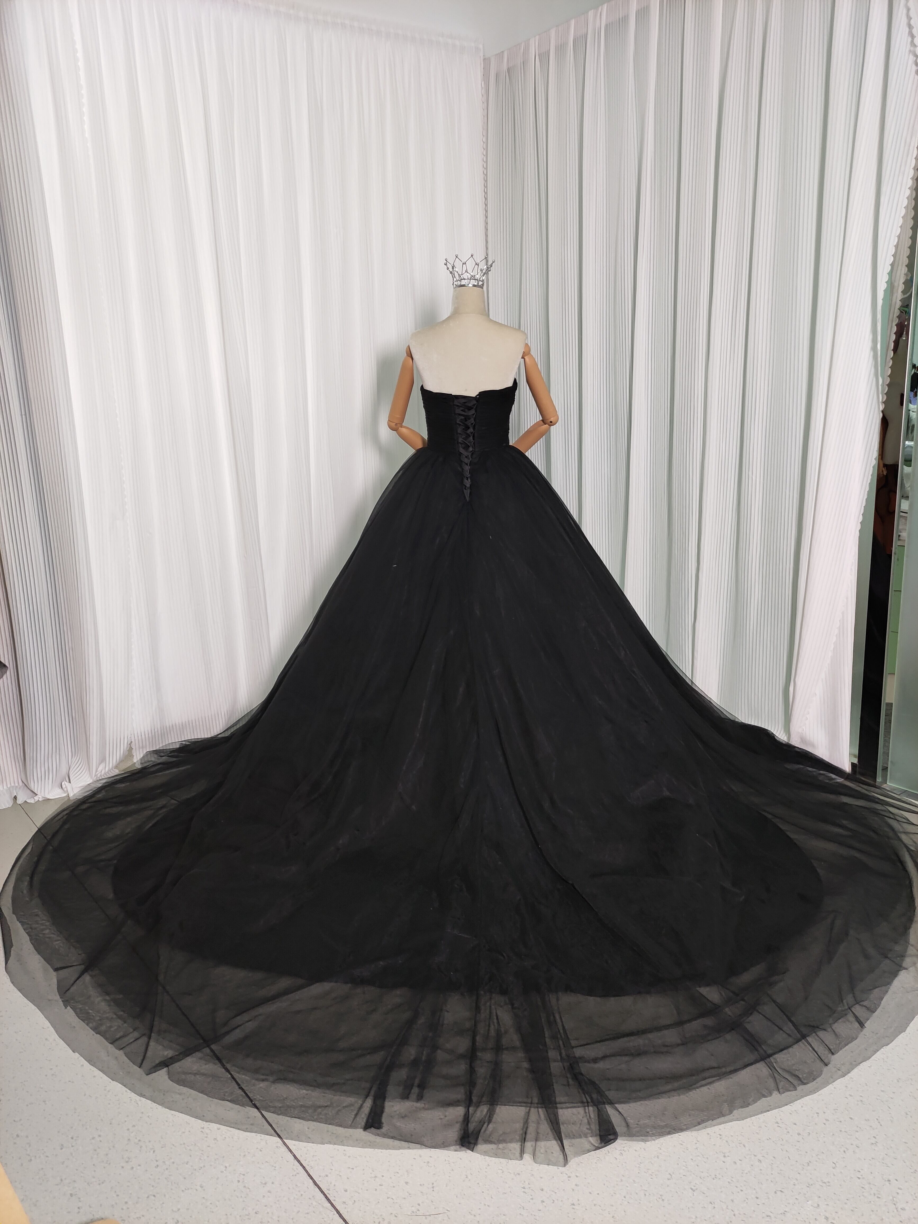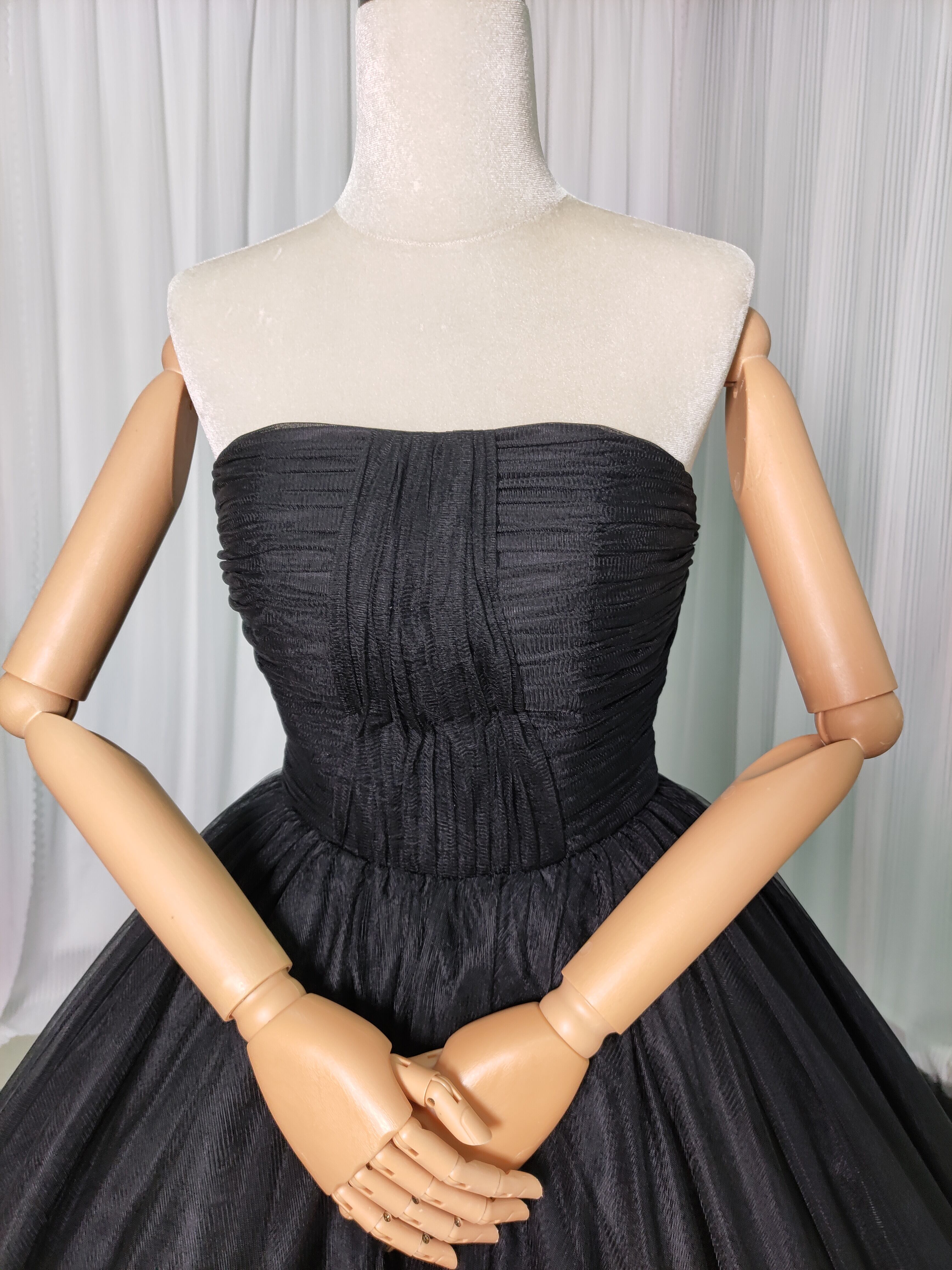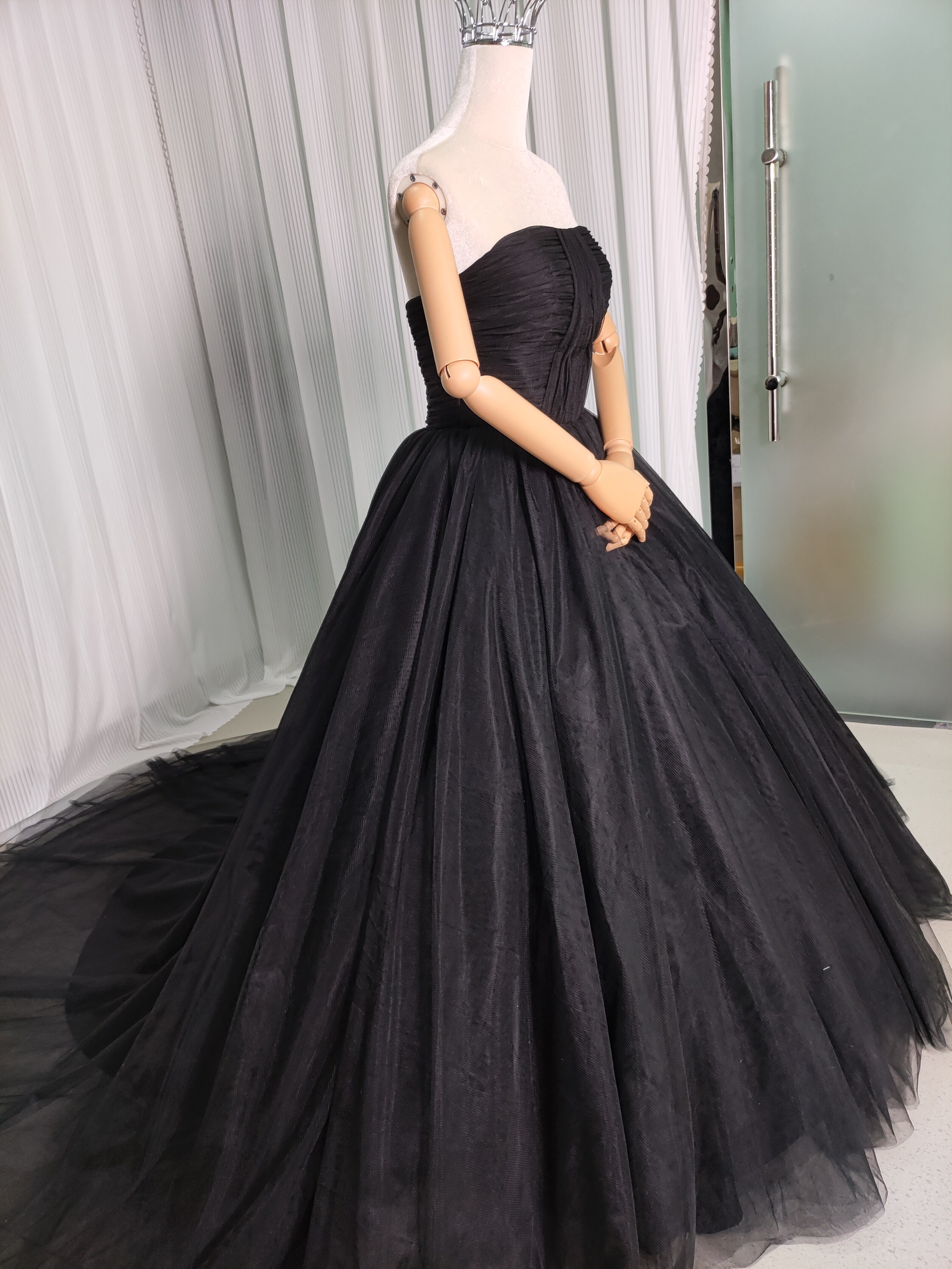 送料無料!ベアトップ カラードレス 黒 華やかなトレーン 結婚式/披露宴