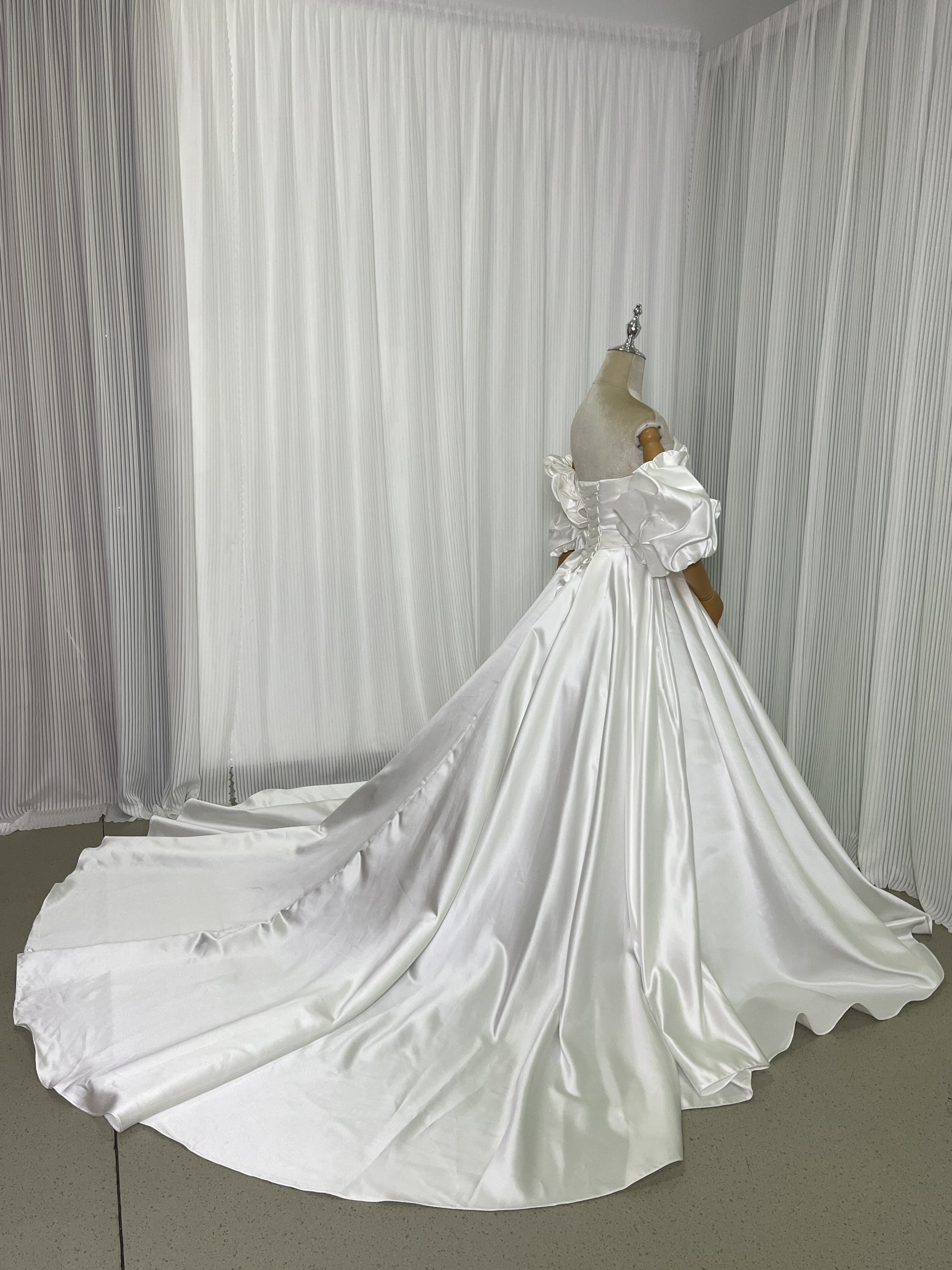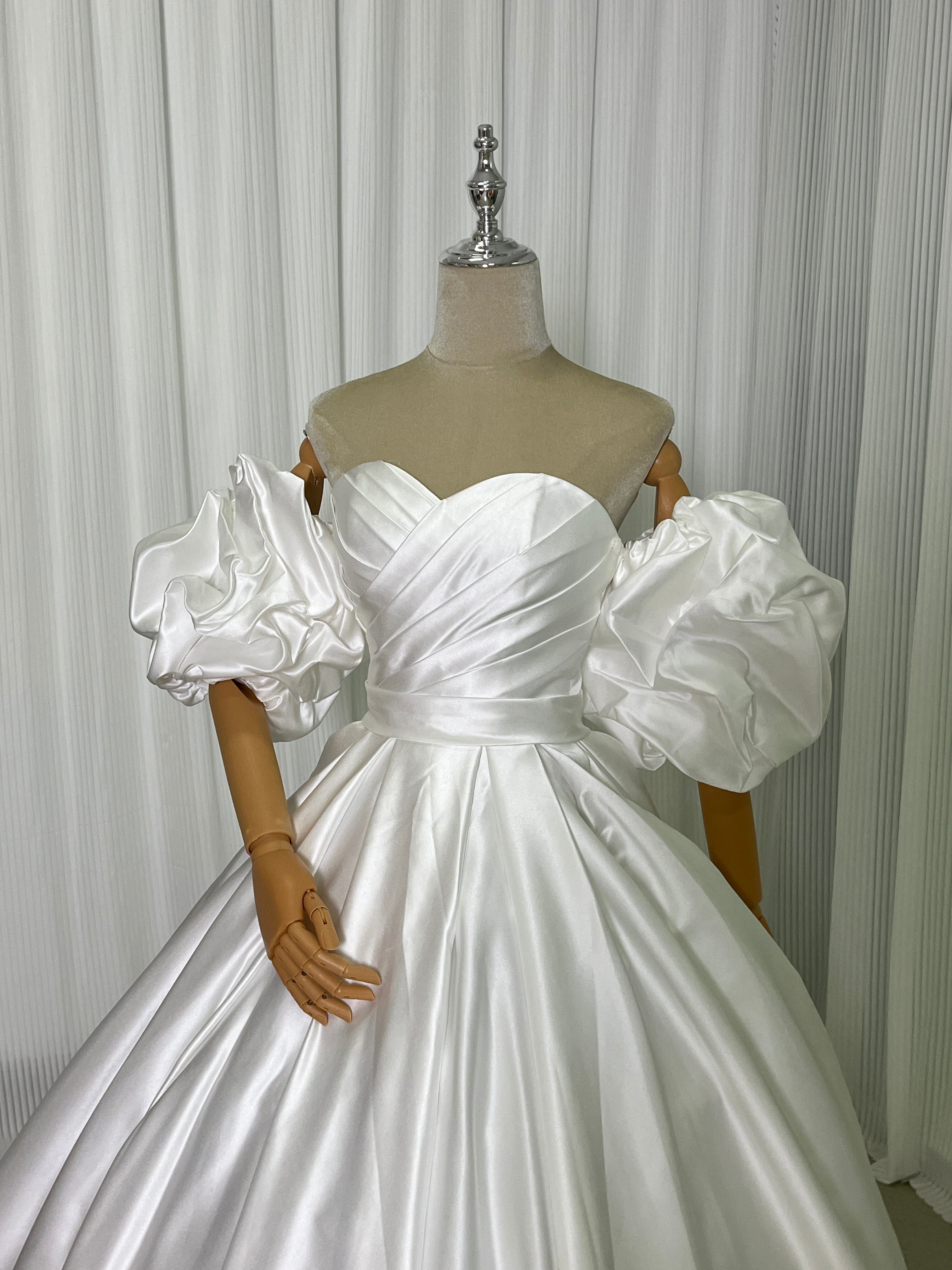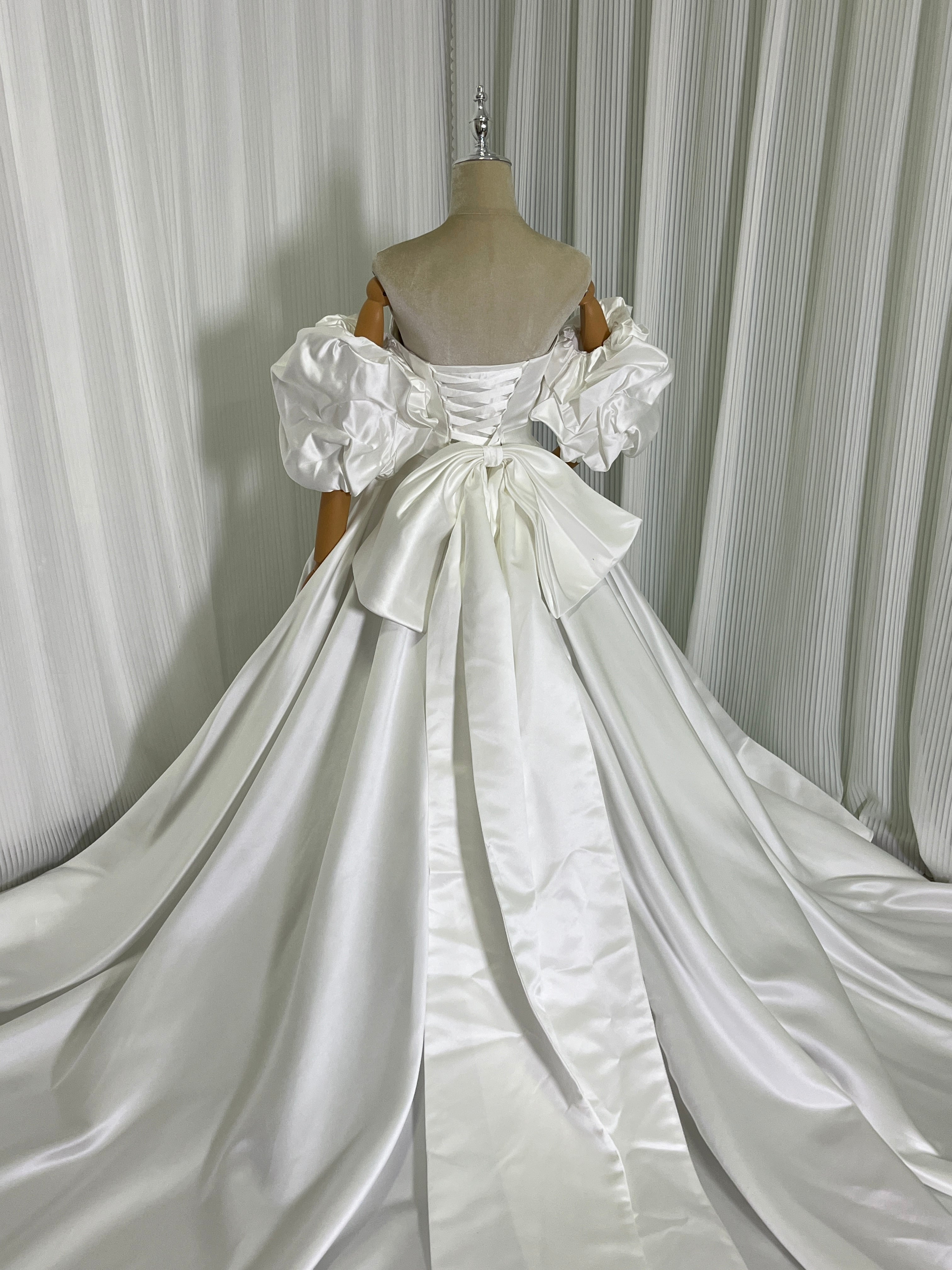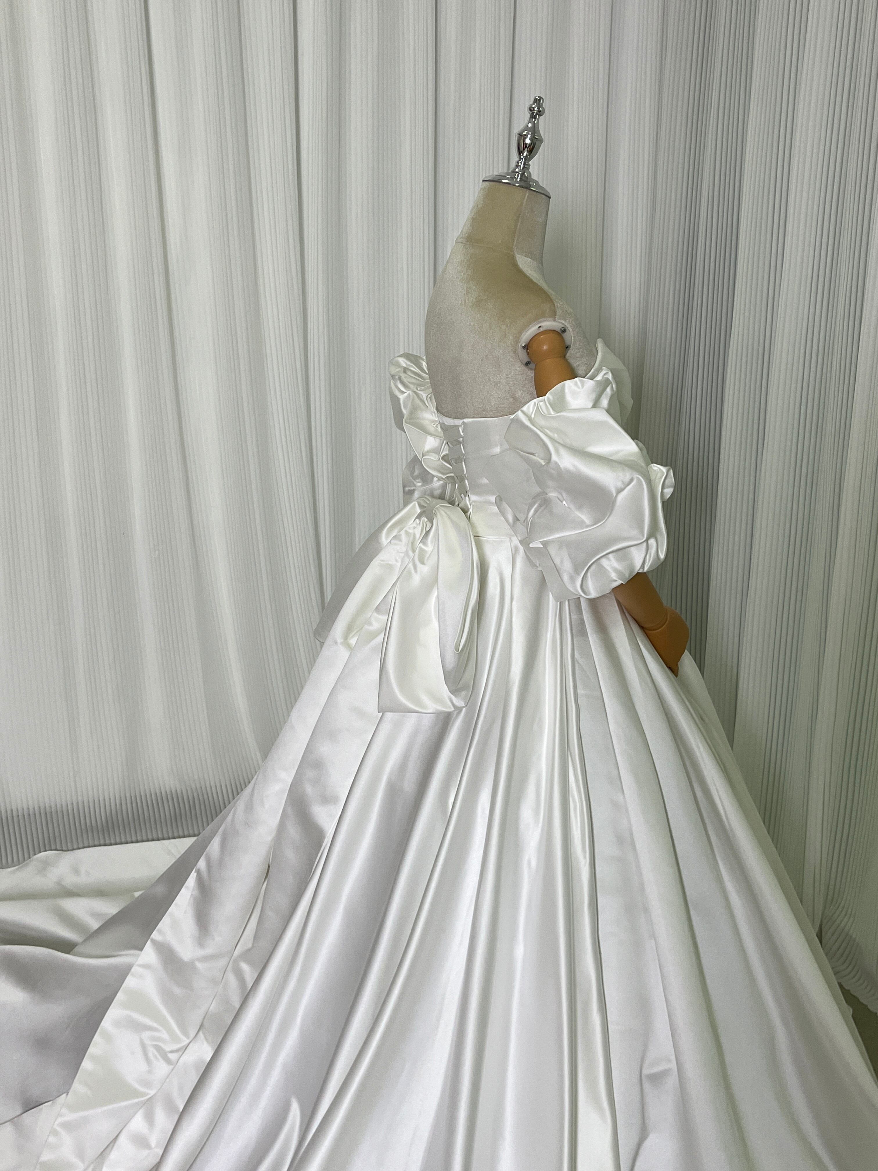 送料無料!ホワイト ウエディングドレス 取り外し袖 華やかなトレー/結婚式