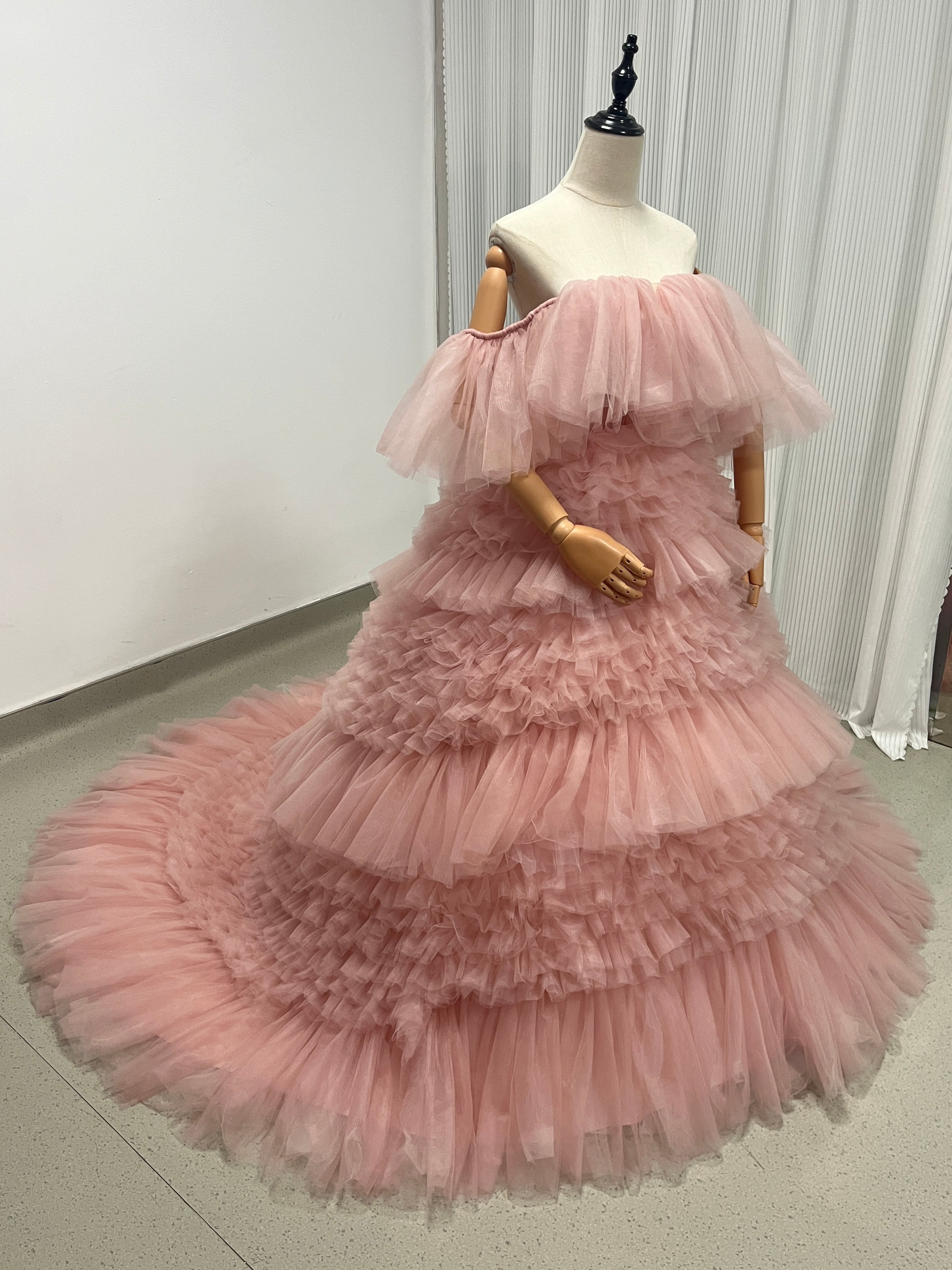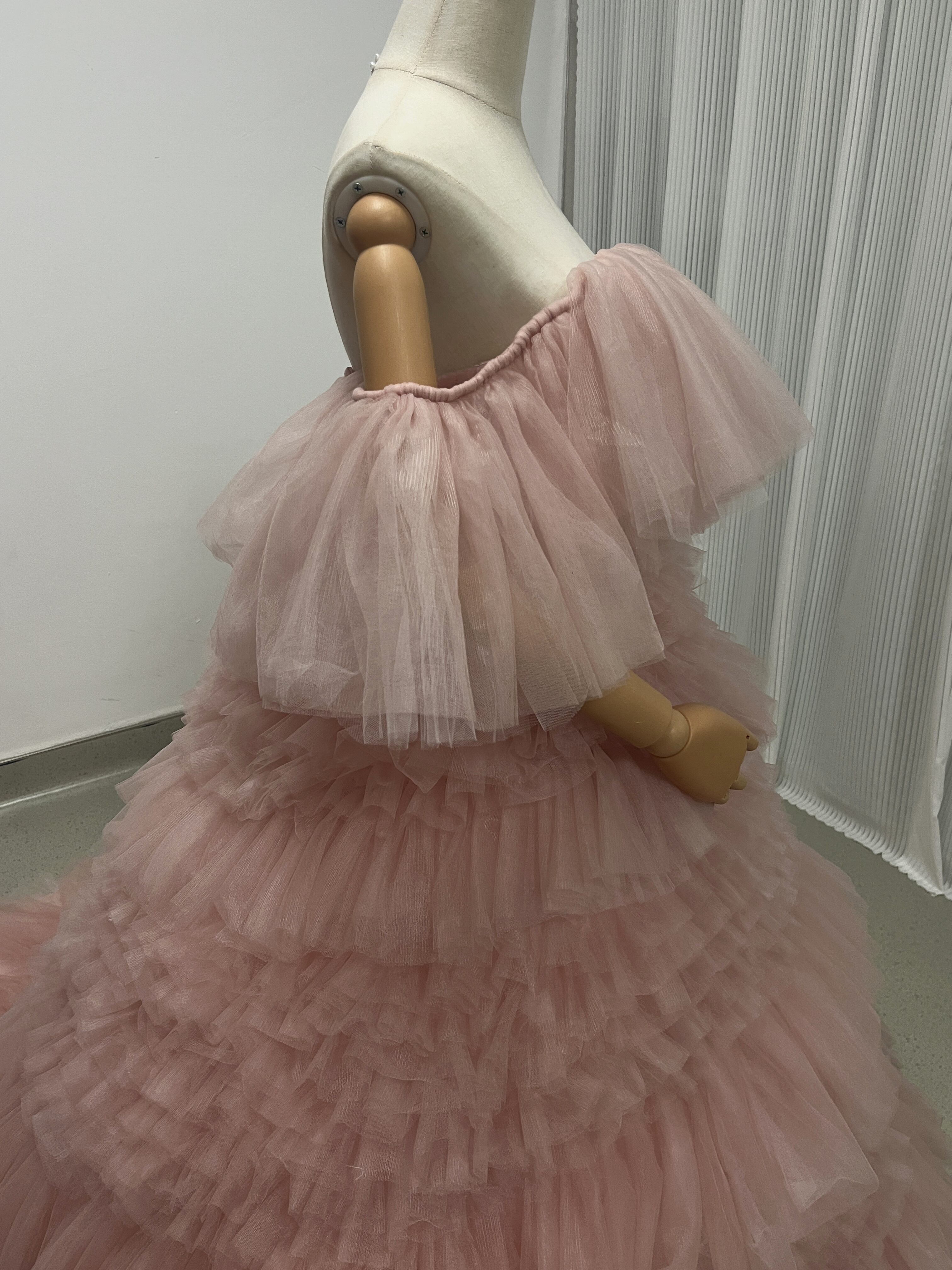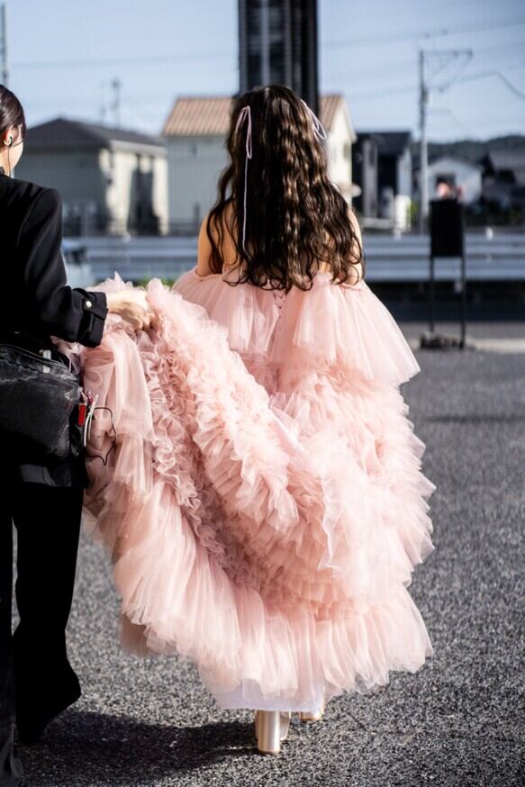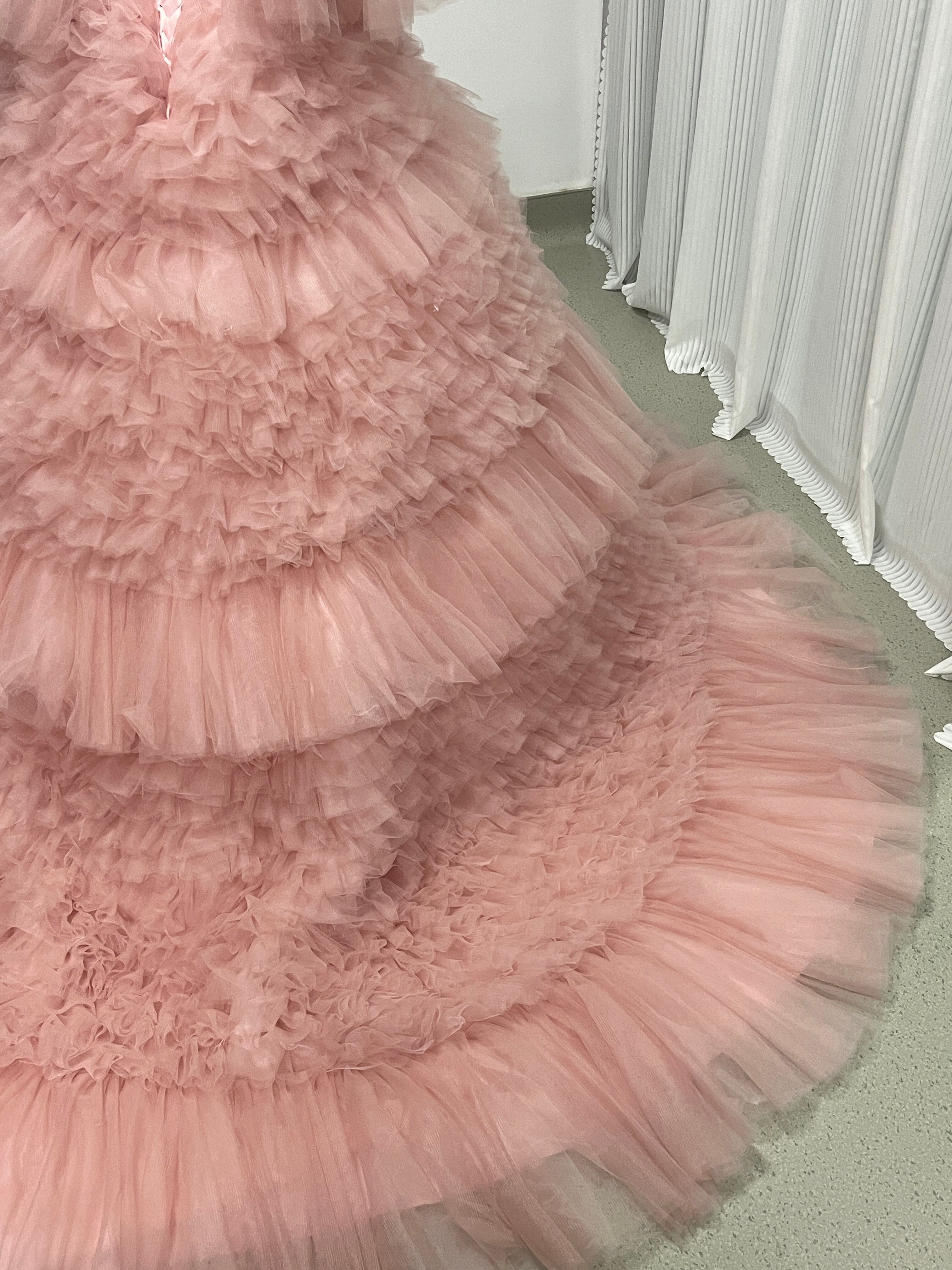 実例写真!カラードレス ソフトチュール もこもこドレス ピンク 素チュール/二次会/挙式/前撮り/結婚式