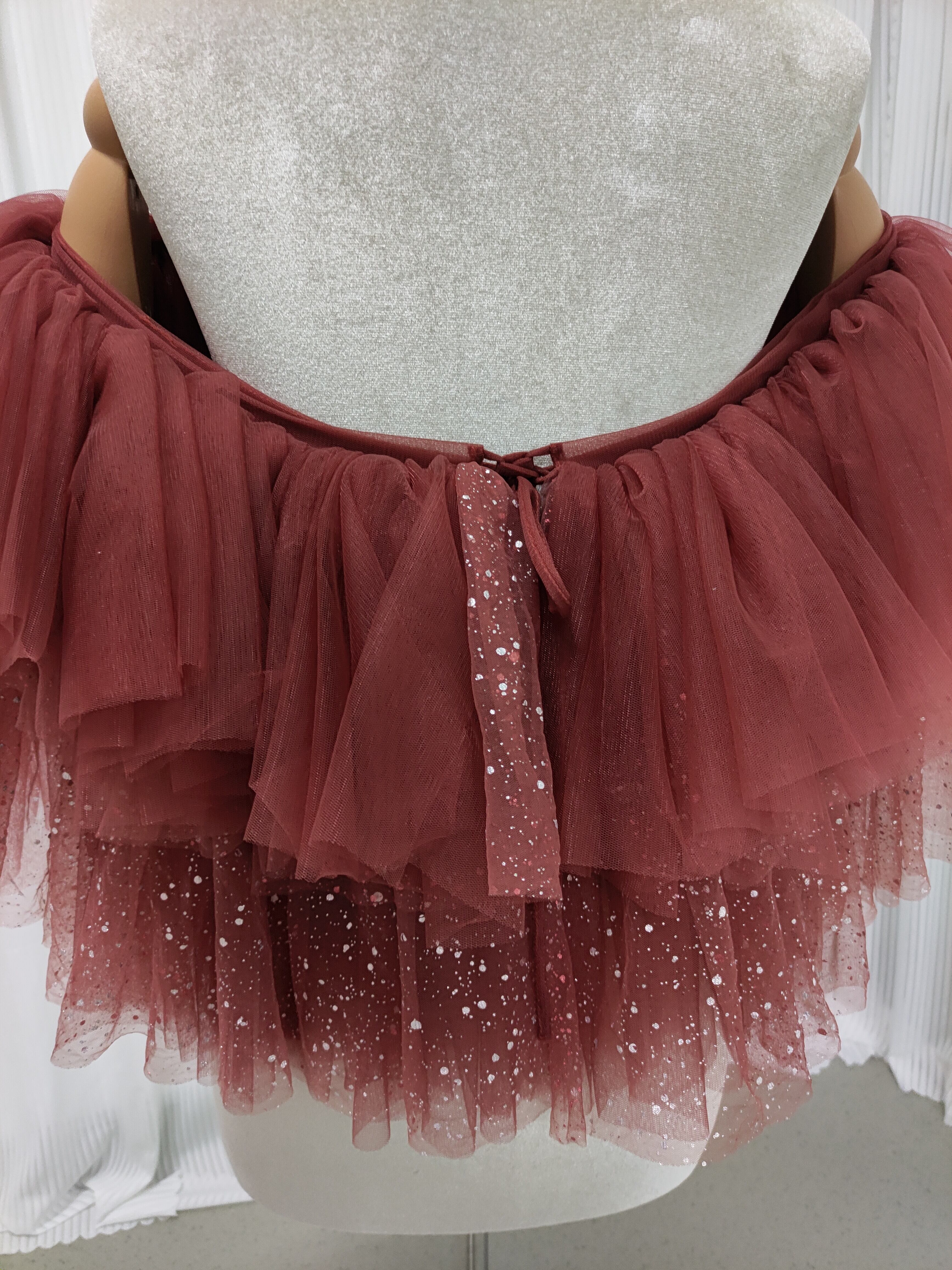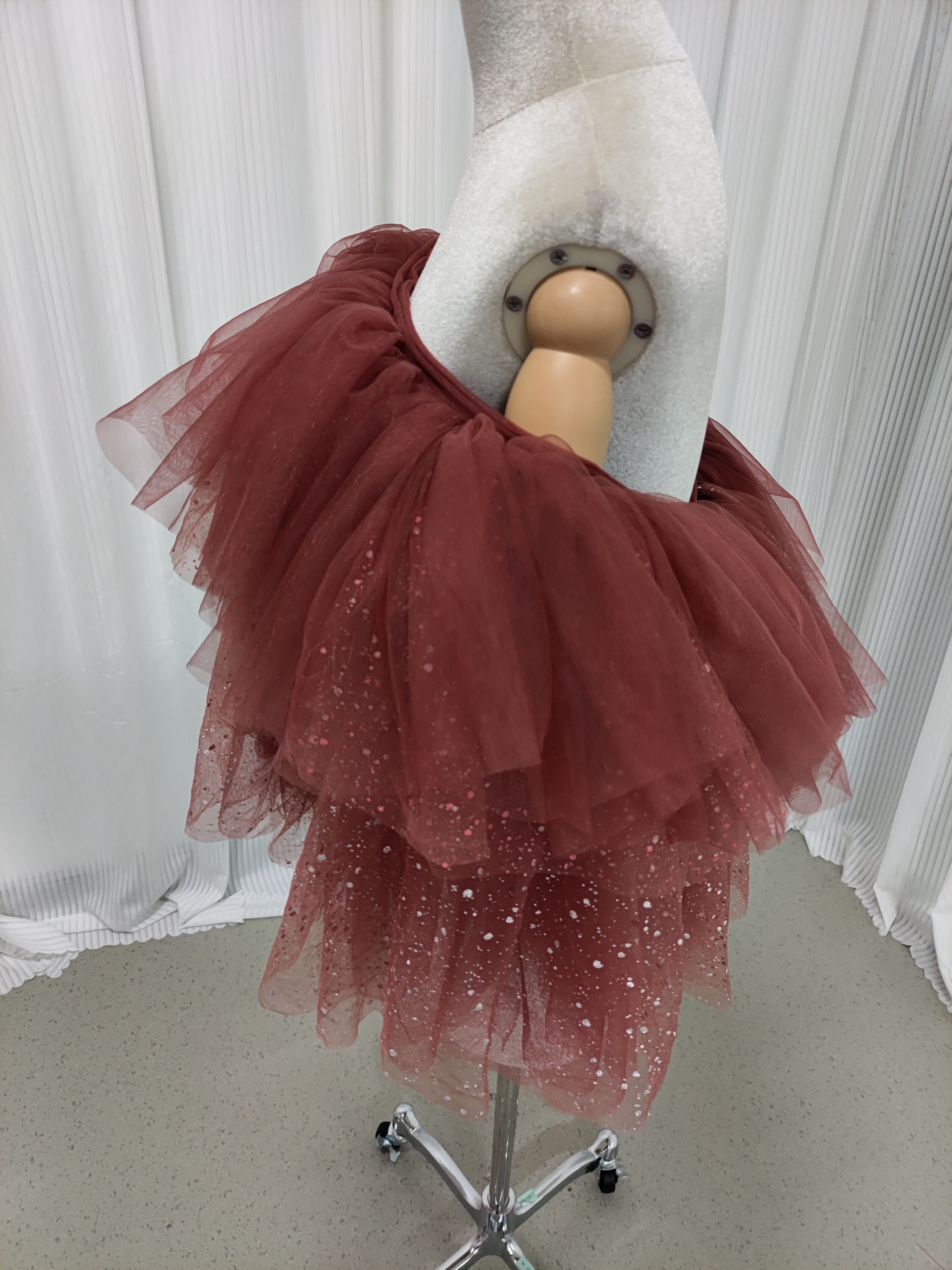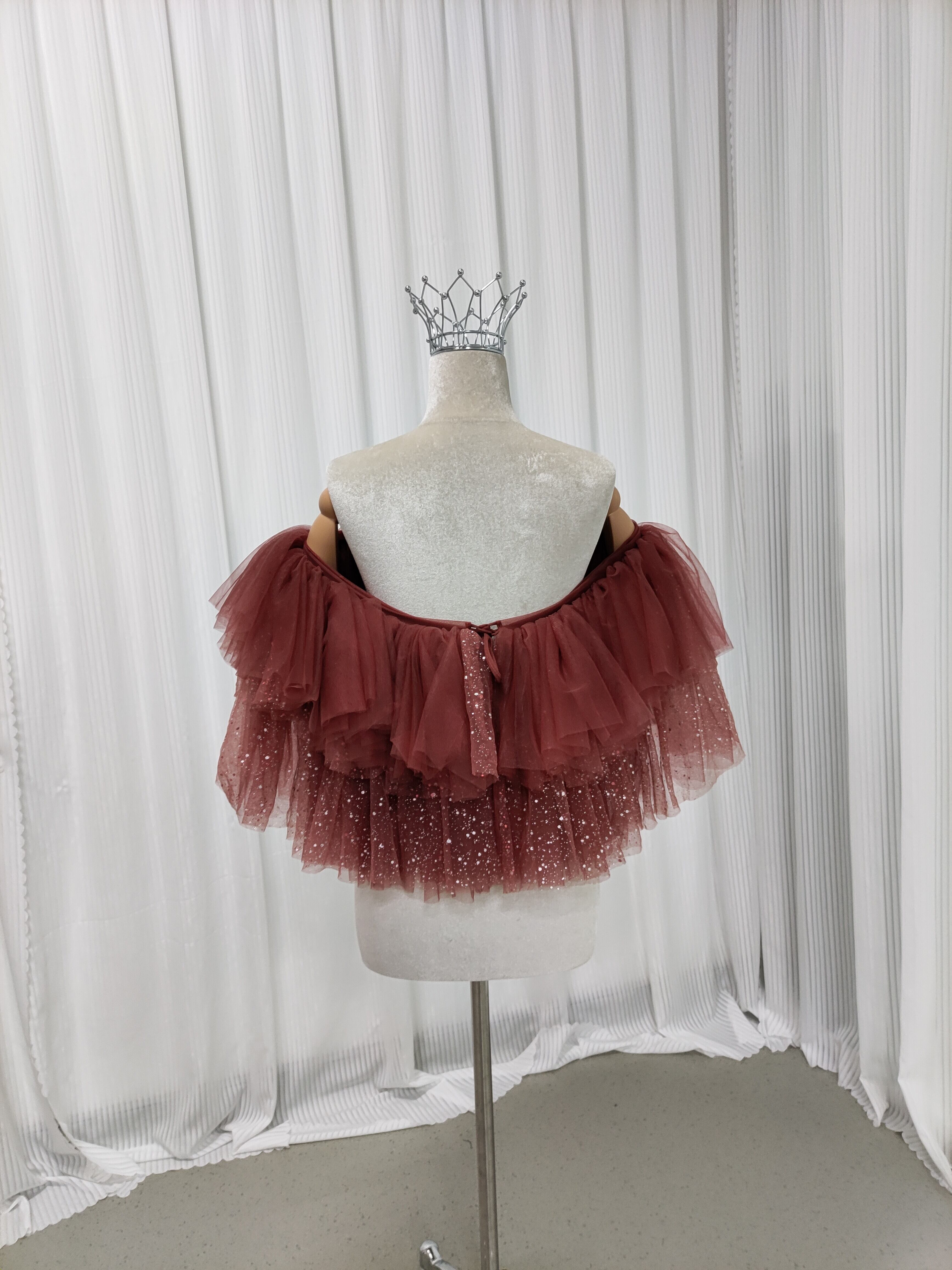 送料無料!ウエディングドレス オフショルダー ブラウンレッド サイズ調整可能 ドレスアレンジ お色直し ロールカラー