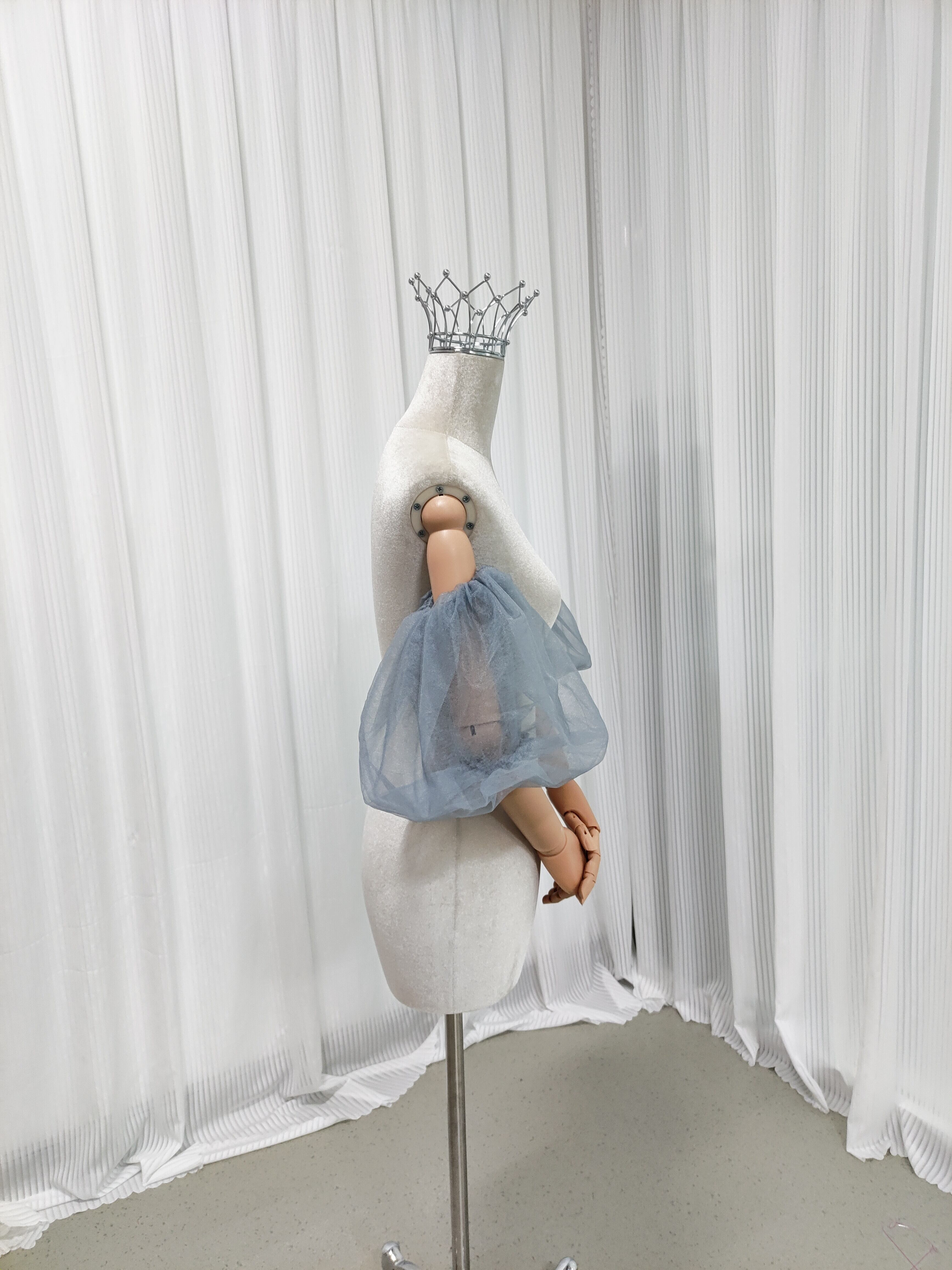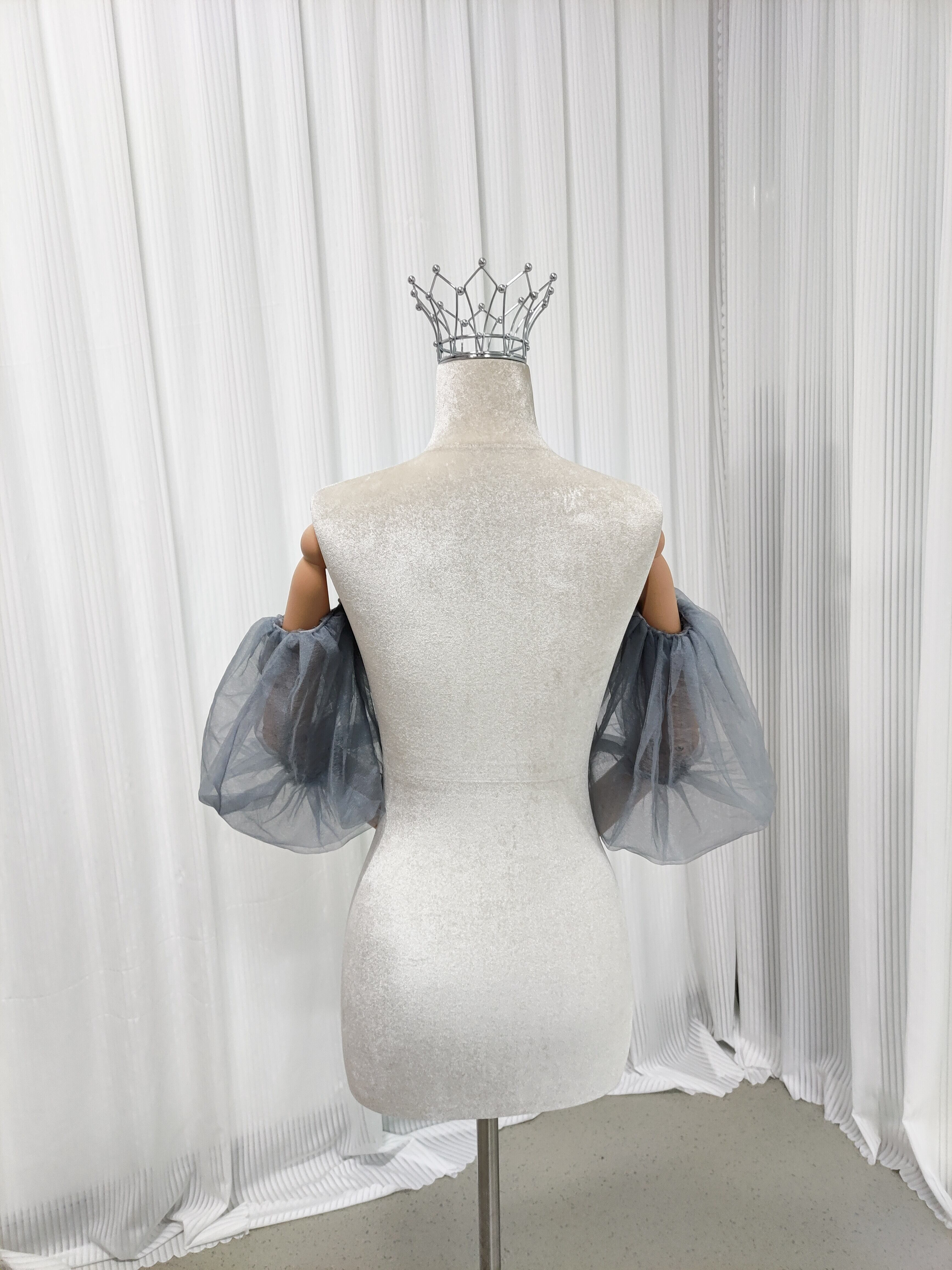 ブルーグレー 取り外し袖 ショルダーの付け袖 パフスリーブ オーダー可能 二の腕を隠せるお袖