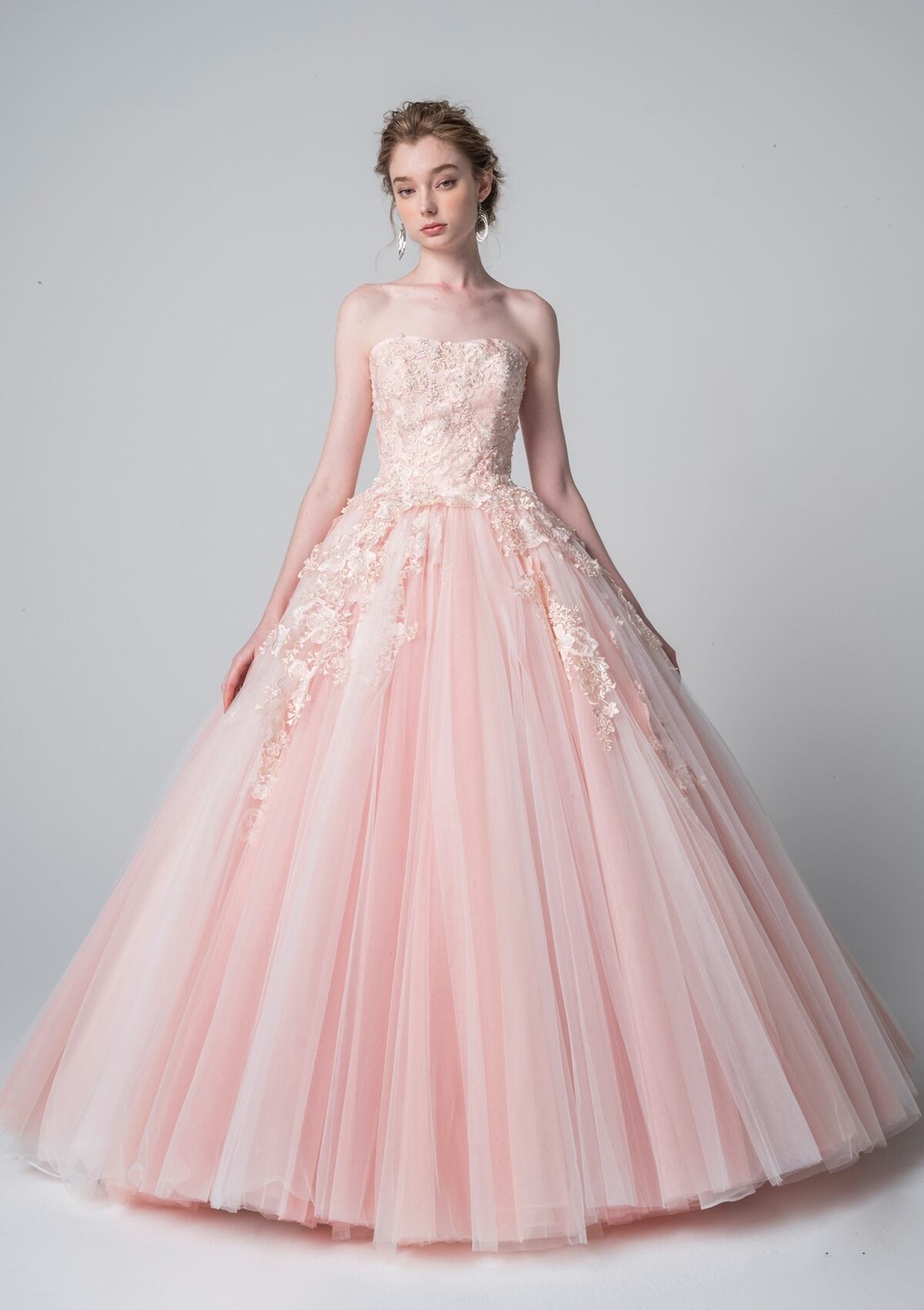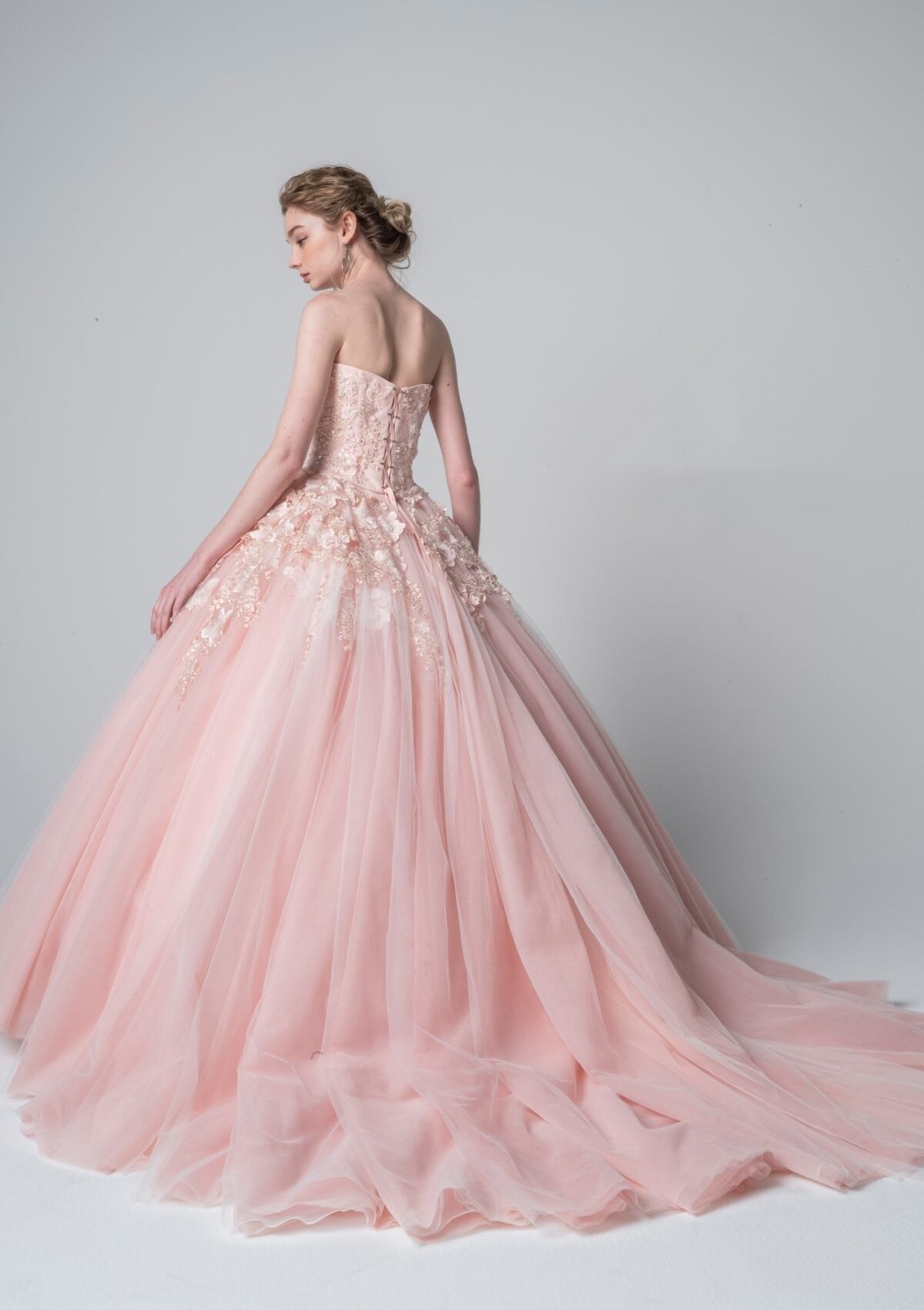 高品質!送料無料!カラードレス 薄ピンク ソフトチュール 上品レース かわいい エレガント ハンドメイド トレーン オーダードレス 花嫁 結婚式/前撮り | David1021k Dress(ダヴィドレス)
