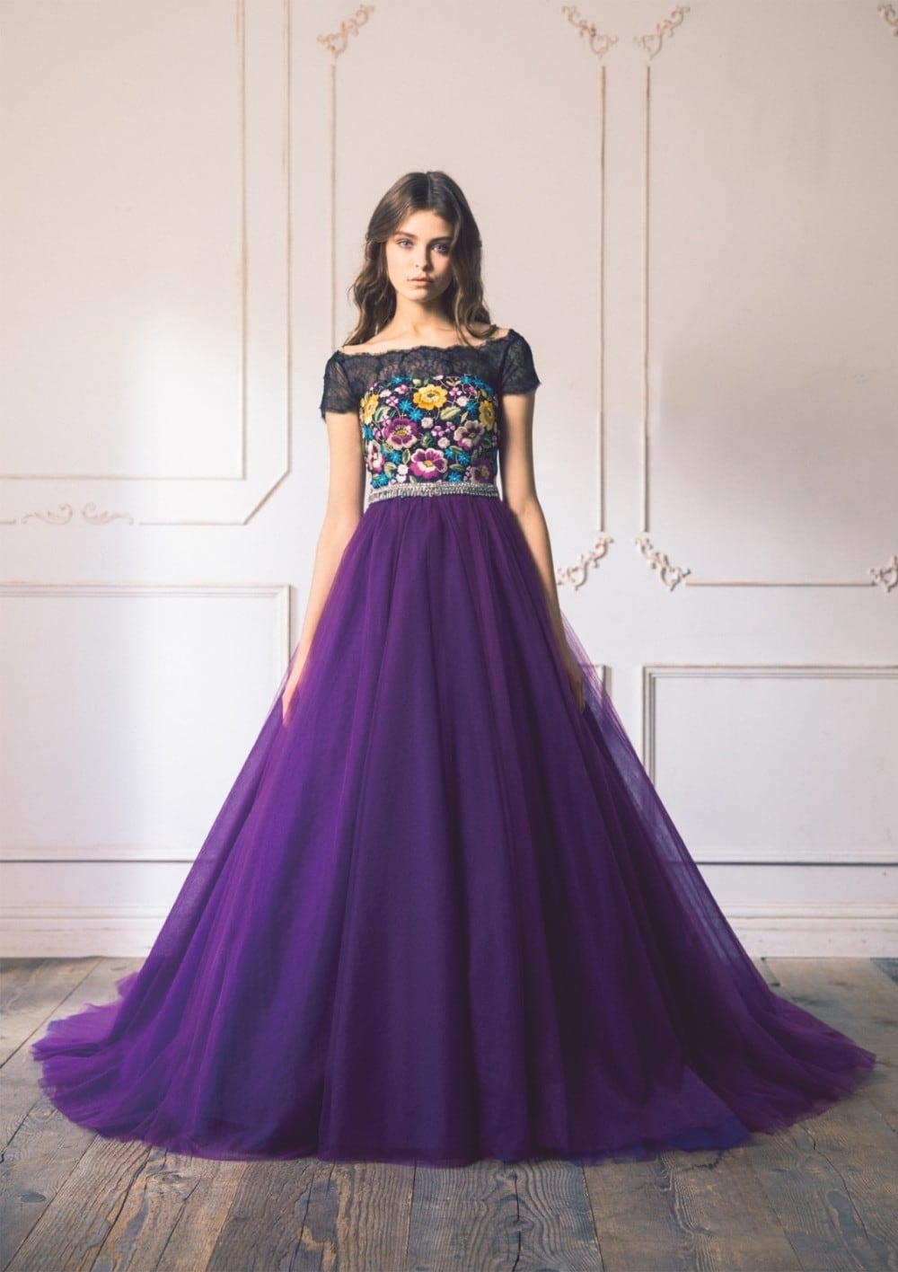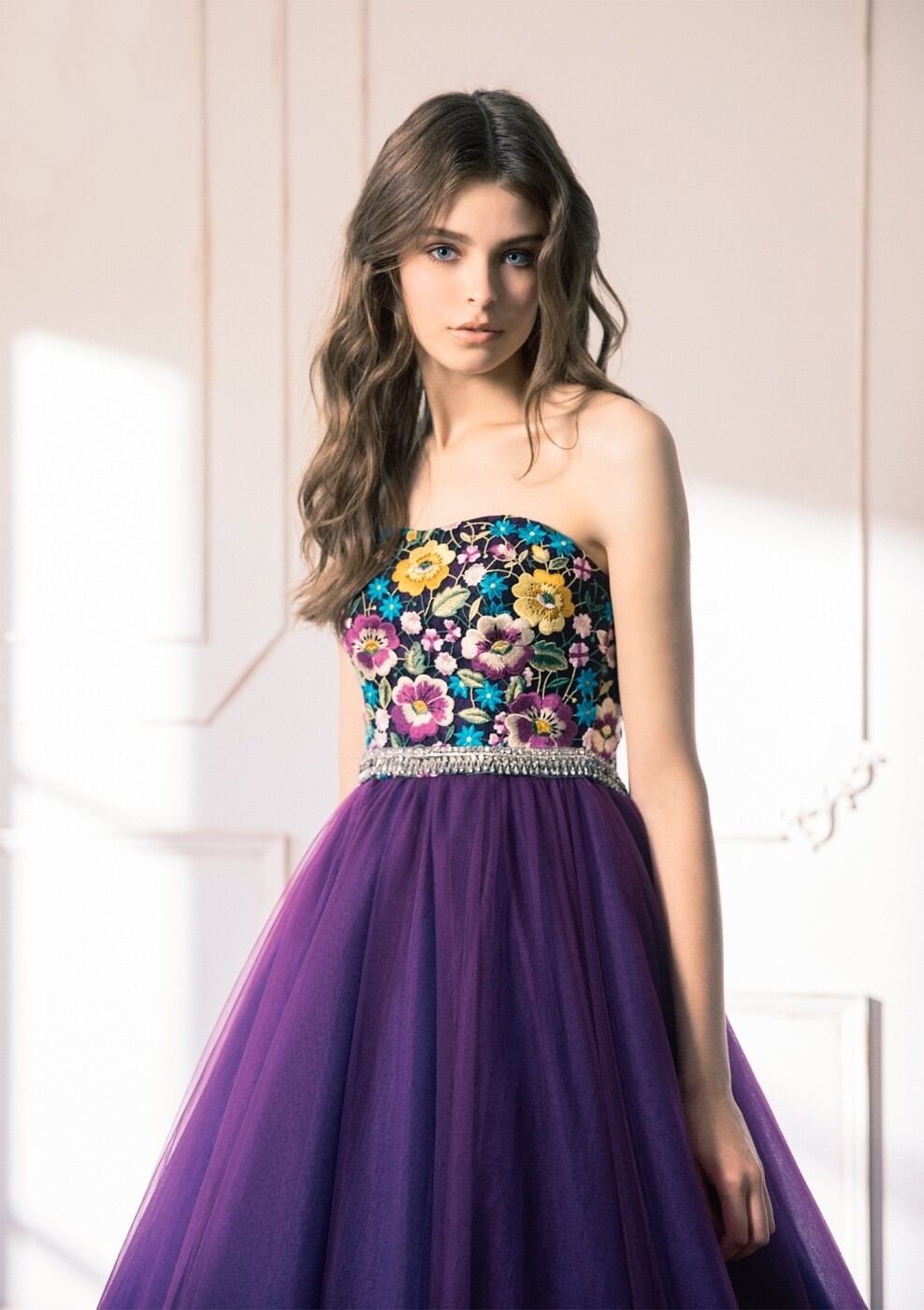 高品質!送料無料!パーティードレス パープル/紫 上品レース刺繡 かわいい エレガント ハンドメイド 華やかなトレーン オーダードレス 花嫁 結婚式/前撮り | David1021k Dress(ダヴィドレス)