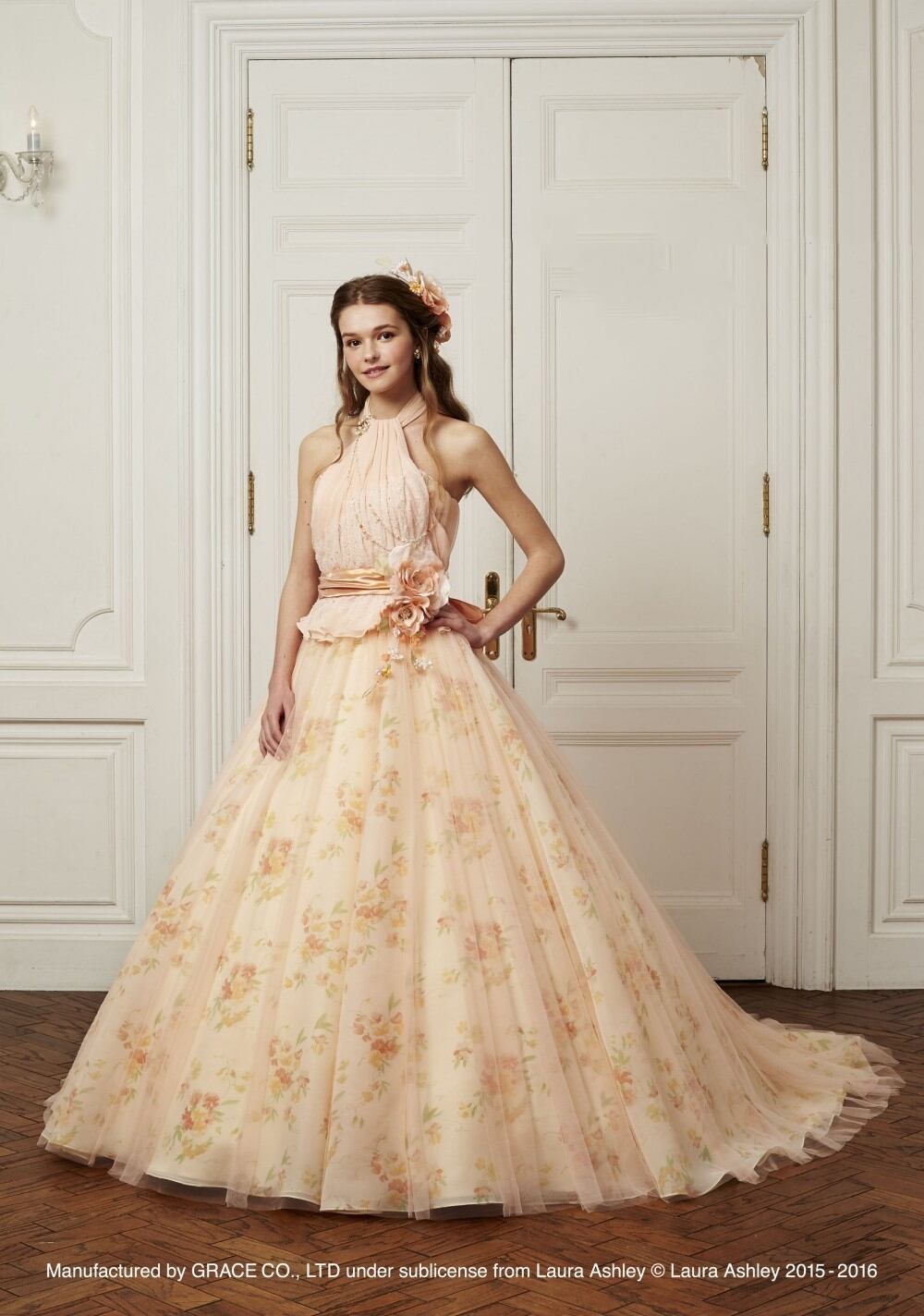 高品質!送料無料!カラードレス パーティードレス シャンパン色 ホルターネック 花模様 かわいい エレガント ハンドメイド 華やかなトレーン オーダードレス ステージ ピアノ演奏ドレス 花嫁 結婚式/前撮り | David1021k Dress(ダヴィドレス)