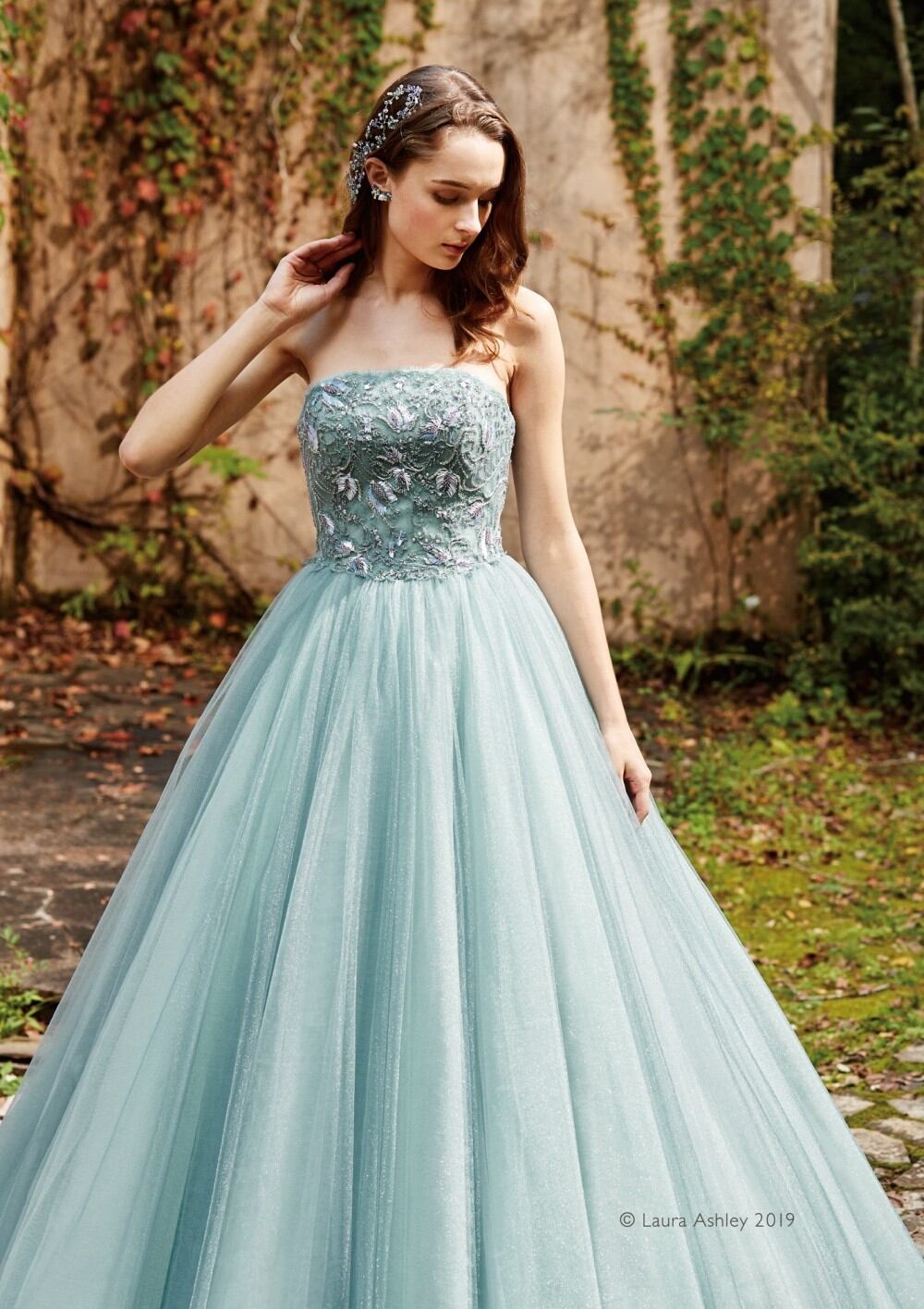 高品質!送料無料!カラードレス グリーンブルー ソフトチュール ベアトップ かわいい エレガント ハンドメイド Aライン パーティードレス トレーン オーダードレス 花嫁 結婚式/前撮り | David1021k Dress(ダヴィドレス)