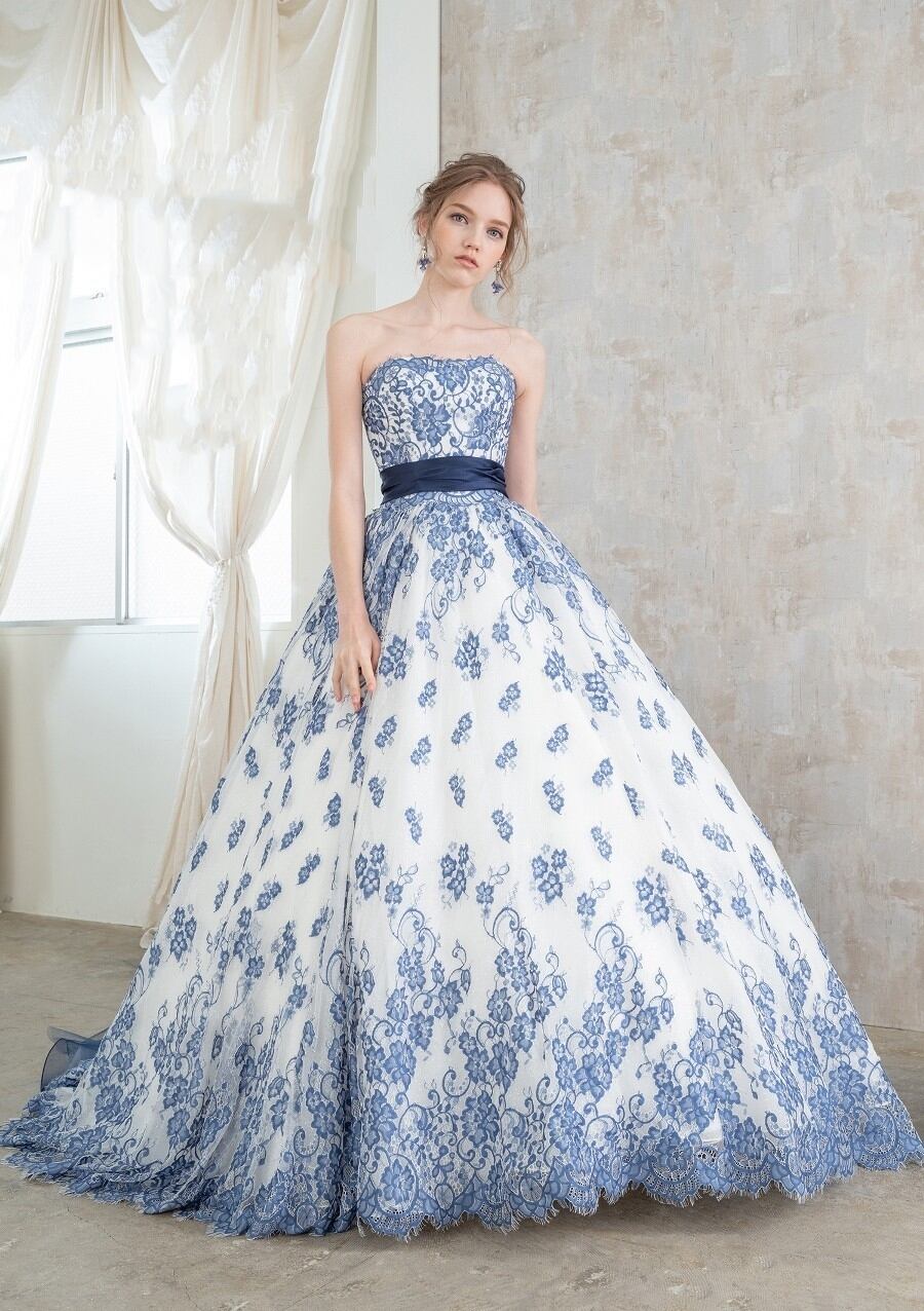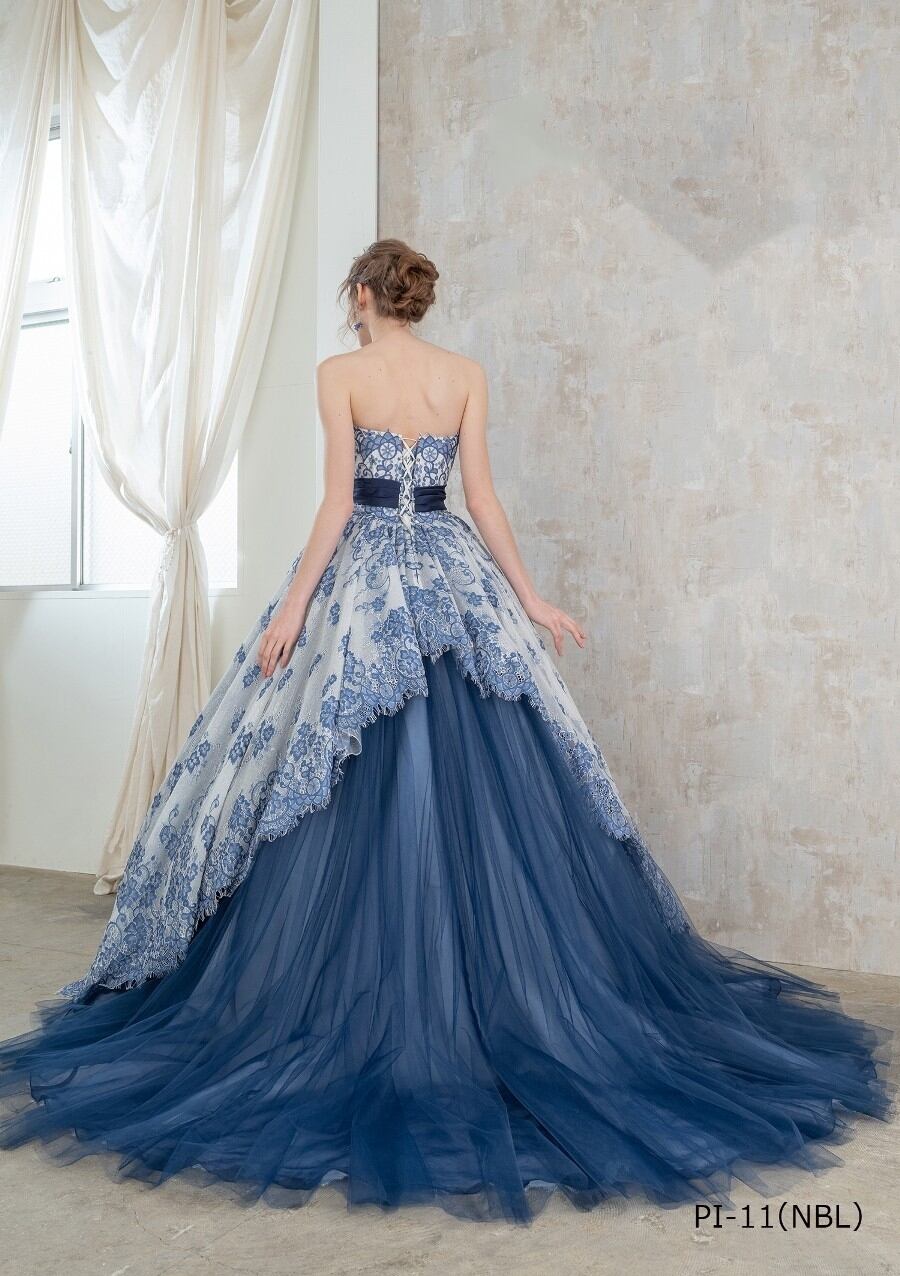 高品質!送料無料!カラードレス ブルー ソフトチュール 上品レース かわいい エレガント ハンドメイド プリンセスドレス トレーン オーダードレス 花嫁 結婚式/前撮り | David1021k Dress(ダヴィドレス)