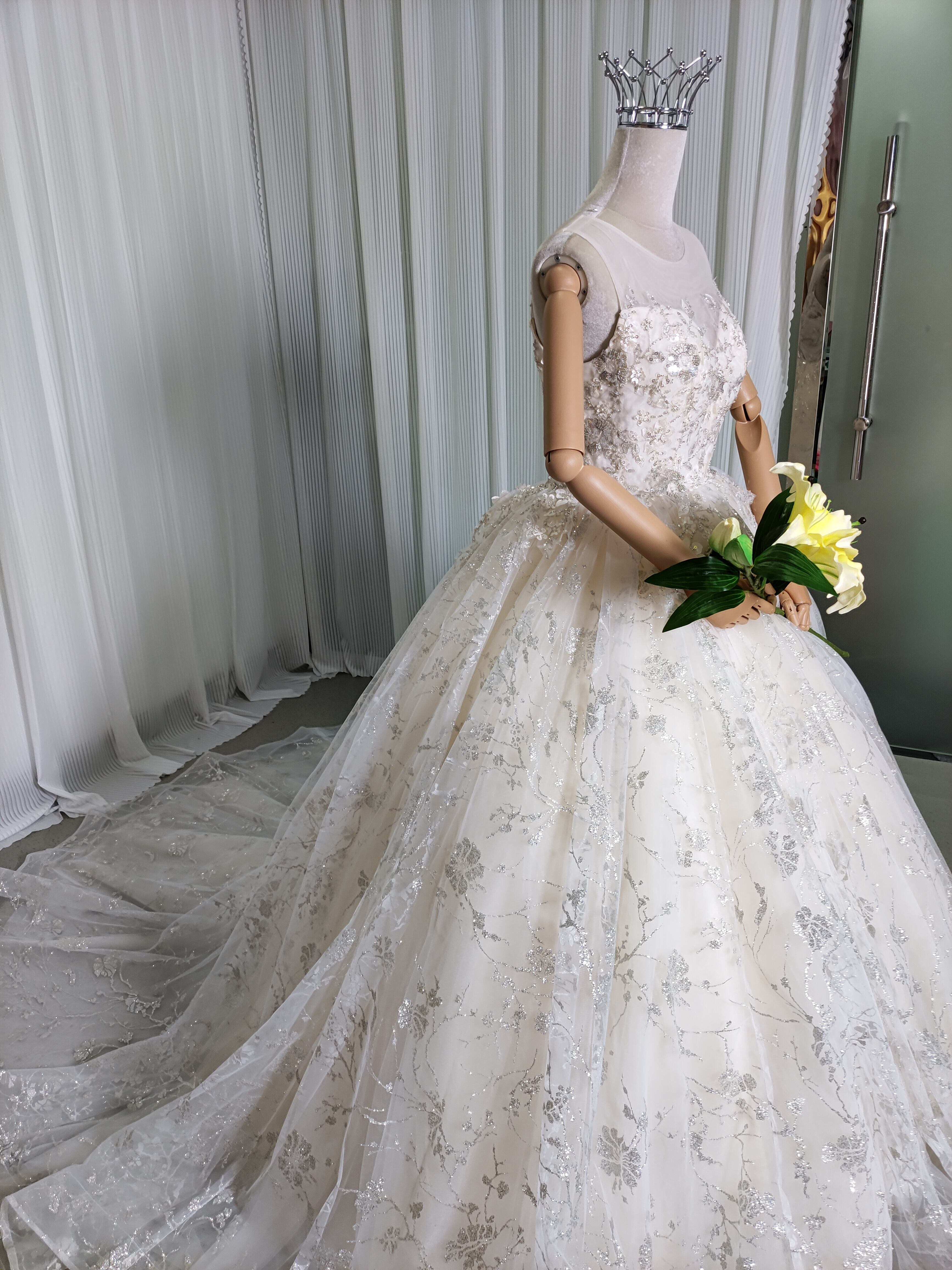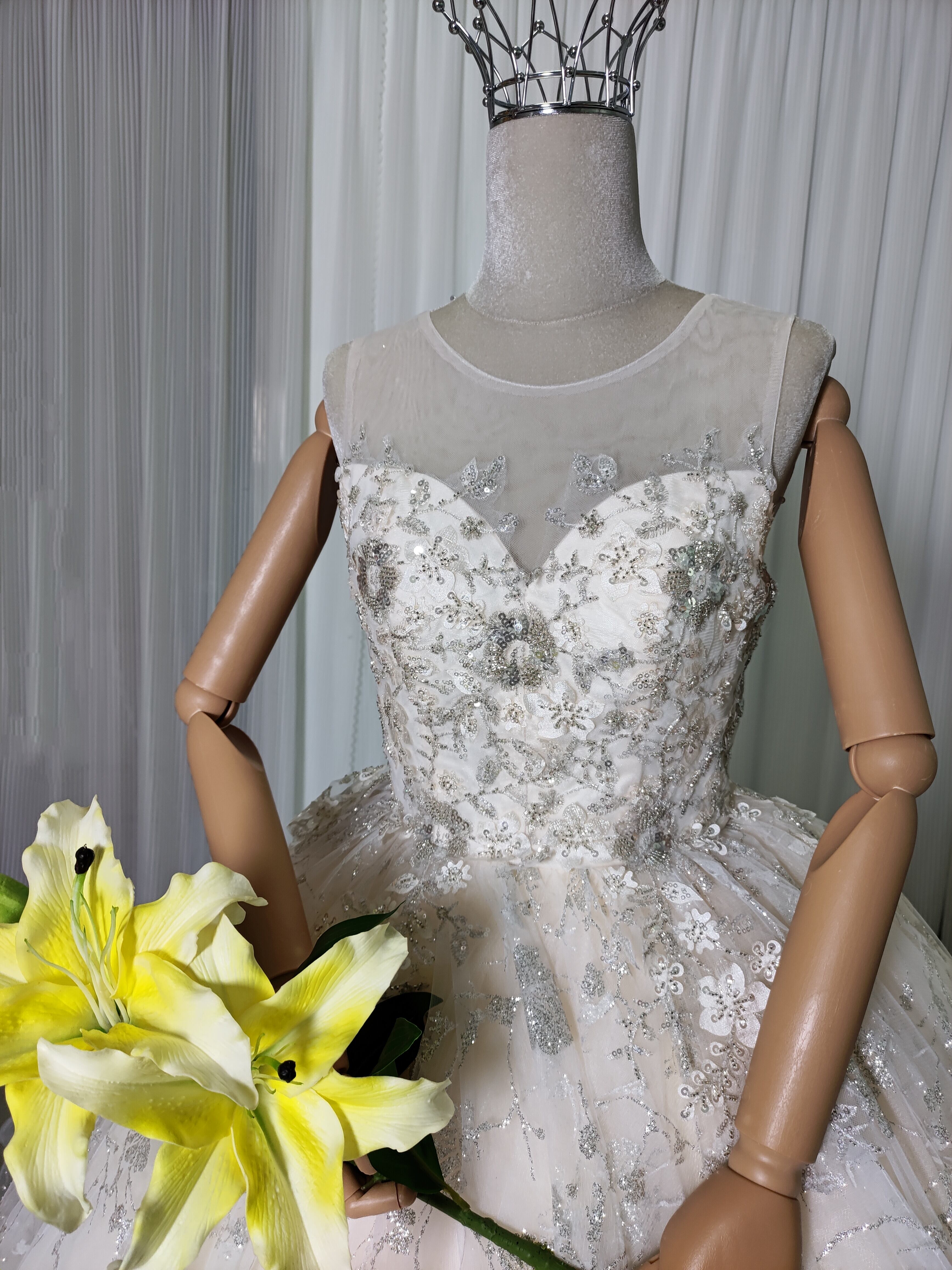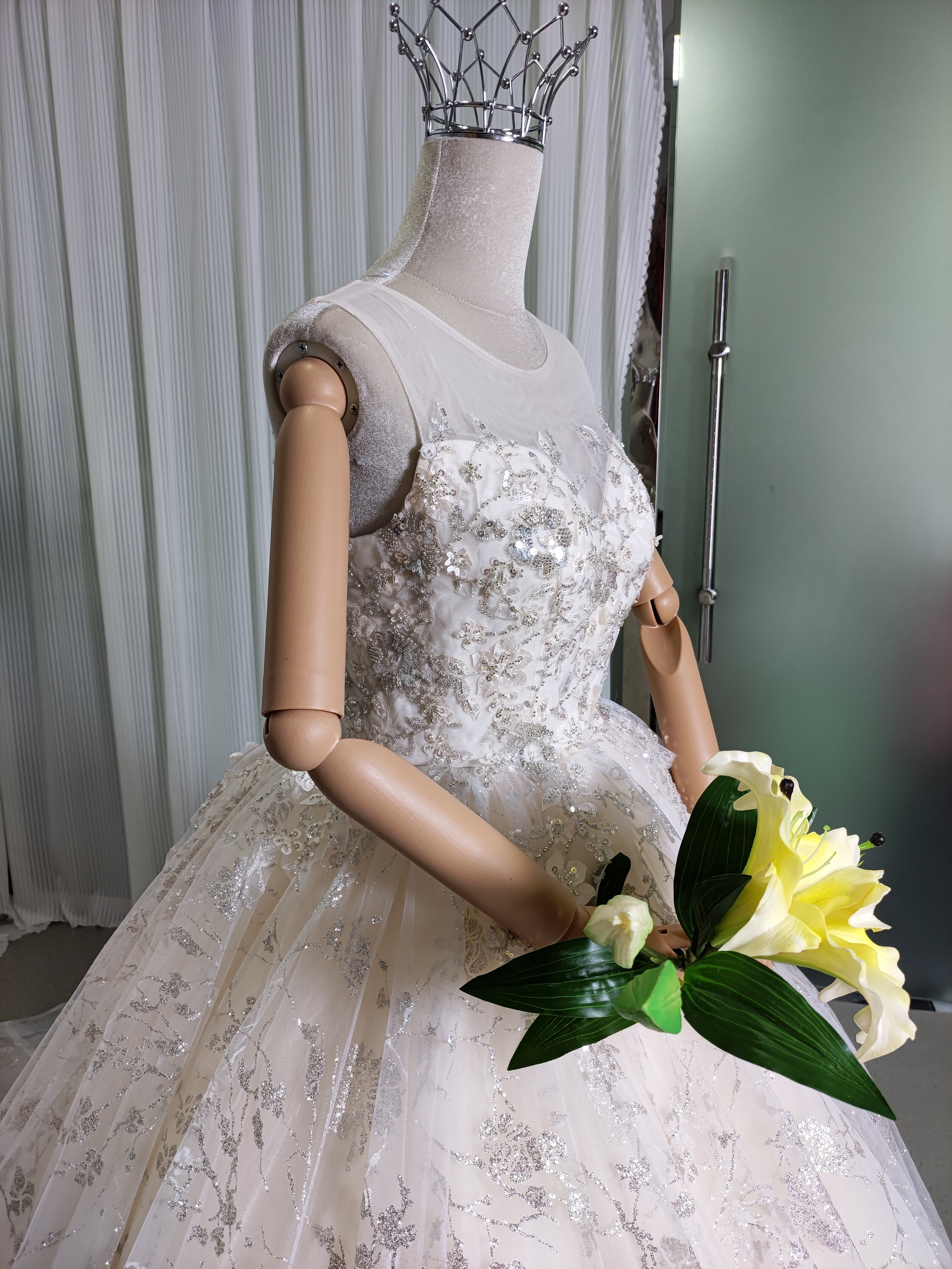 輝きな光彩を放つ ノースリーブ パステルイエロー カラードレスキラキラチュール 華やかなトレーン プリンセス