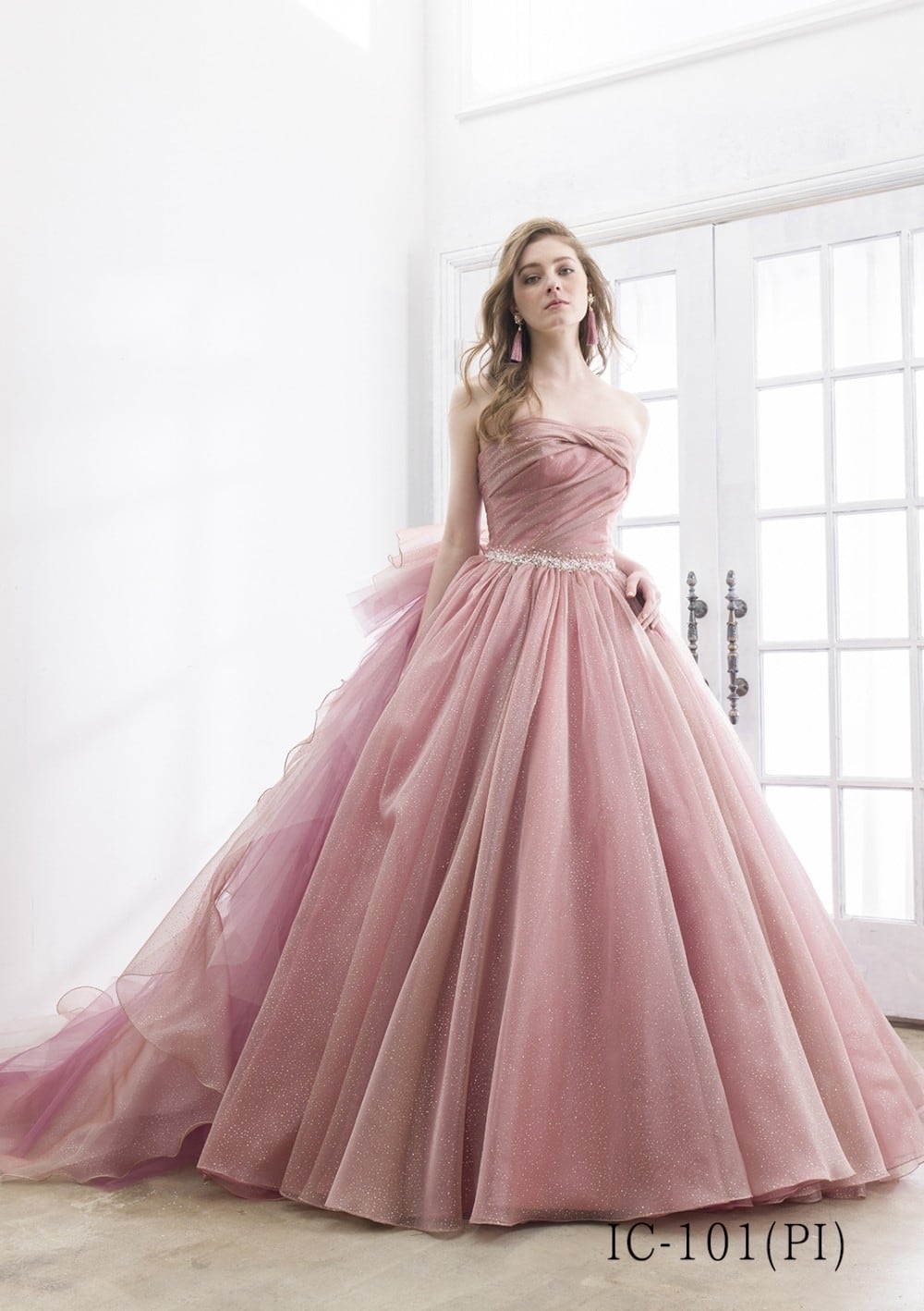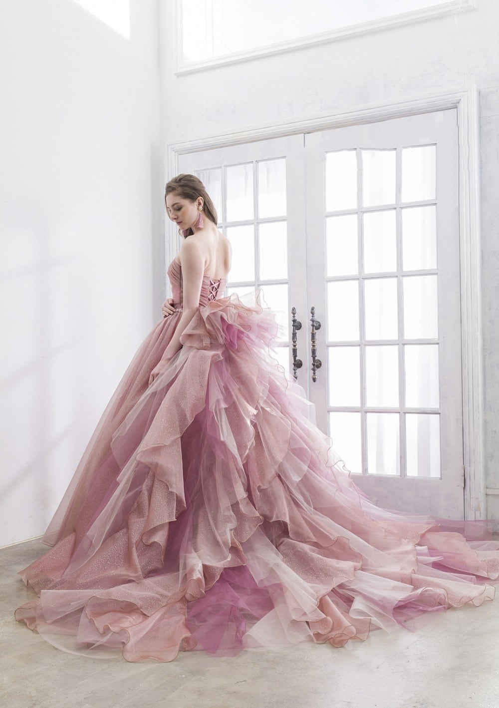 高品質!送料無料!カラードレス くすみピンク グラデーション キラキラグリッターチュール 取り外しトレーン かわいい エレガント ハンドメイド 華やかなトレーン オーダードレス パーティードレス 花嫁 結婚式/前撮り