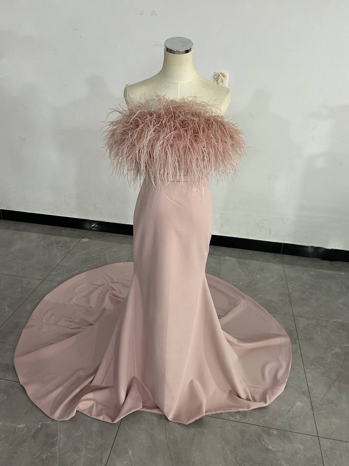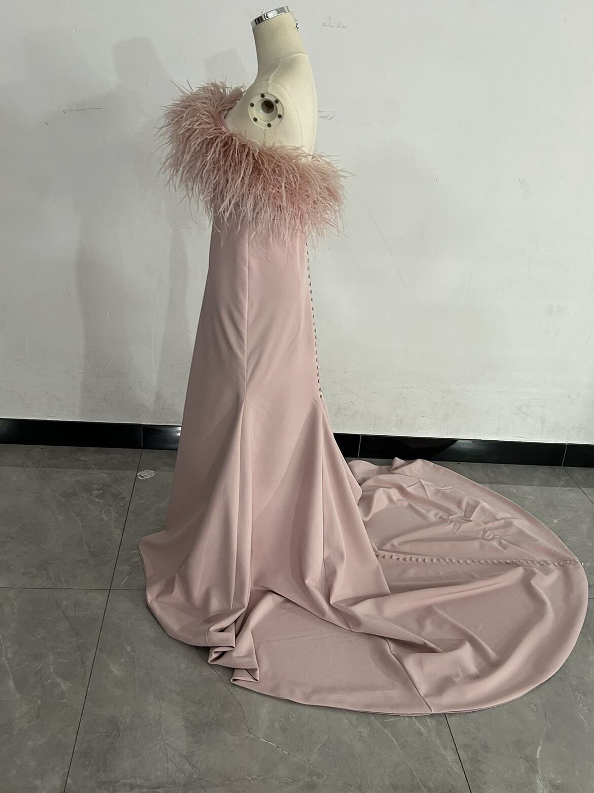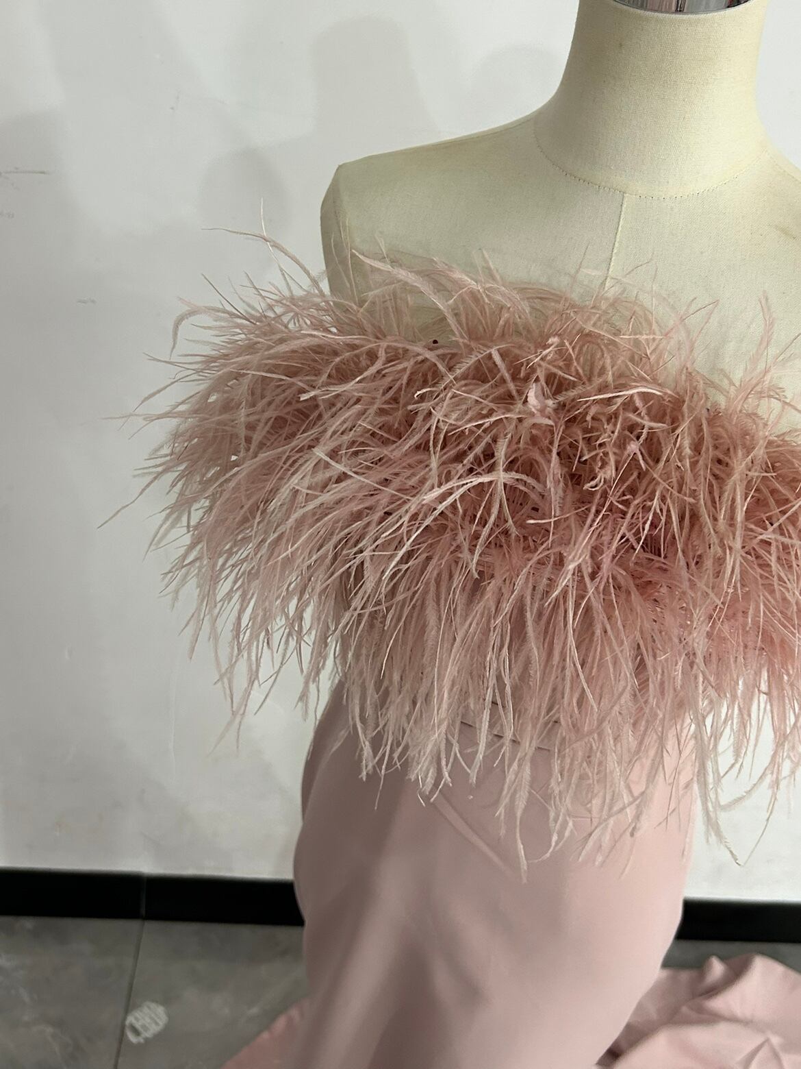 送料無料!ピンク ダチョウの毛 カラードレスフェザードレス オフショルダーの2WAYドレスロングトレーン パーティードレス