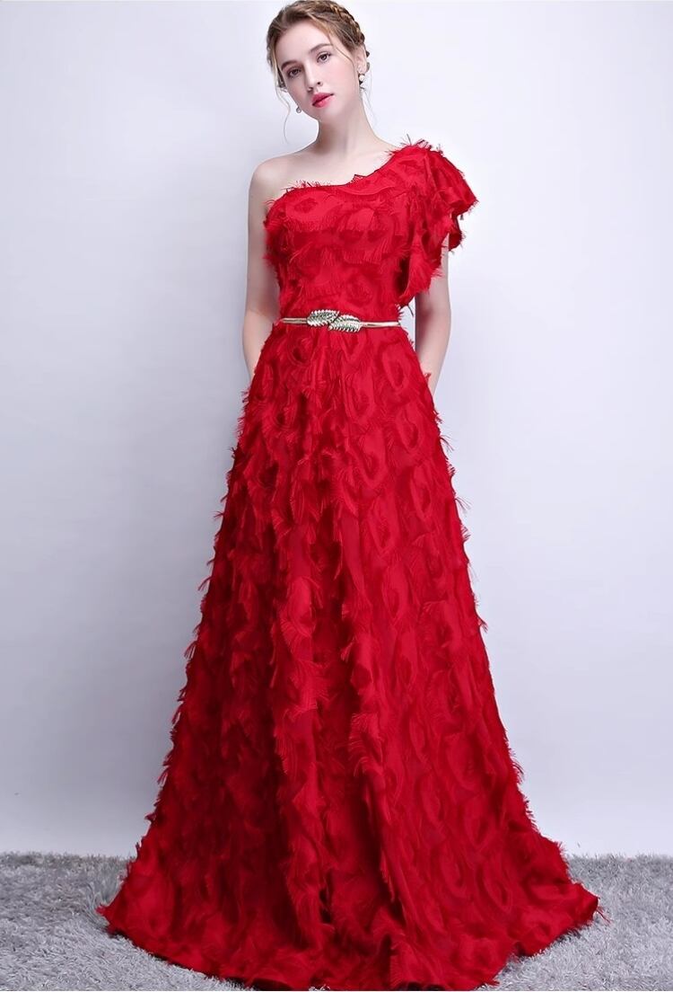 高品質!送料無料!パーティードレス カラードレス レッド/赤 Aライン トレーン かわいい エレガント ステージ 花嫁 結婚式/前撮り